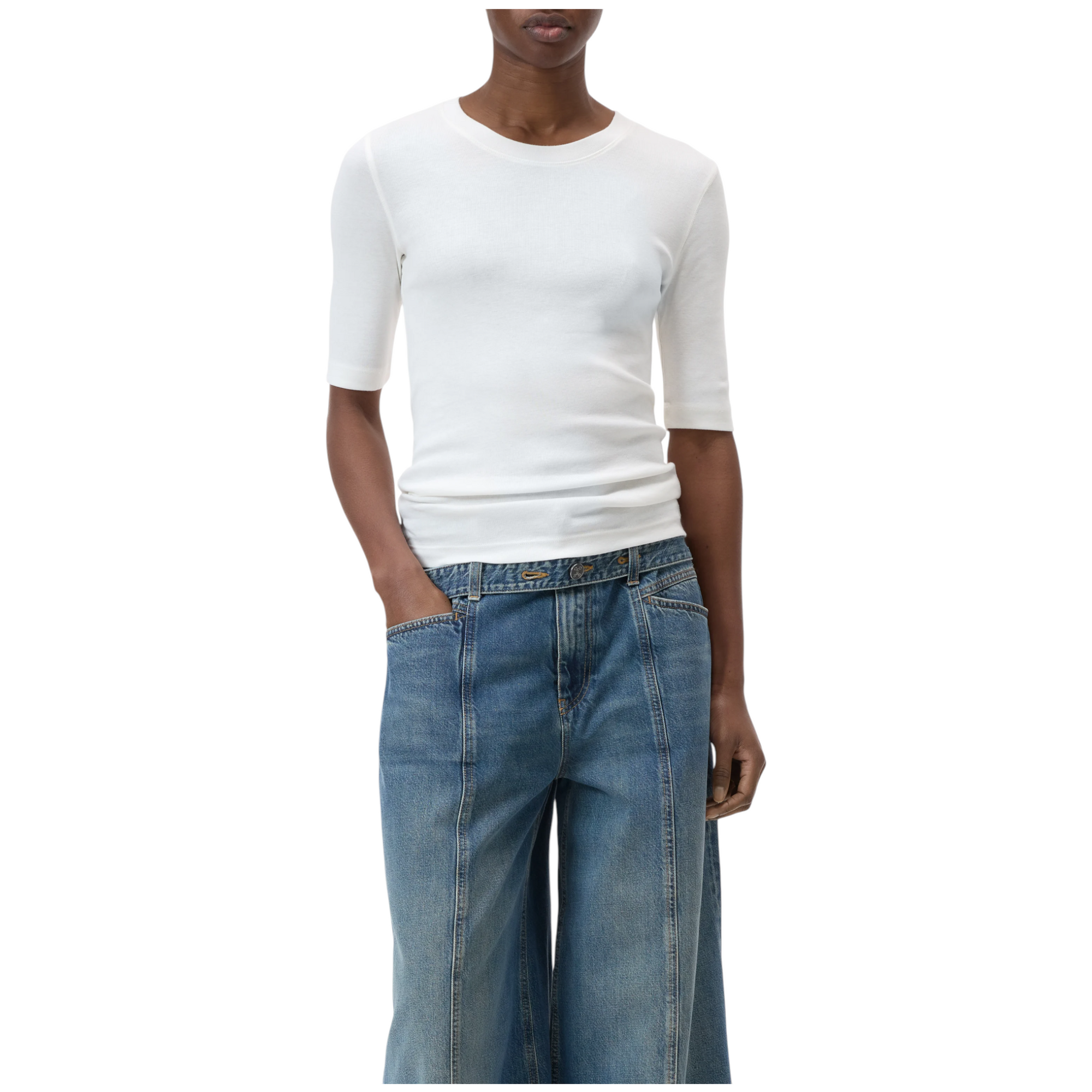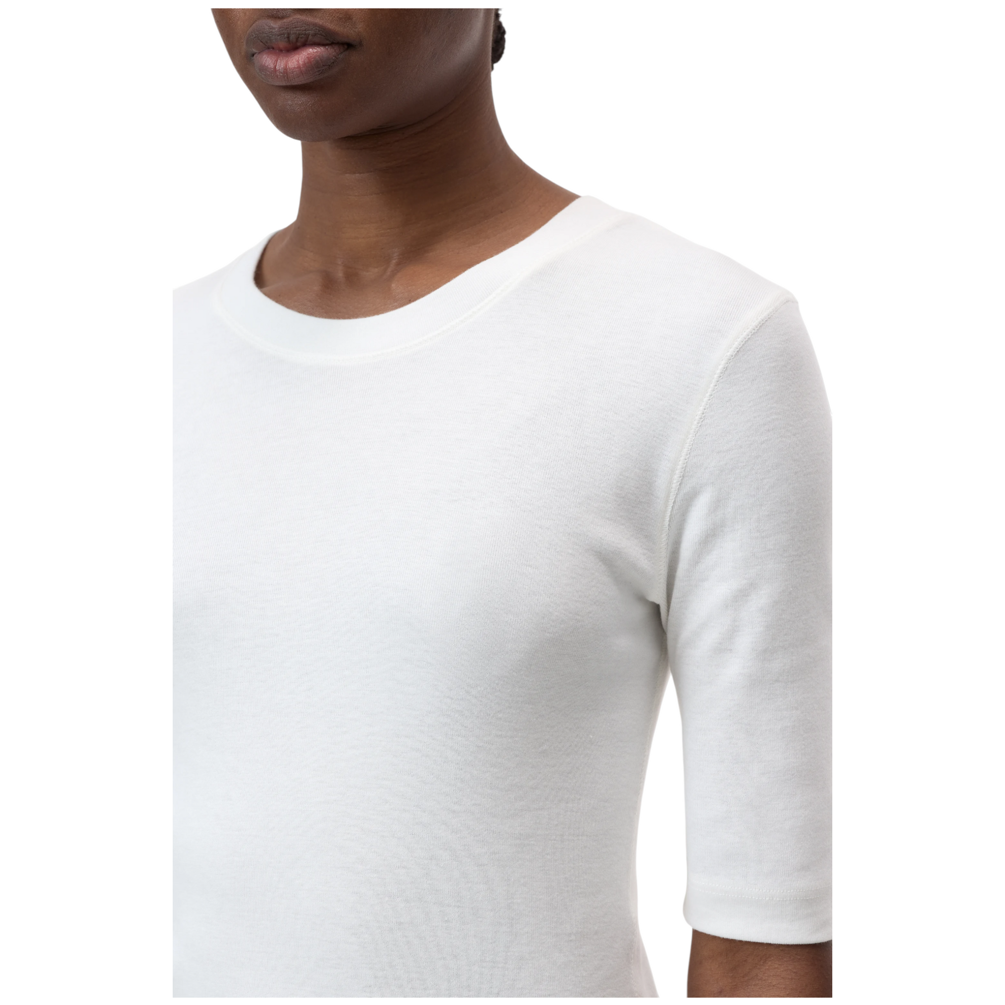 T-shirt i superblød bomulds-modalblanding med høj komfort. Fremstillet i meget fint ribstrikket jersey med rund hals, lige kant forneden og forlængede, smalle ærmer.