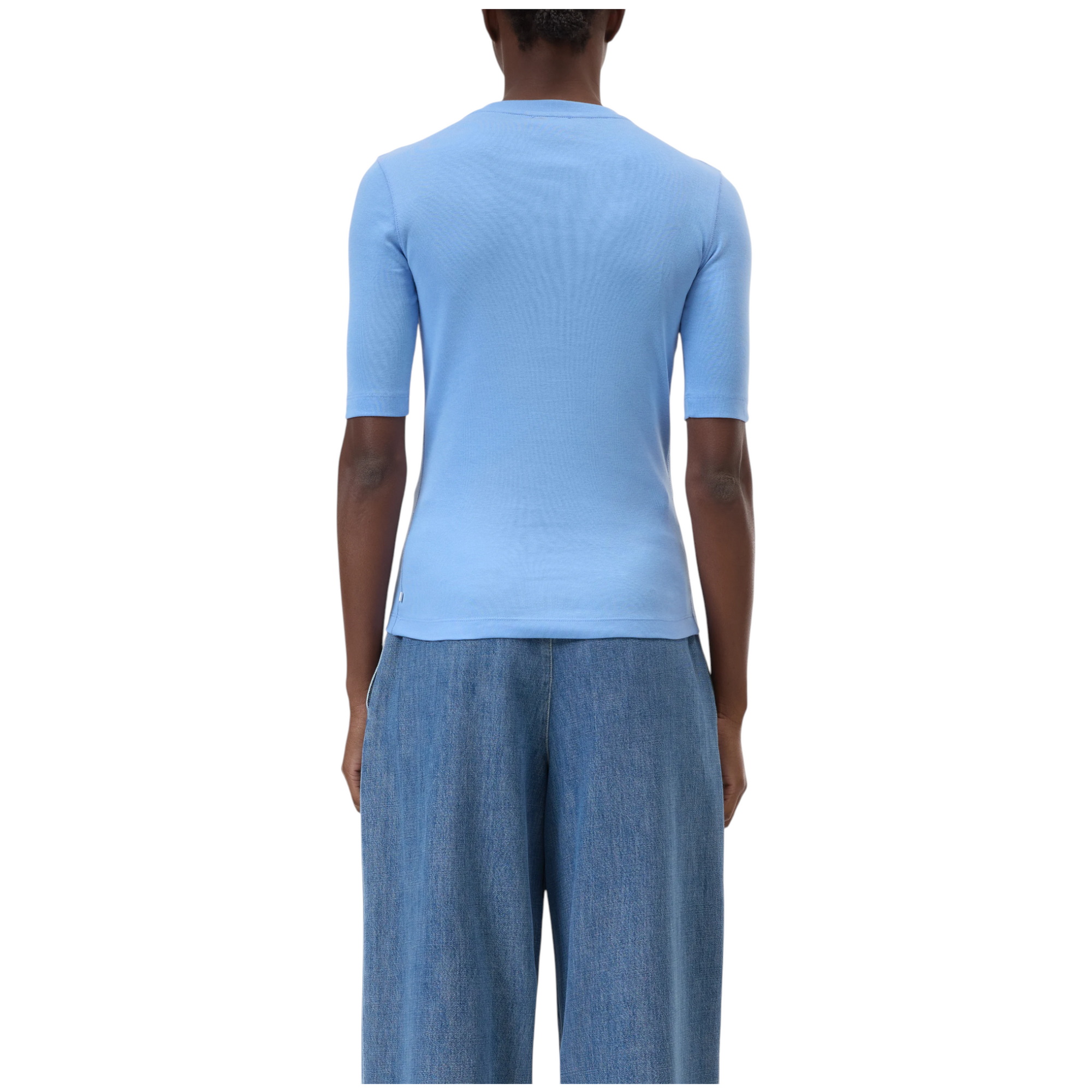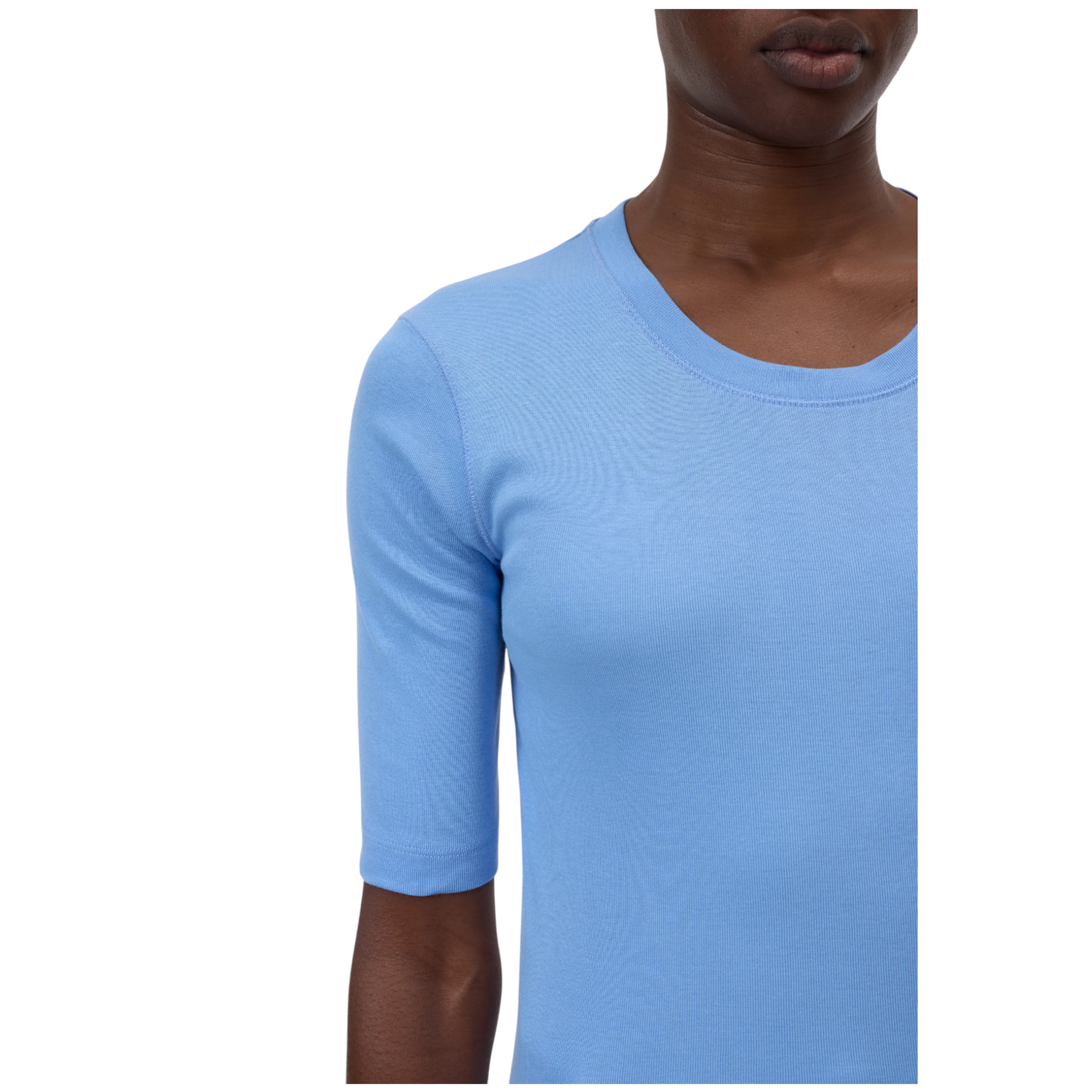 T-shirt i superblød bomulds-modalblanding med høj komfort. Fremstillet i meget fint ribstrikket jersey med rund hals, lige kant forneden og forlængede, smalle ærmer.