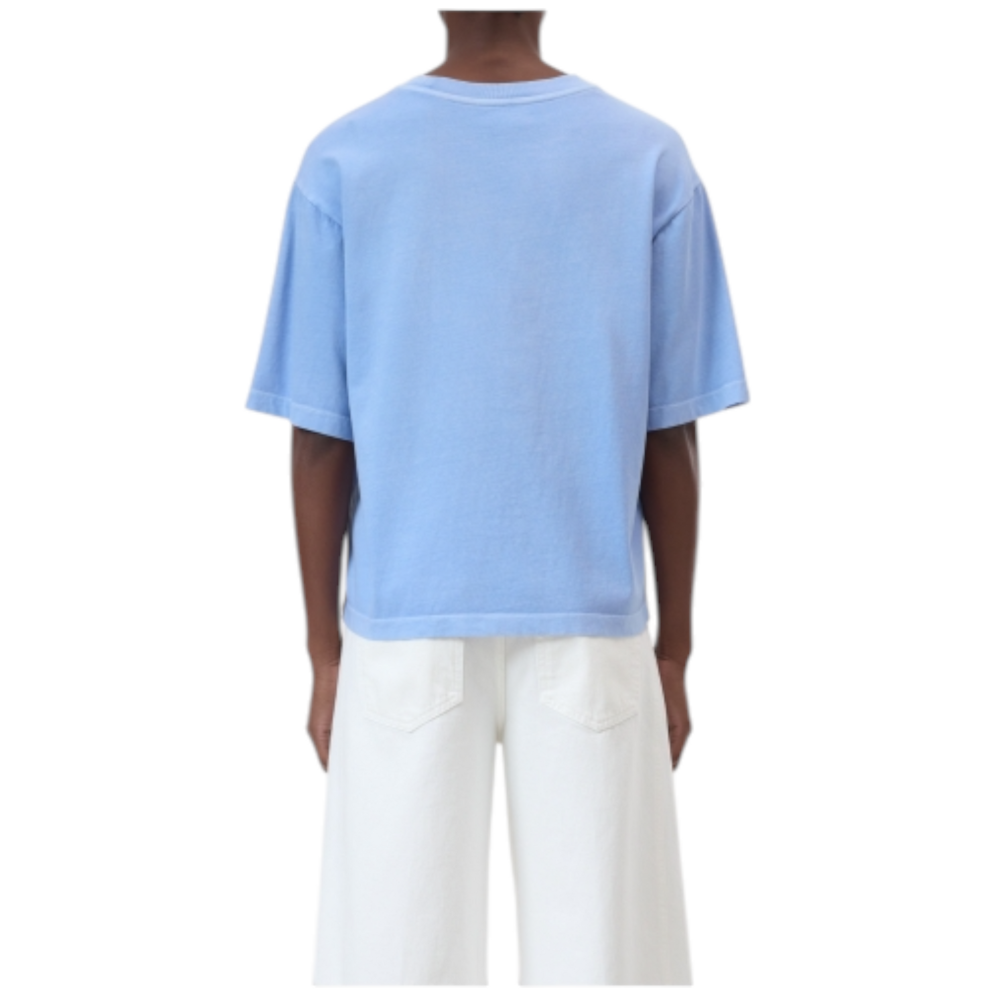 Denne T-shirt er fremstillet i 100% økologisk bomuld i en kraftig, blød jersey-kvalitet. Modellen har et afslappet, lige og let cropped fit med rund hals, ribkant og lige afslutning. Det let vaskede look skyldes en særlig farveproces, og det broderede logo på brystet fuldender det moderne udtryk.