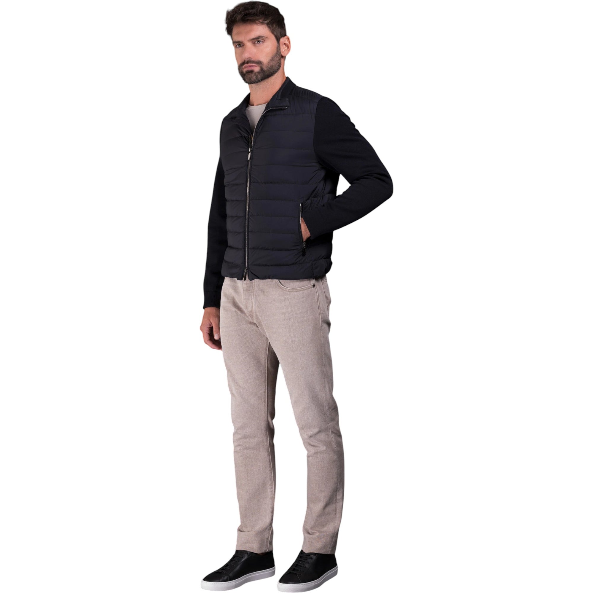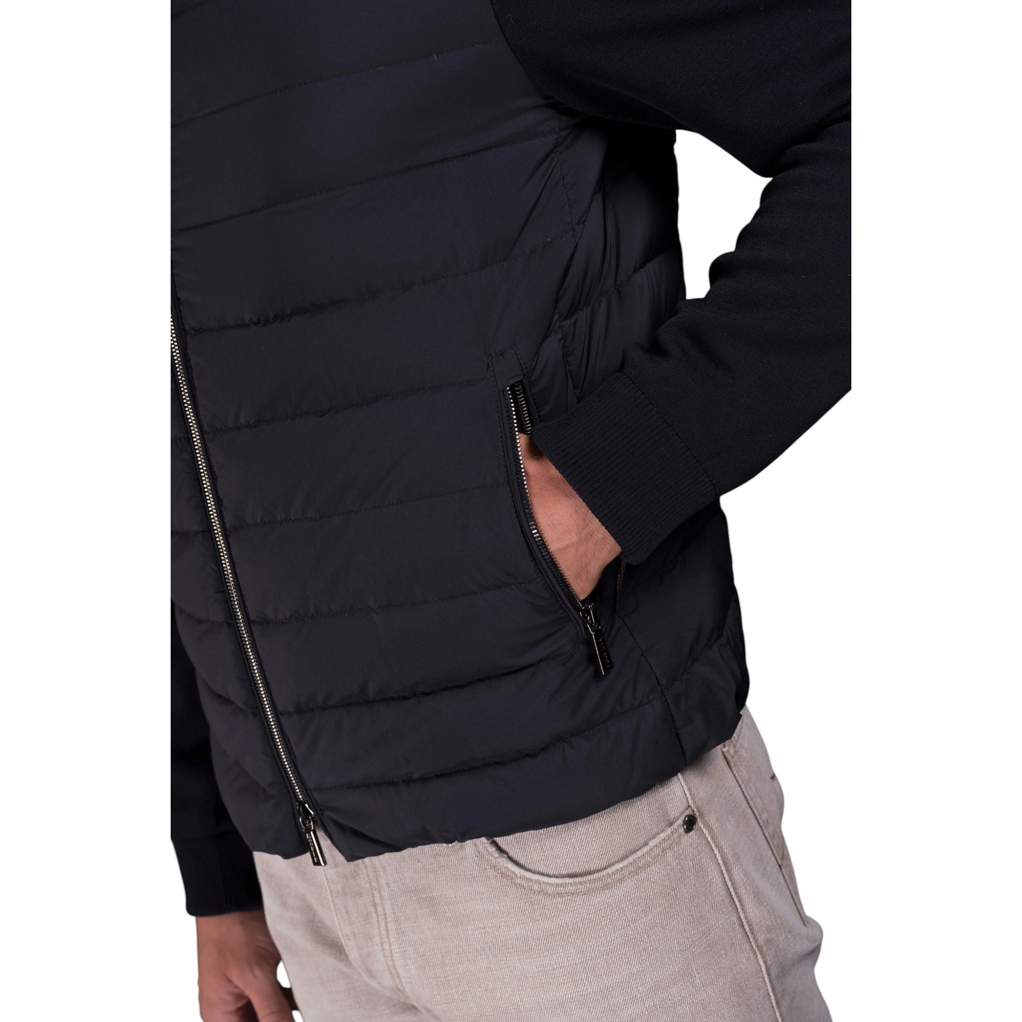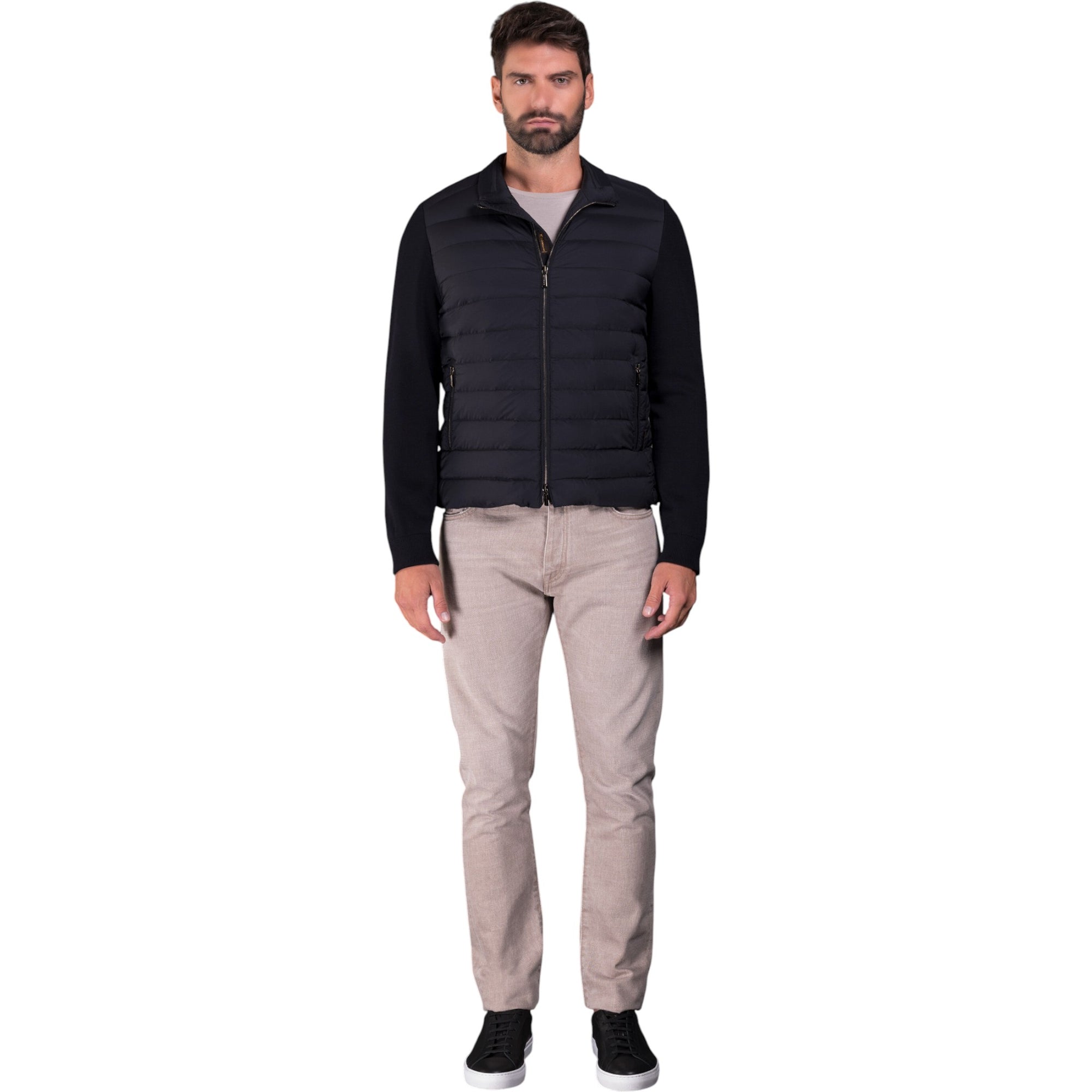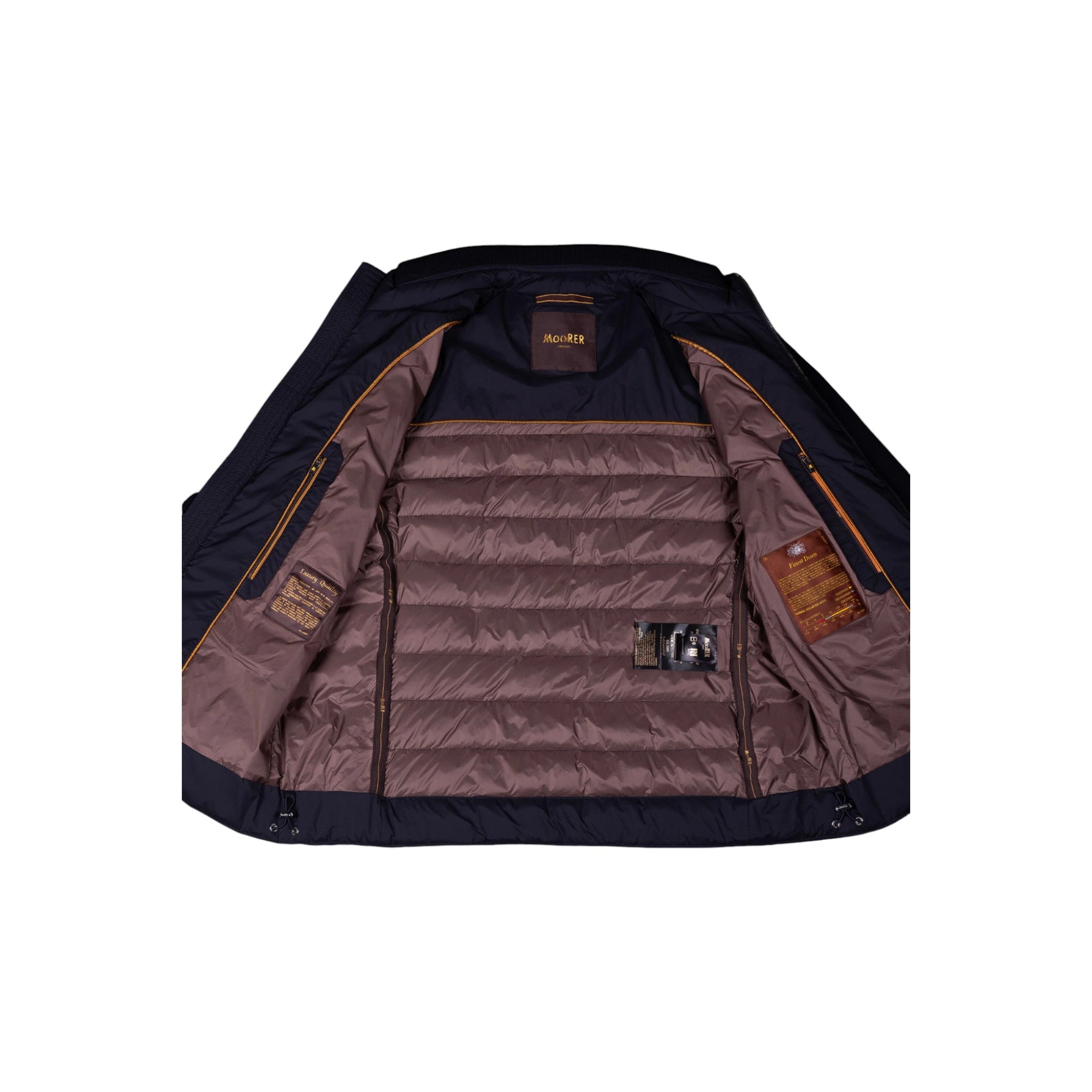 Giv din garderobe et løft med MooRER CATTANEO-S3R Bombers Navy – en moderne og stilren bomberjakke til mænd, skabt i en raffineret kombination af letvægtsmaterialer og sporty detaljer. Jakken er foret med eksklusiv gåsedun, hvilket sikrer både varme og komfort uden at gå på kompromis med stil.
