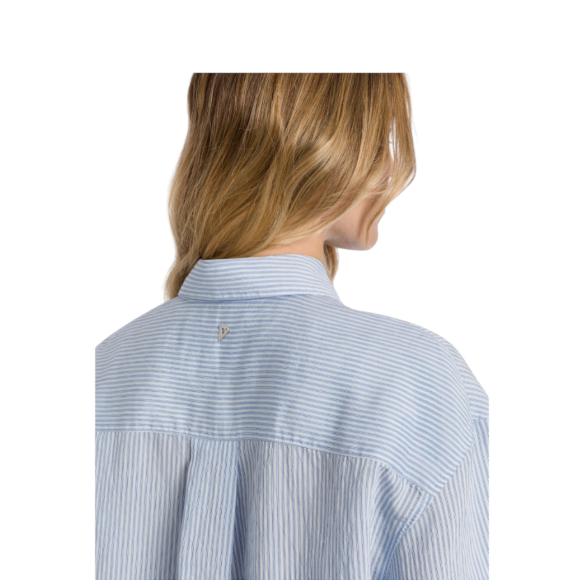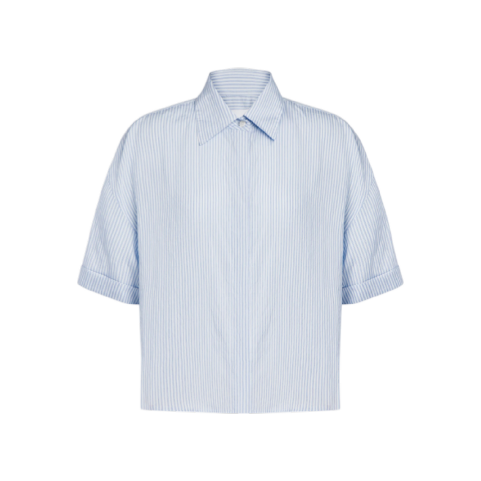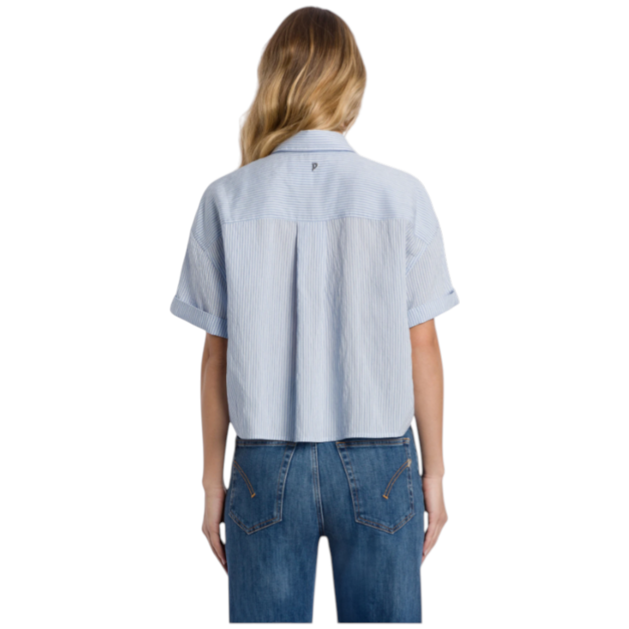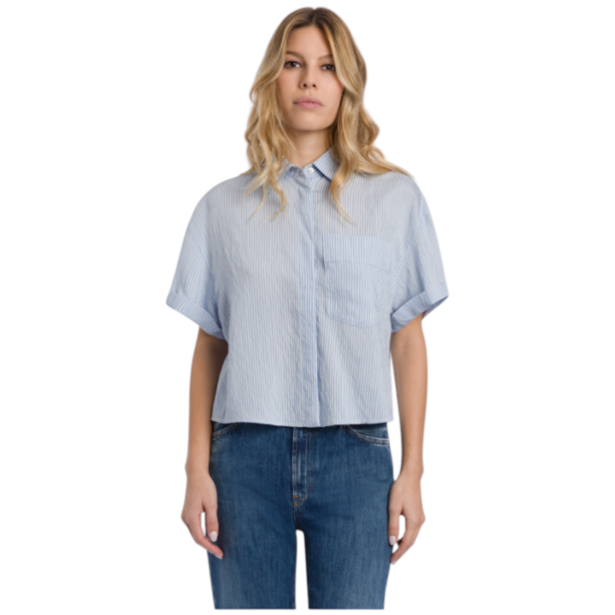 Kortærmet skjorte i boxy fit med brystlomme og let flydende striber. Designet med afslappet silhuet og Dondup-logo, som giver et moderne og stilrent udtryk. Fremstillet i Italien.
