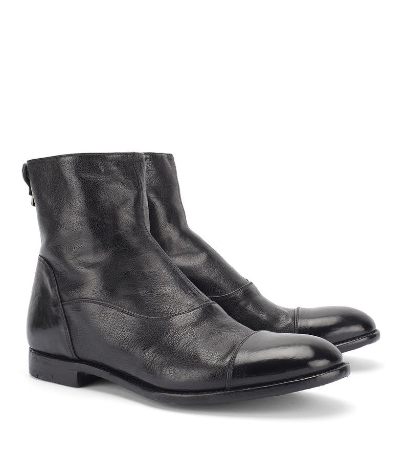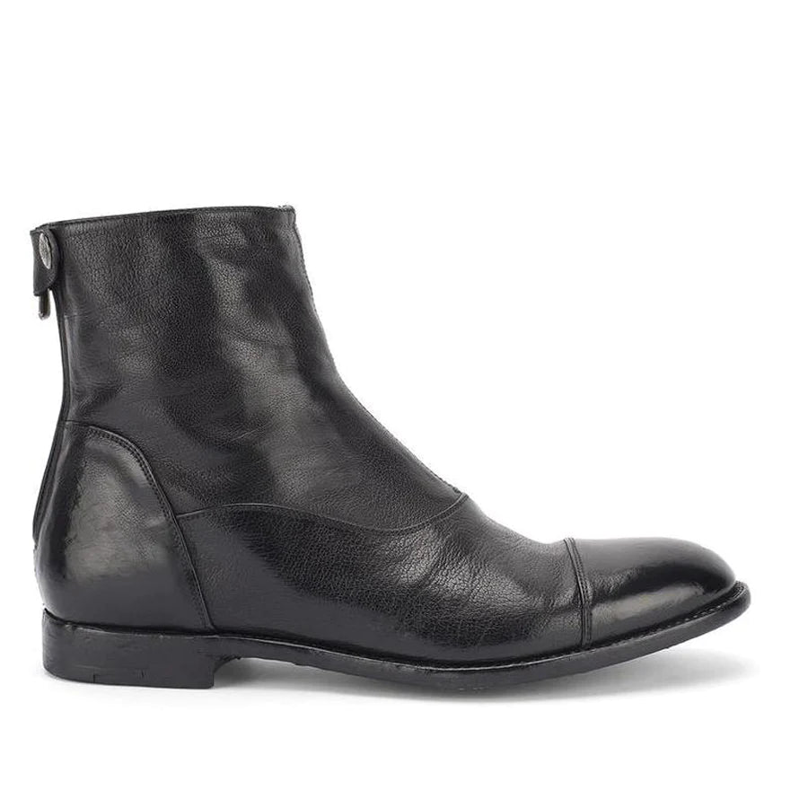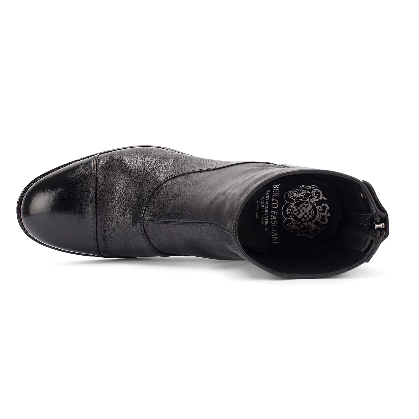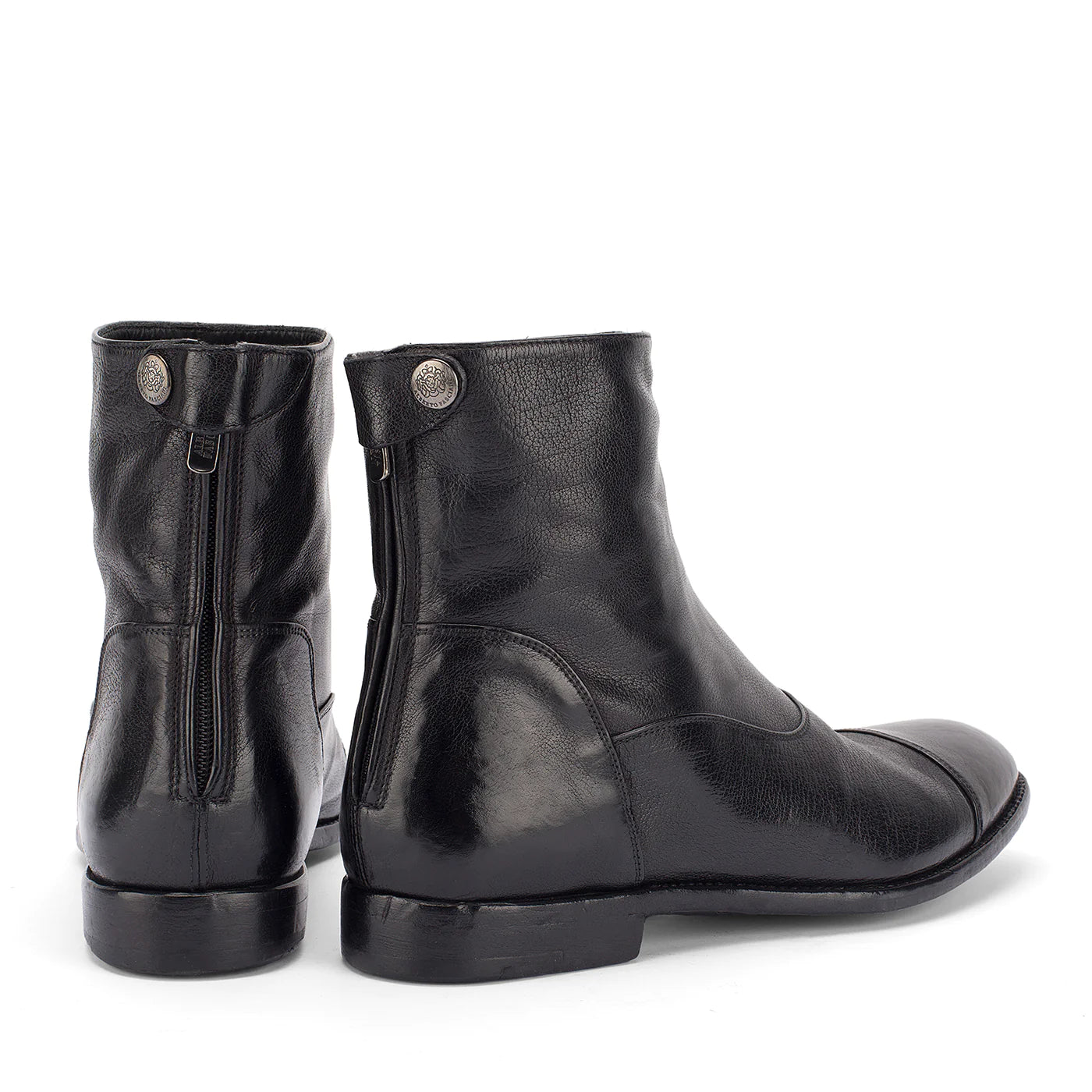 Elias 10000 is one of Fasciani's classic, historic and iconic ankle boot made from black buffalo leather, washed and polished by hand entirely. It has a zip fastening and a snap button on the back side. Finished with leather sole.