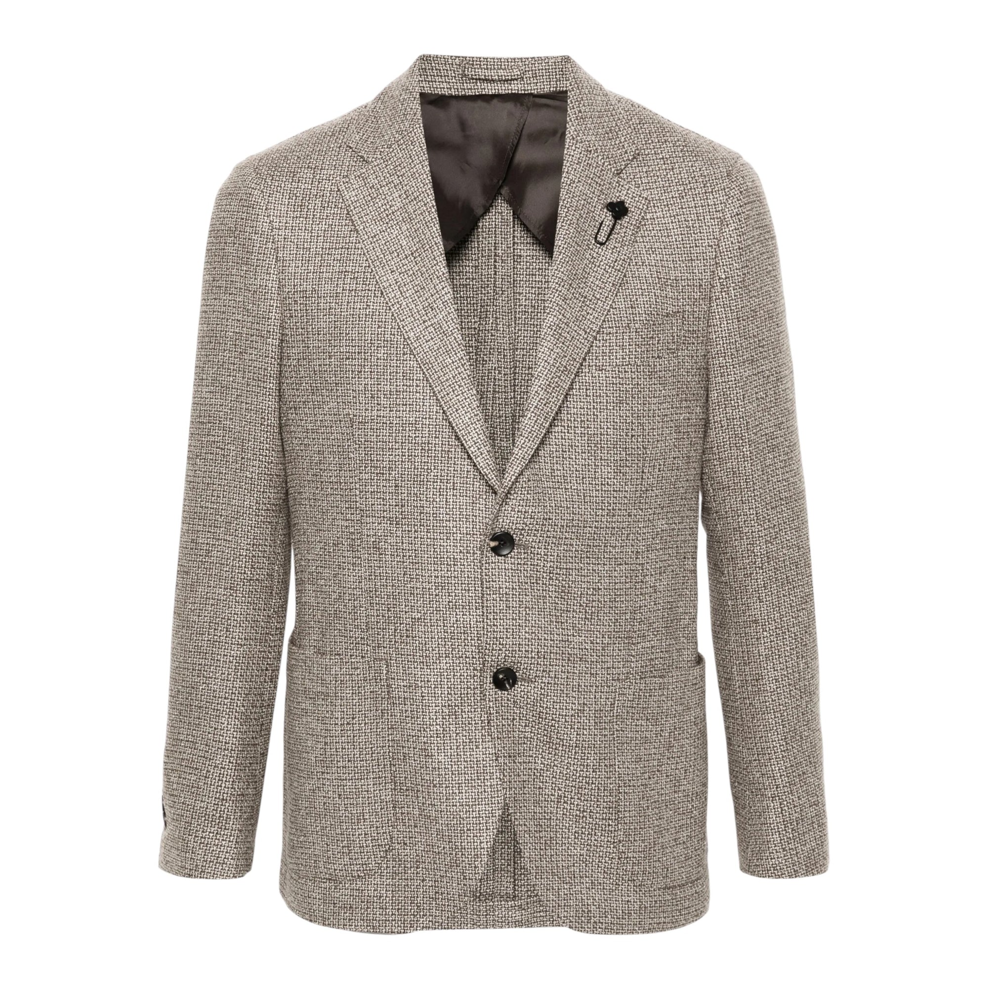 Eksklusiv Lardini blazer til herre, designet i en sofistikeret interwoven struktur, der giver jakken et elegant og karakterfuldt udtryk. Den single-breasted blazer kombinerer klassisk italiensk skrædderkunst med moderne materialer, hvilket gør den ideel til både business, formelle begivenheder og stilfulde hverdagslooks.