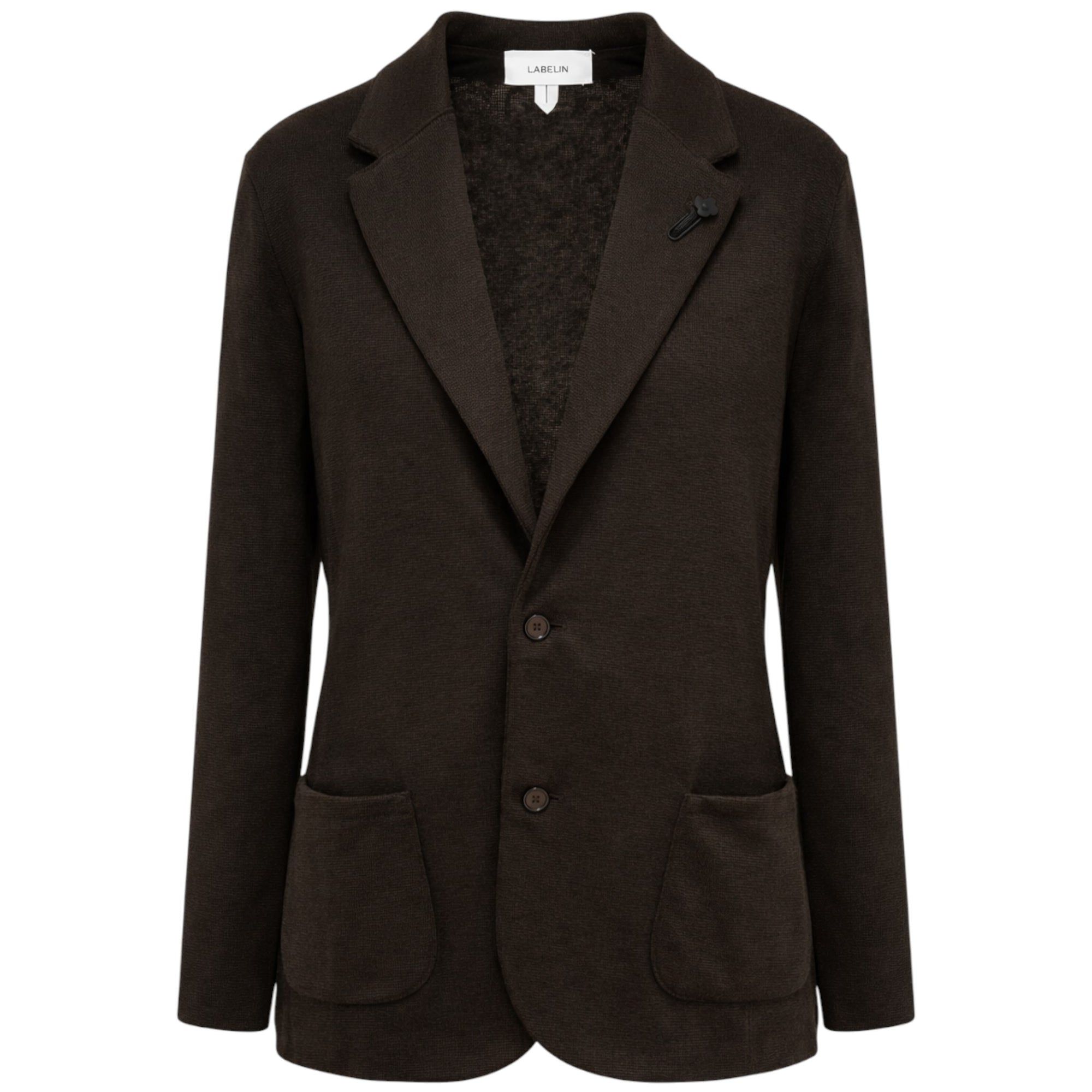 En alsidig Lardini blazer i mørkebrun uld – et sikkert valg til en stilfuld garderobe med fokus på kvalitet og italiensk design.