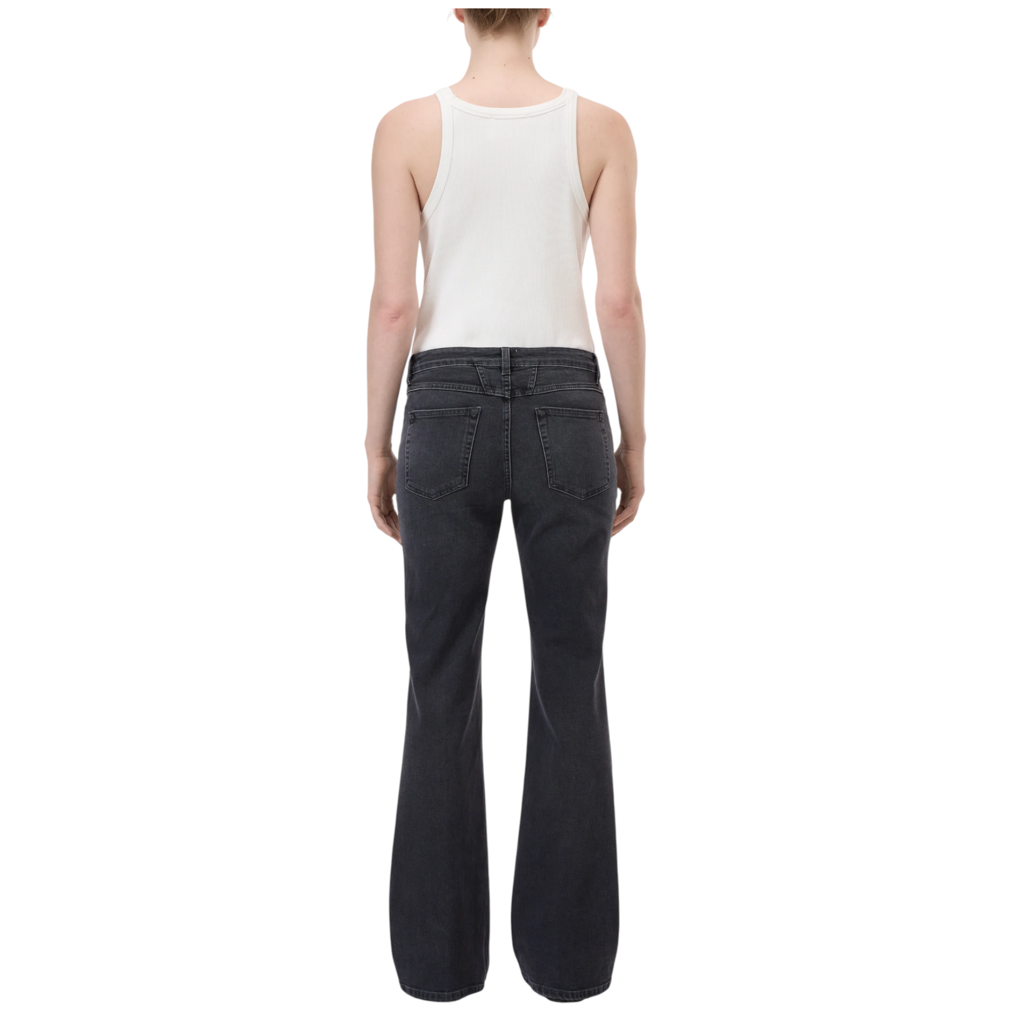 Jeansmodellen Jovanna er fremstillet i 12 oz. denim af regenerativ bomuld med biologisk nedbrydeligt stretchgarn (Roica™ V550) fra det anerkendte Candiani-væveri i Italien. Designet med lav talje og flared/bootcut-silhuet med let udsving i benet og regulær længde. Den høje strækbarhed giver maksimal bevægelsesfrihed og en ekstra blød komfort.