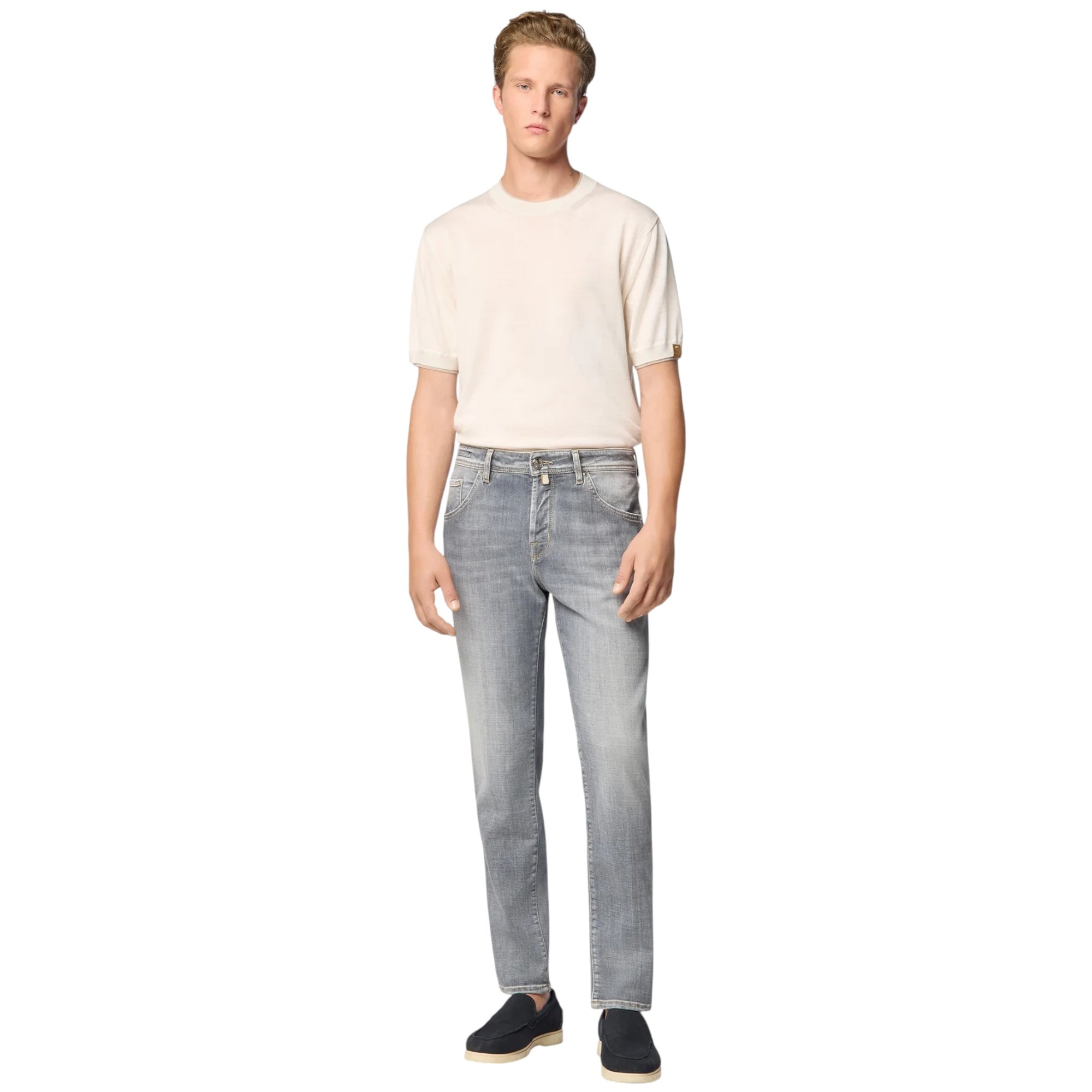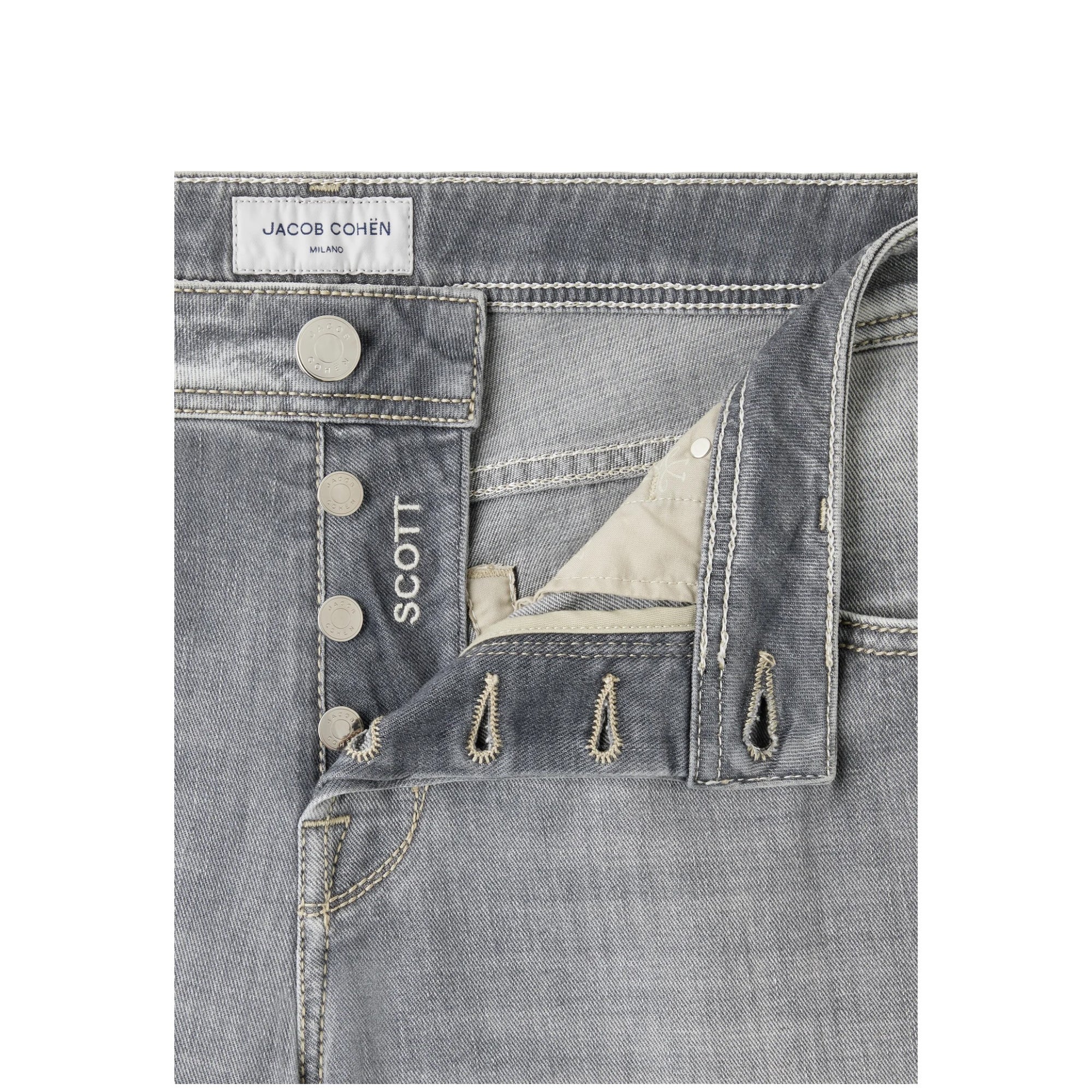 Opgrader denimgarderoben med disse eksklusive Scott Carrot Slim 5-Pocket Jeans i lysegrå super stretch denim, designet til dig, der ønsker maksimal komfort, luksus og et moderne, karakterfuldt udtryk. Denne model har en slim carrot fit med let cropped ben, som giver et skarpt og modebevidst look.