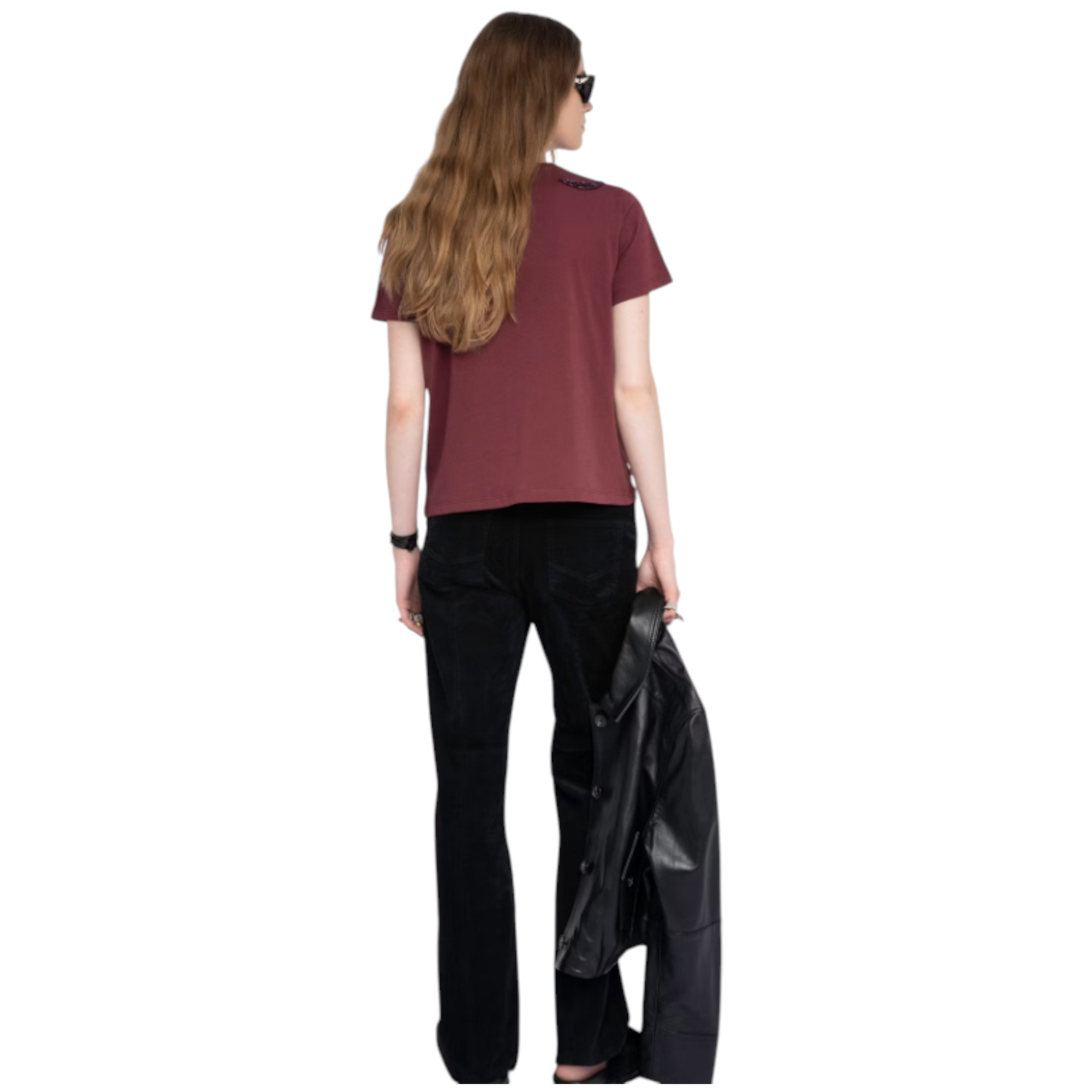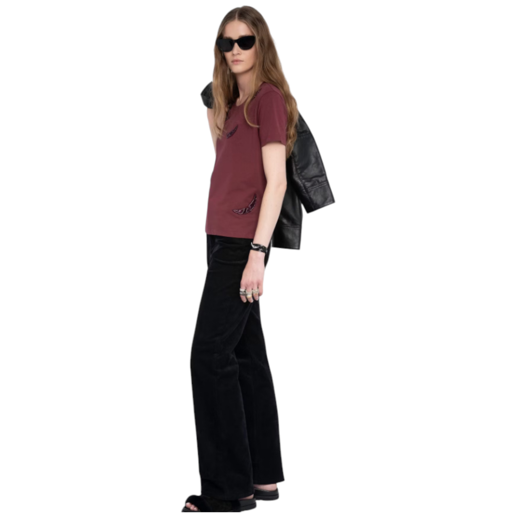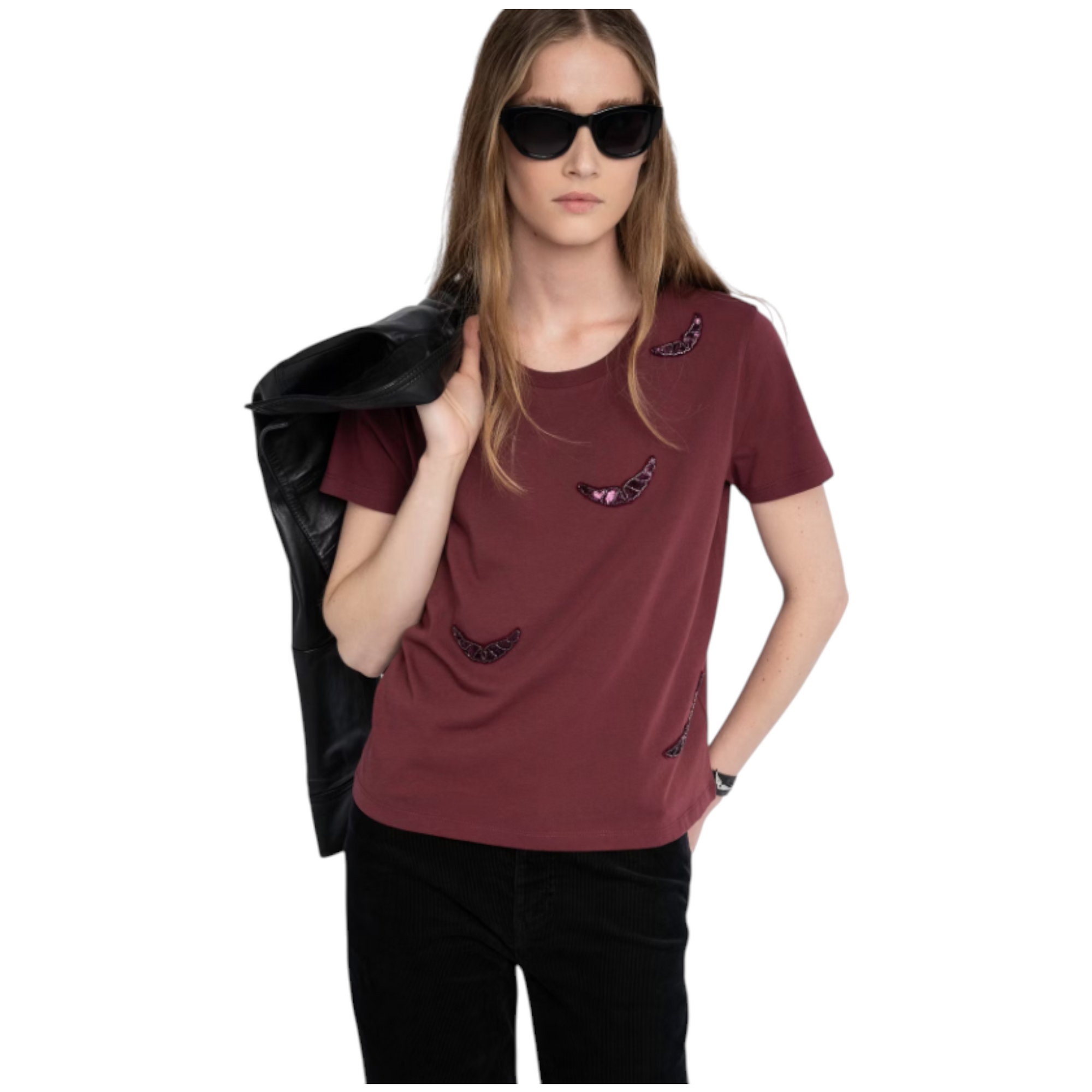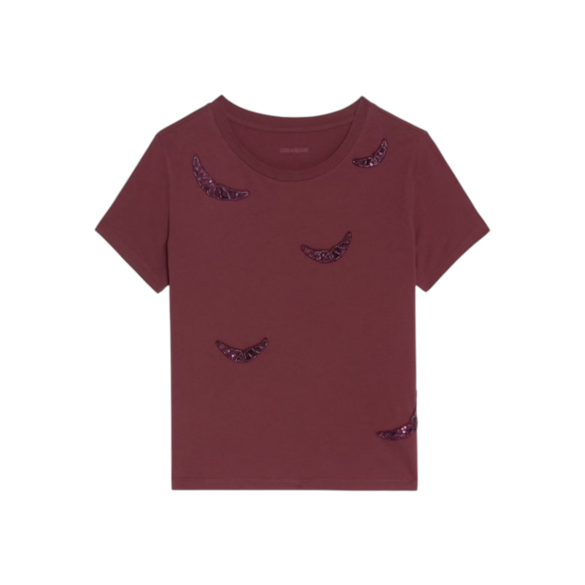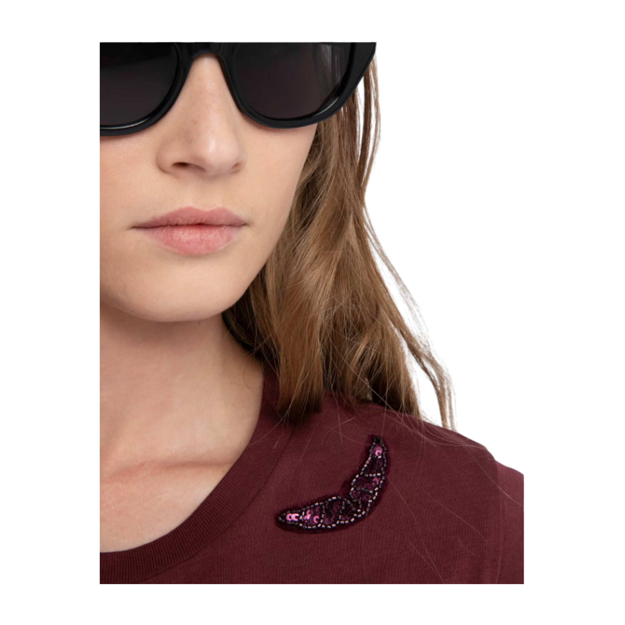 Kortærmet T-shirt i 100% bomuld med rund hals og broderede signaturvinger. Klassisk pasform, men en smule lille i størrelsen – vælg eventuelt en størrelse større for et mere afslappet fit.