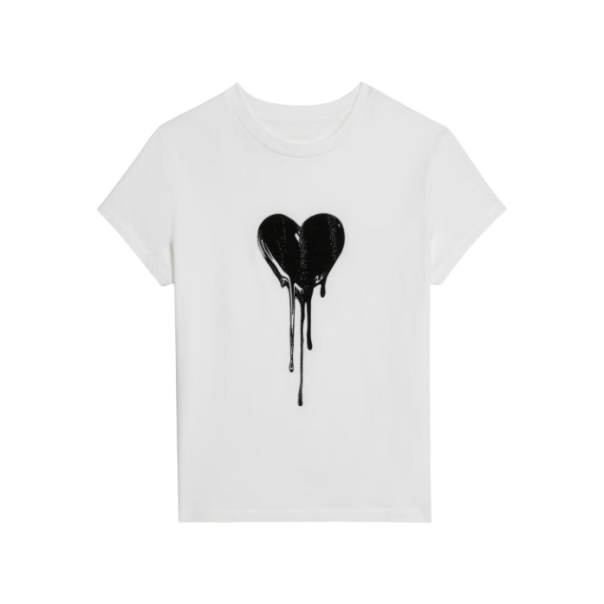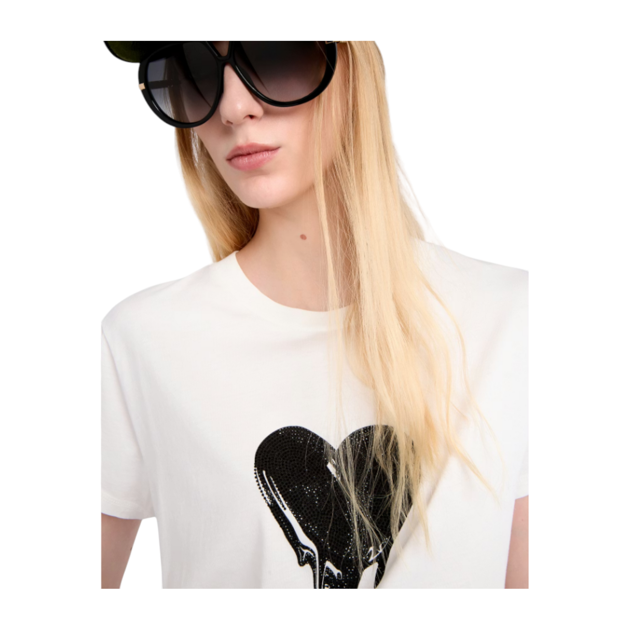 Walk T-shirt i 100% bomuld. En rundhalset T-shirt med korte ærmer og et smukt “Flowing Heart”-print udsmykket med rhinestones.