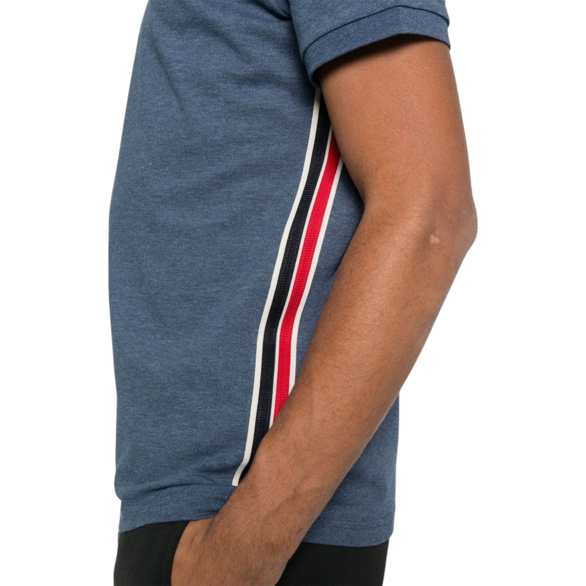 Striped Accent Cotton Piquet Polo Shirt Blue