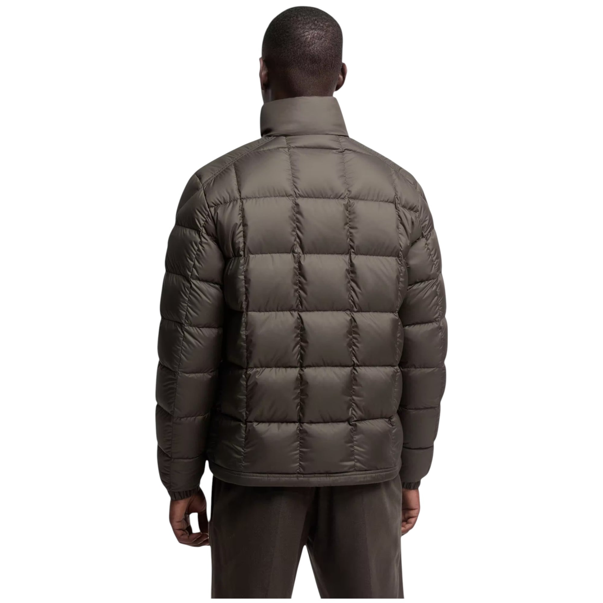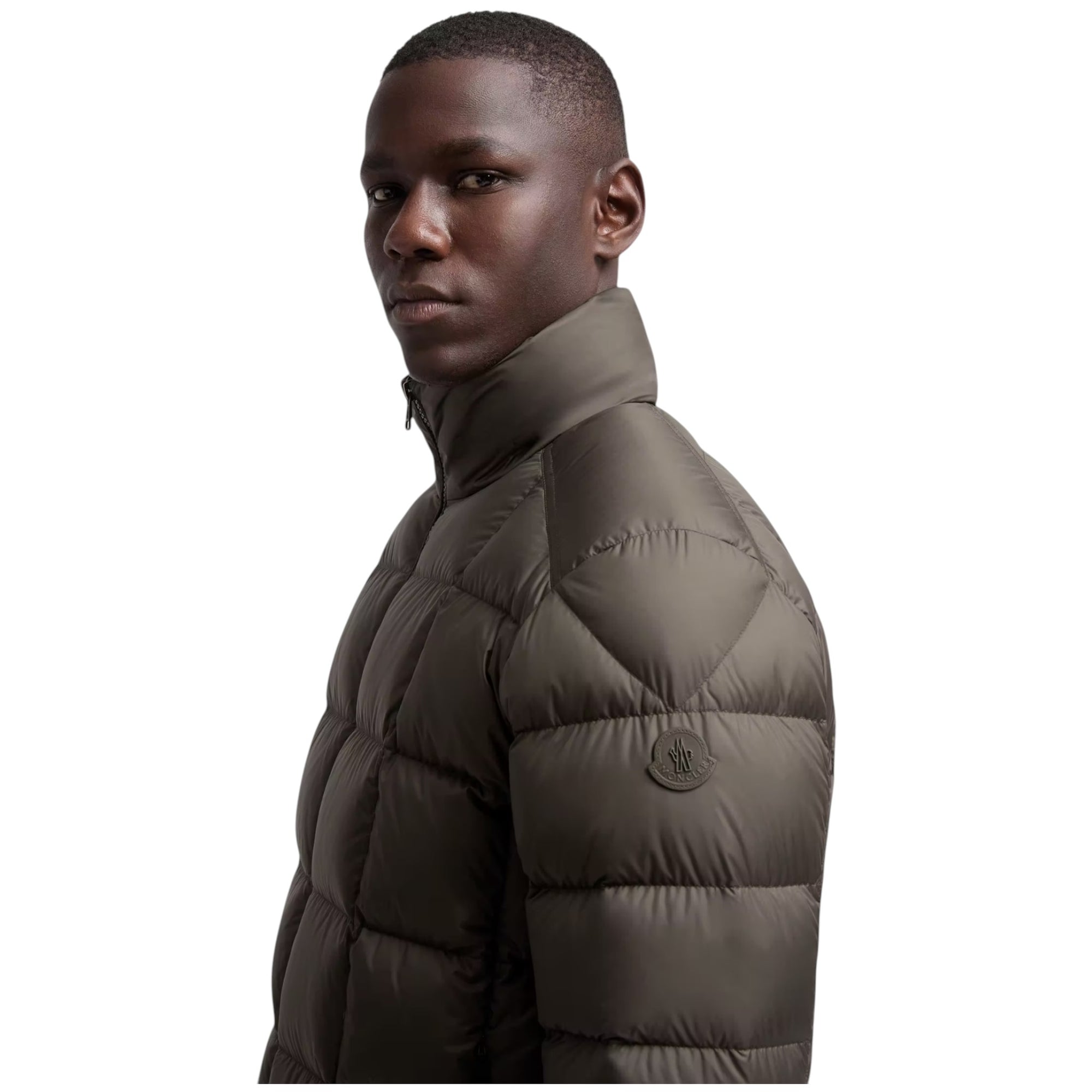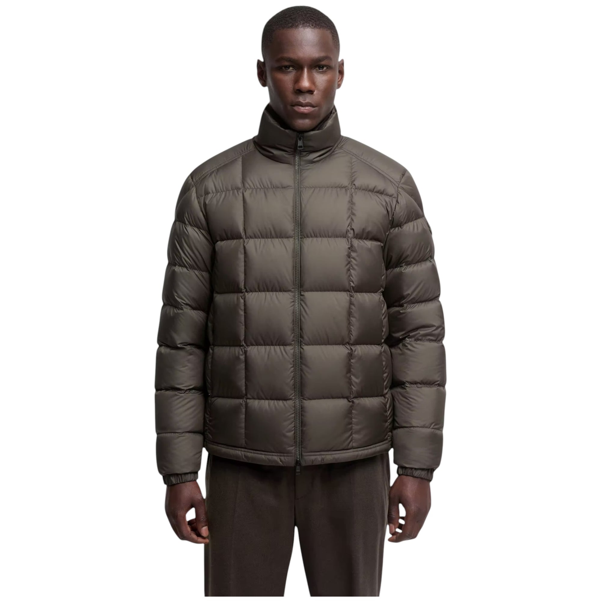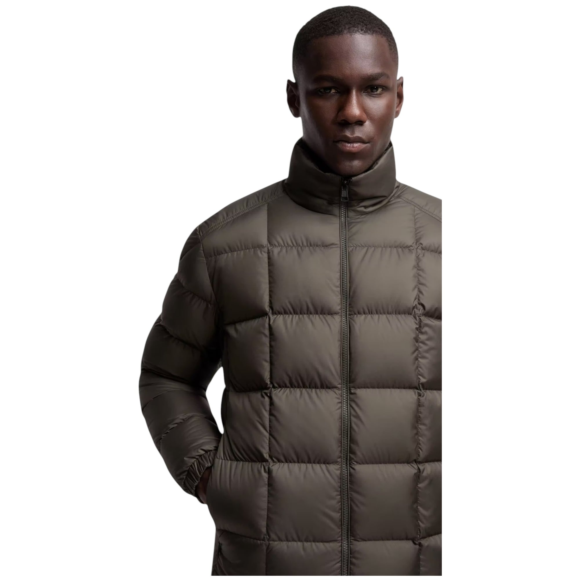 Eglise Square-Quilted Hooded Short Down Jacket er designet til den moderne mand, der sætter pris på funktionelt design og eksklusiv komfort. Den olivengrønne farve giver et maskulint og tidløst udtryk, som let kan styles med alt fra jeans til chinos.