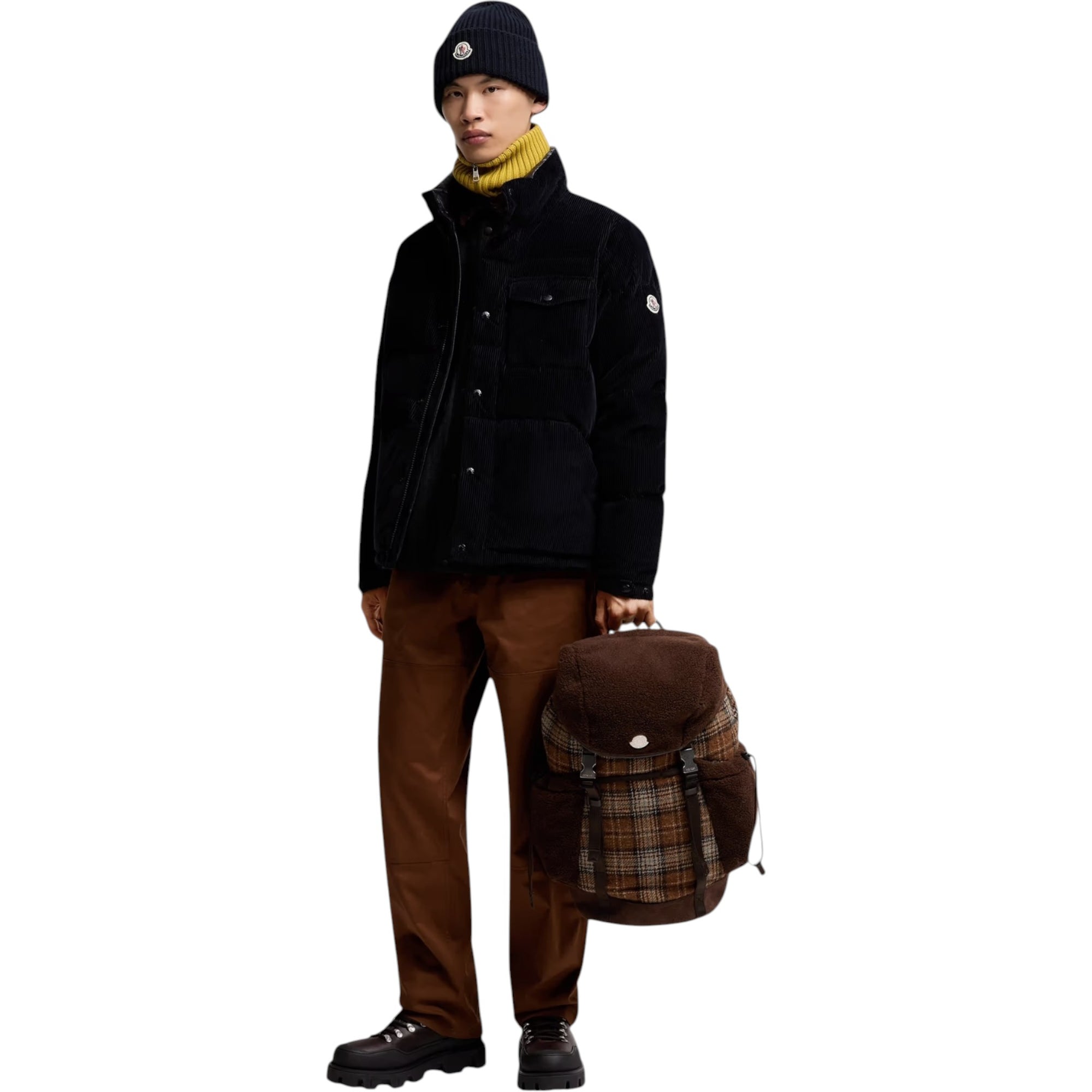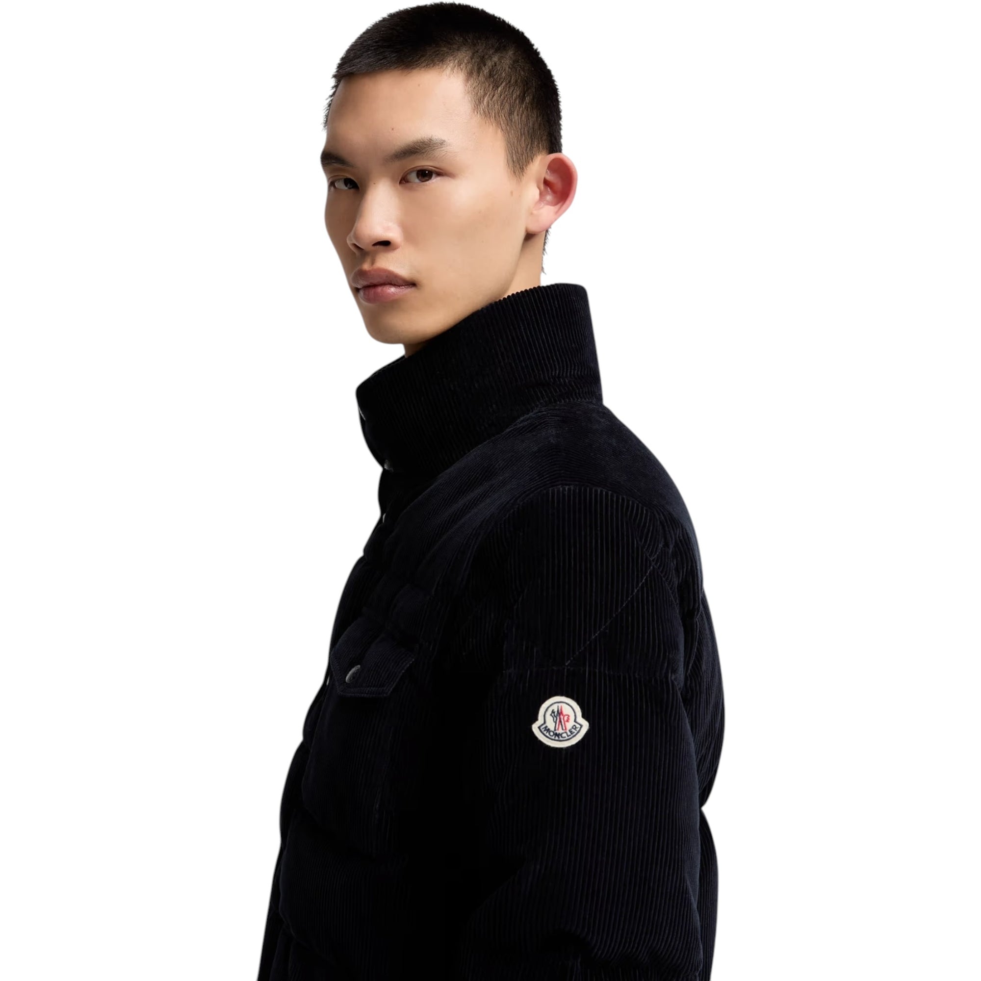 Serrant kombinerer klassisk fløjlsfinish med moderne puffer-design, og skaber en iøjnefaldende jakke med volumen og struktur. Den sorte fløjlsjakke til mænd er fyldt med dun for maksimal varme og er udstyret med ikoniske detaljer, der refererer til Monclers designarv – herunder en praktisk logo-prydet brystlomme, inspireret af Maya-jakken.