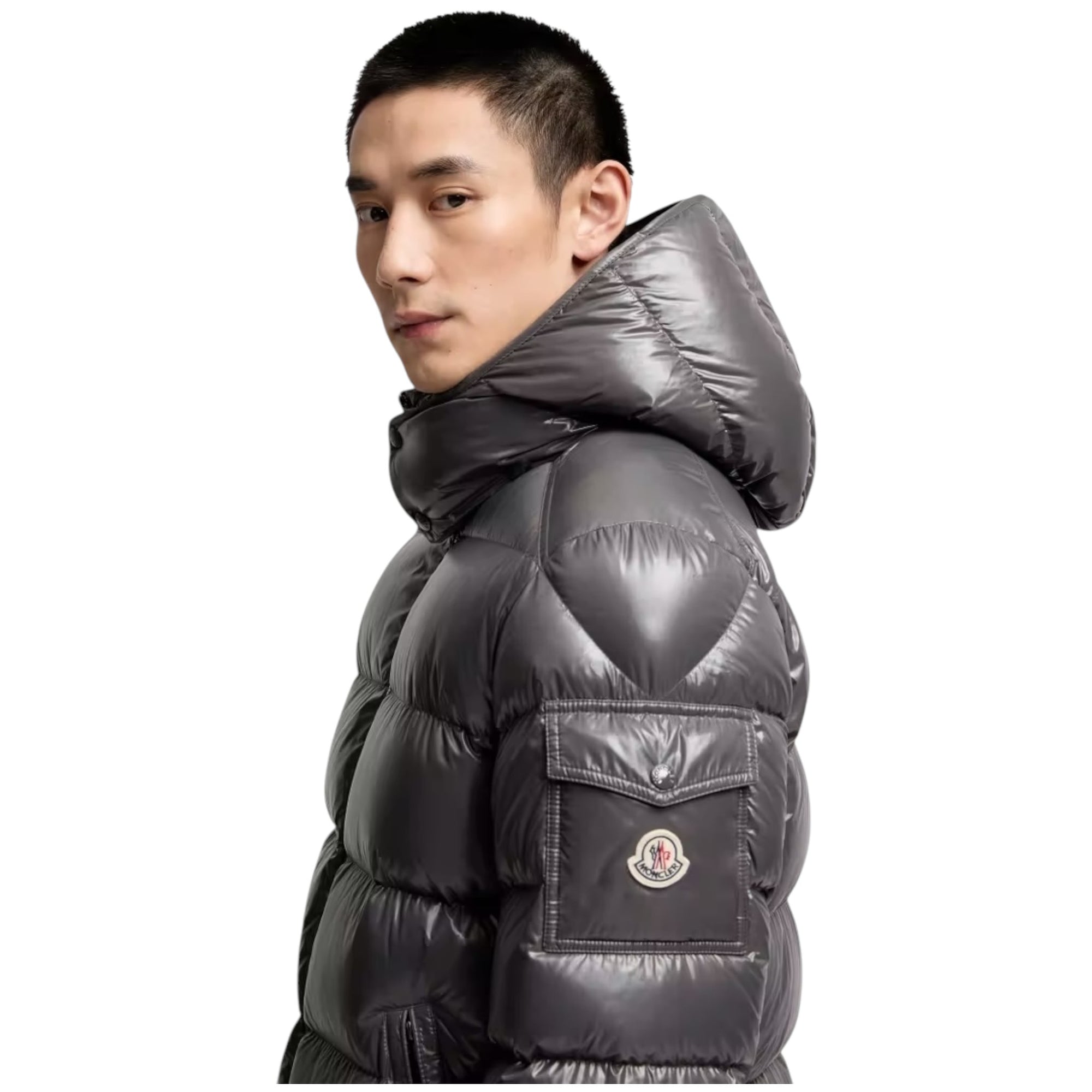 Klassisk Moncler-logo på ærmelomme med klap