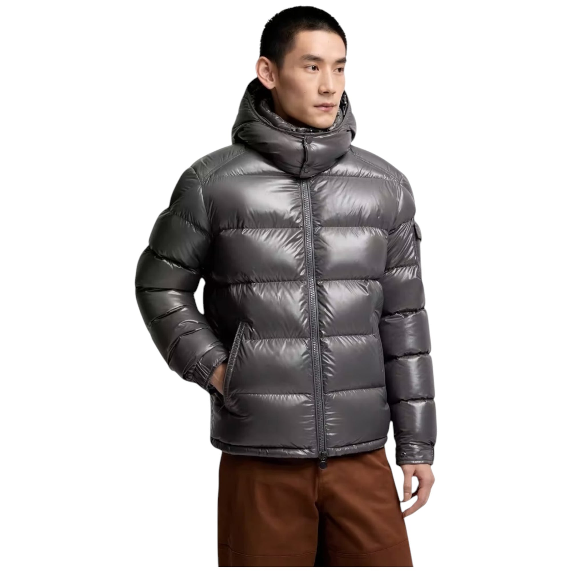Oplev luksus og ikonisk design med Moncler Maya jakken – en eksklusiv kort dunjakke til mænd, der kombinerer stil, funktionalitet og premium kvalitet. Denne Moncler dunjakke i grå er fremstillet i det karakteristiske, blanke nylon laqué, som giver jakken sit genkendelige look og luksuriøse finish.