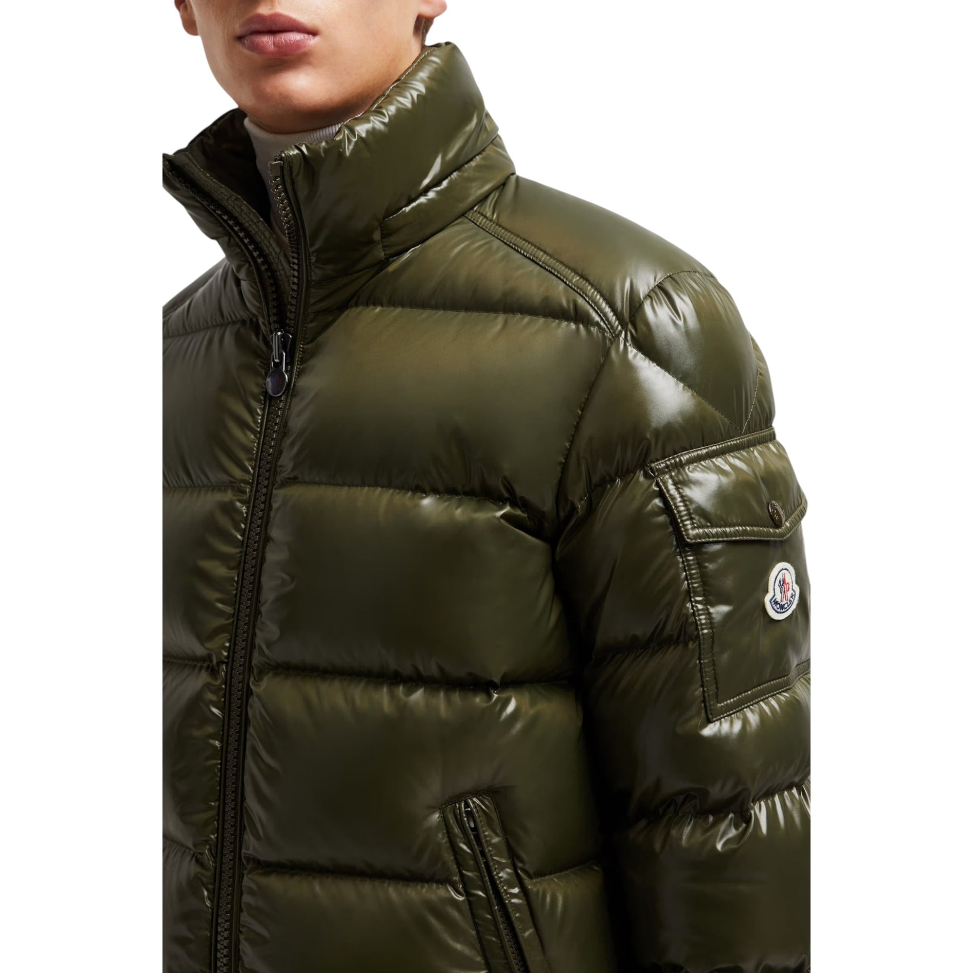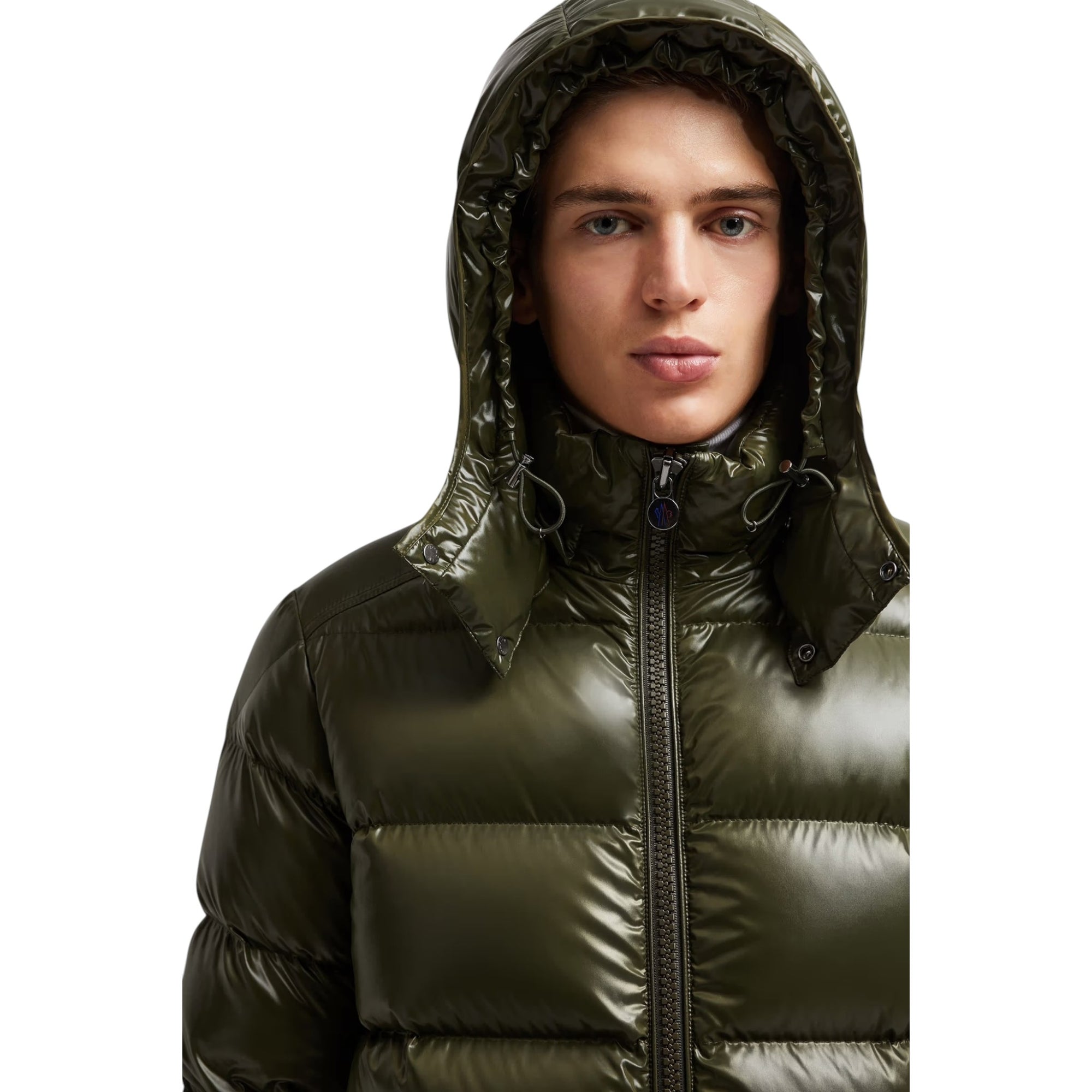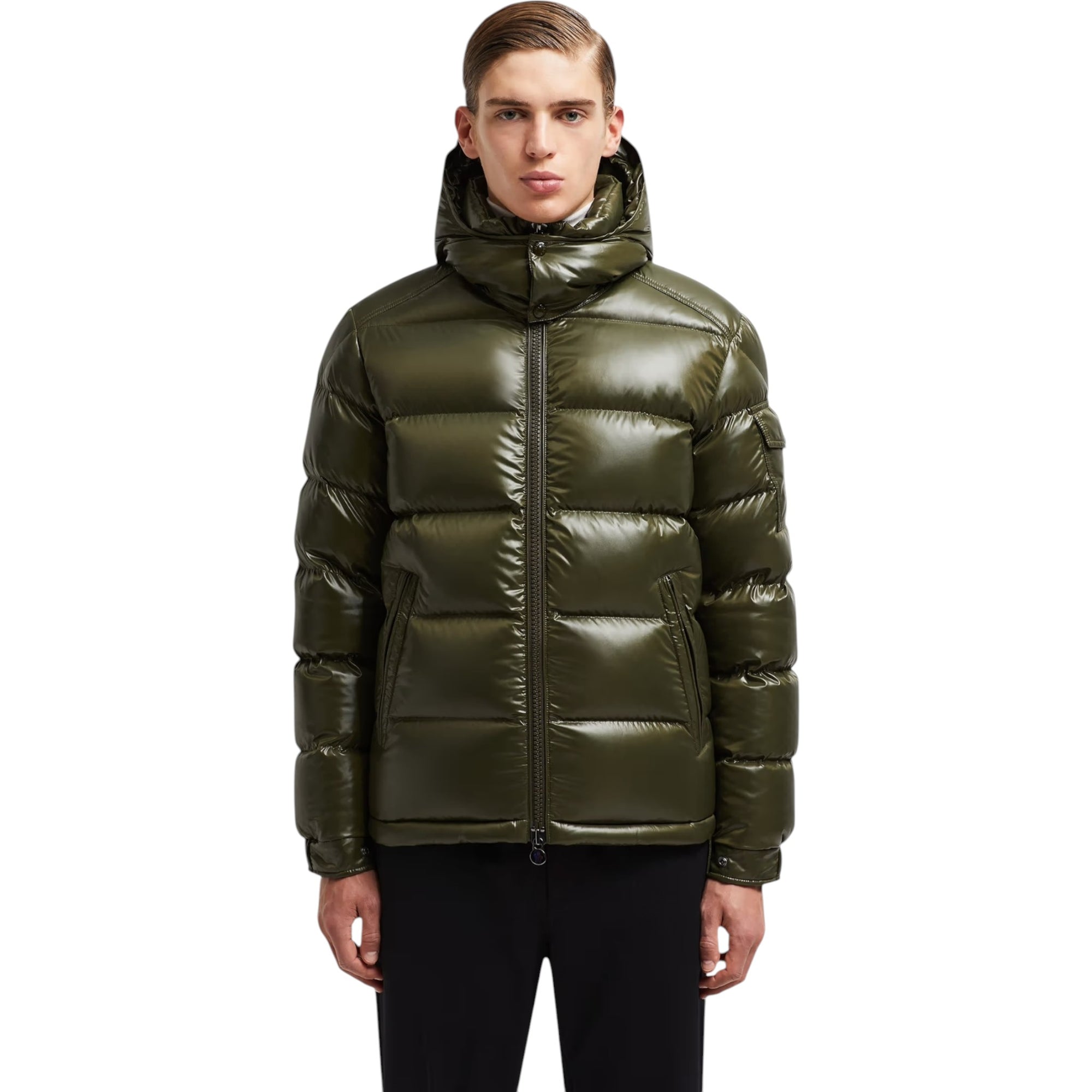 Maya er en af Monclers mest kendte og elskede modeller – og med god grund. Denne korte grønne dunjakke til mænd er fremstillet i det karakteristiske glossy nylon laqué, som kombinerer højglansfinish med holdbarhed og vind-/vandafvisende egenskaber. Jakken er foret med varmende dun og har en skarp silhuet, der gør den lige dele sporty og sofistikeret.