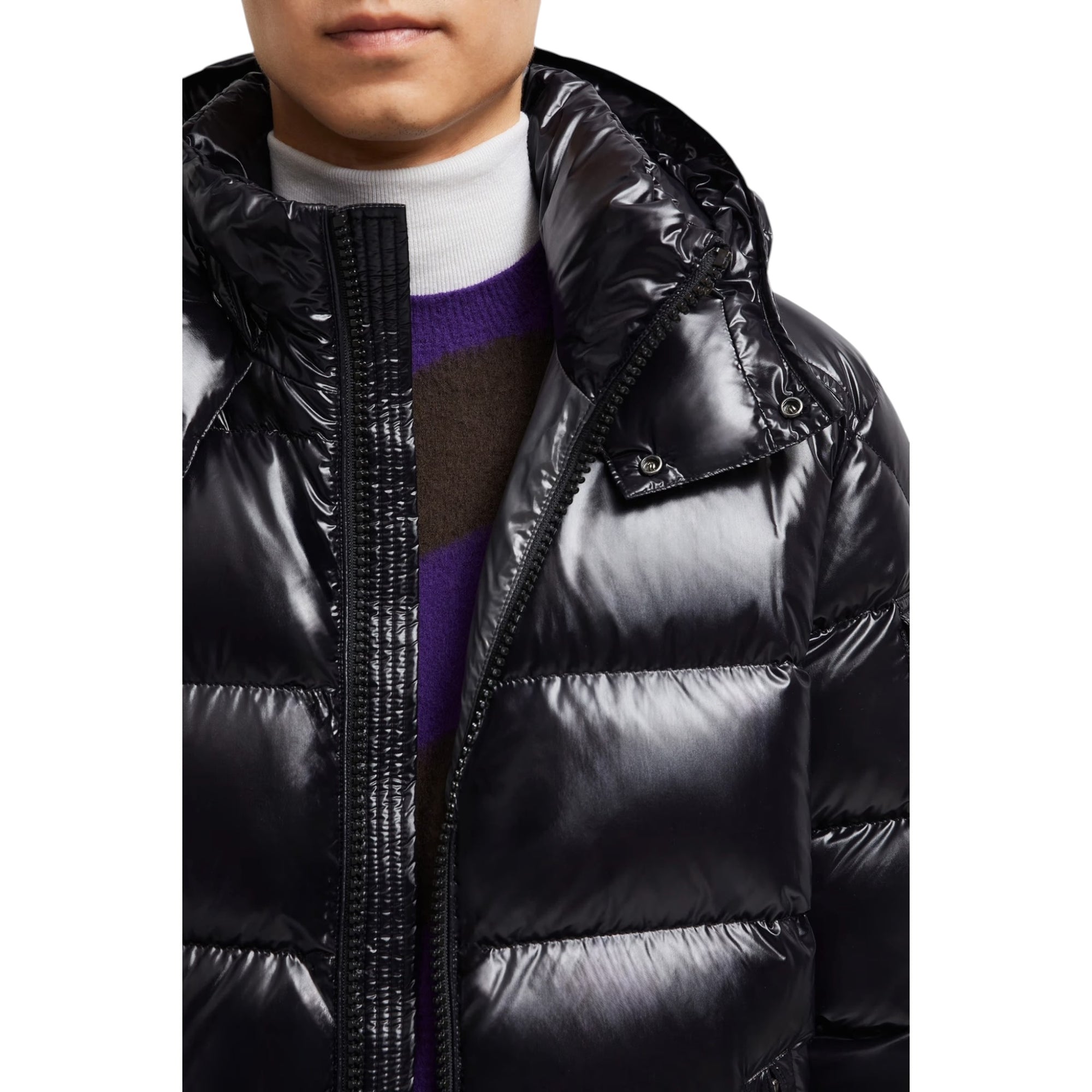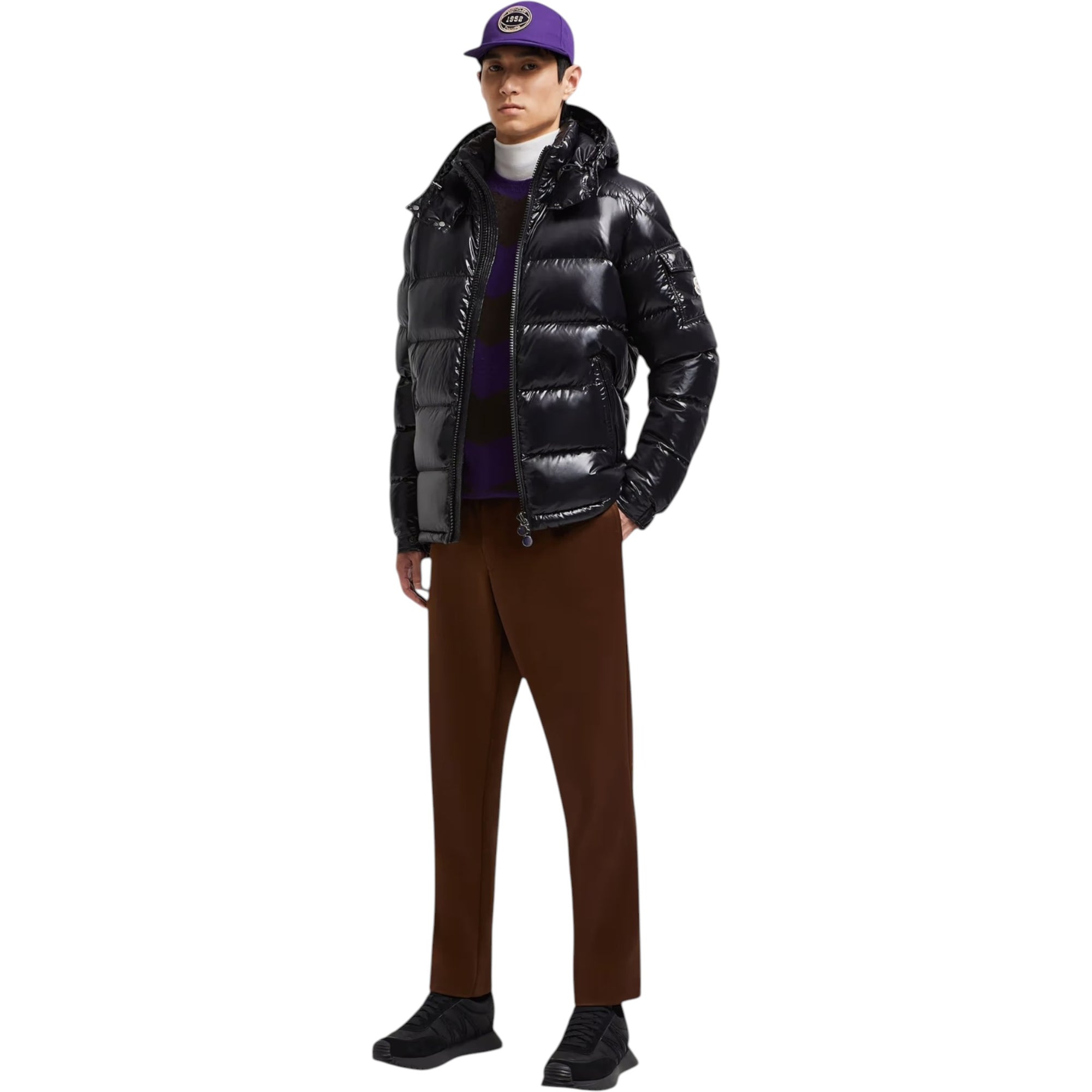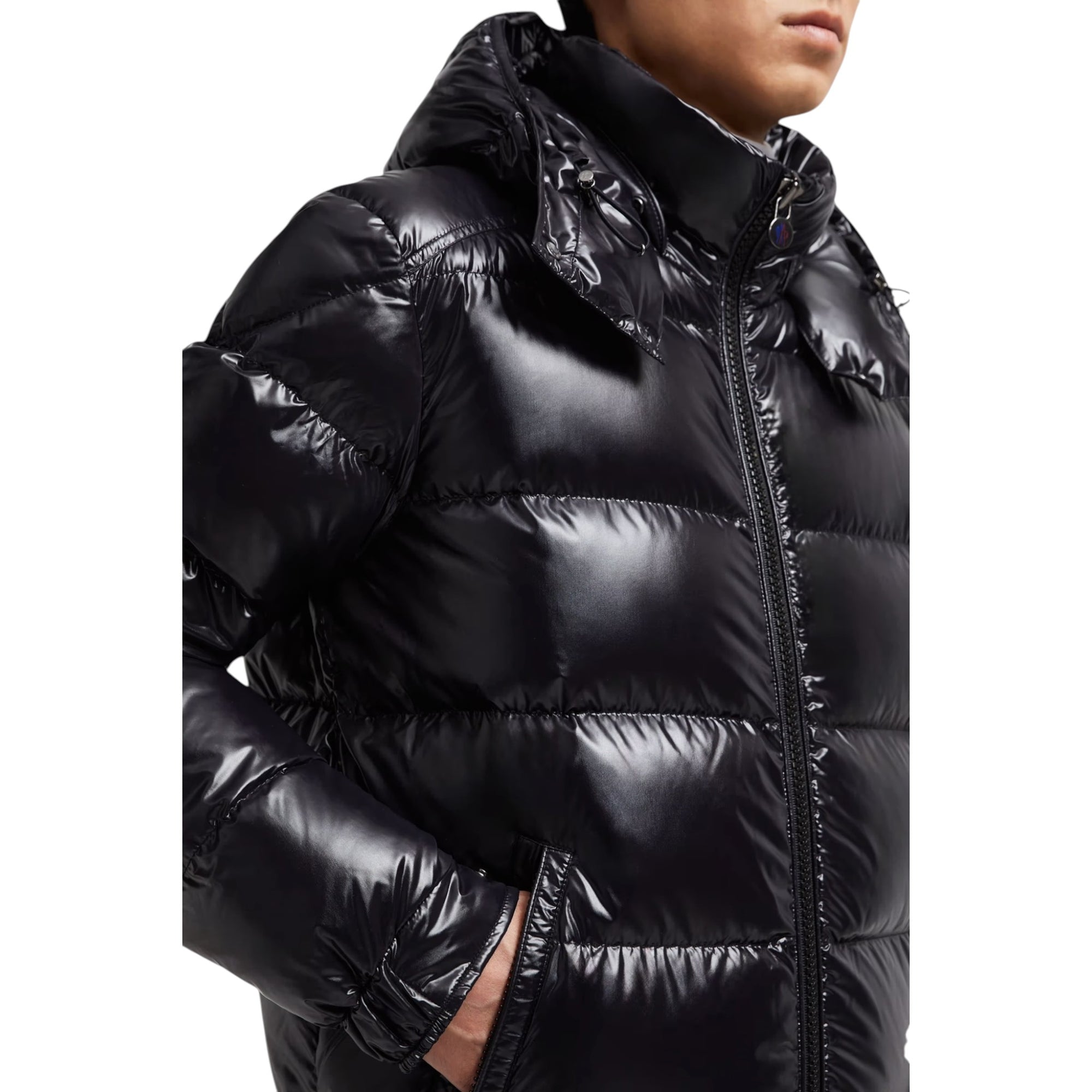 Oplev luksus og ikonisk design med Moncler Maya jakken – en eksklusiv kort dunjakke til mænd, der kombinerer stil, funktionalitet og premium kvalitet. Denne Moncler dunjakke i sort er fremstillet i det karakteristiske, blanke nylon laqué, som giver jakken sit genkendelige look og luksuriøse finish.