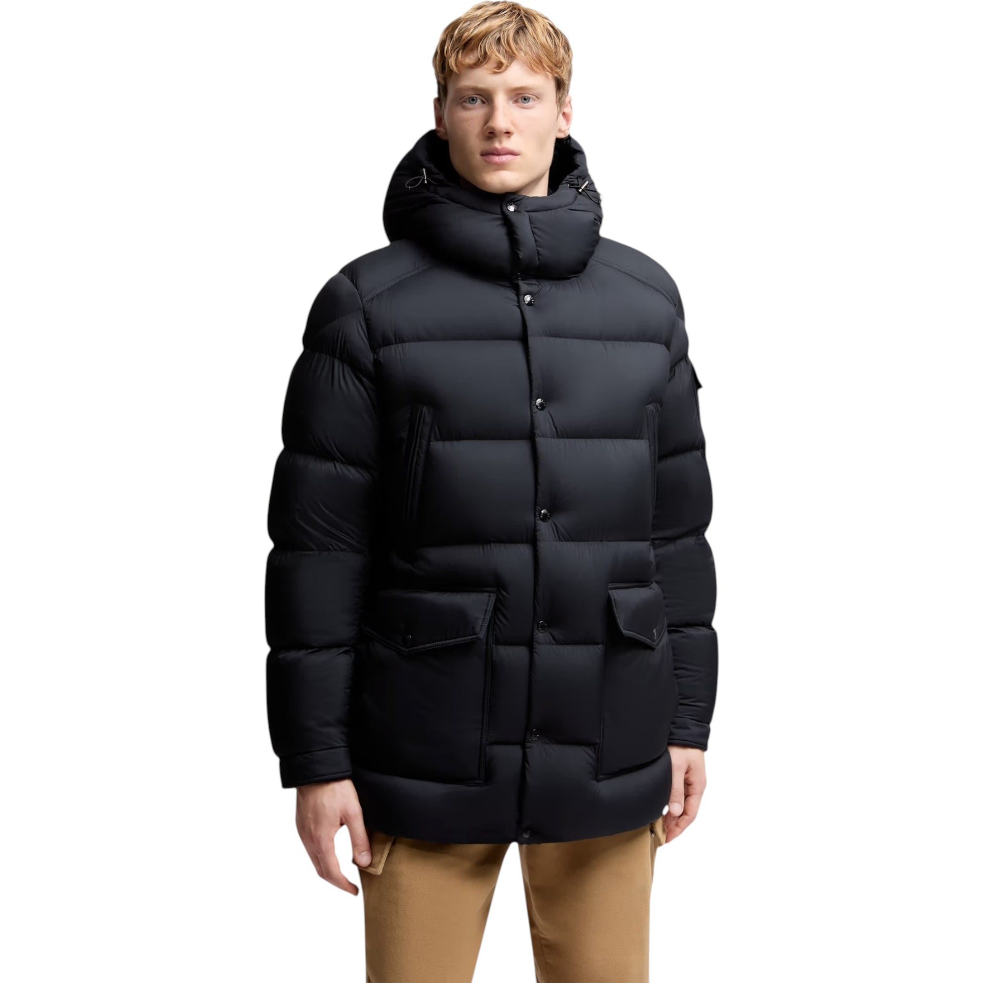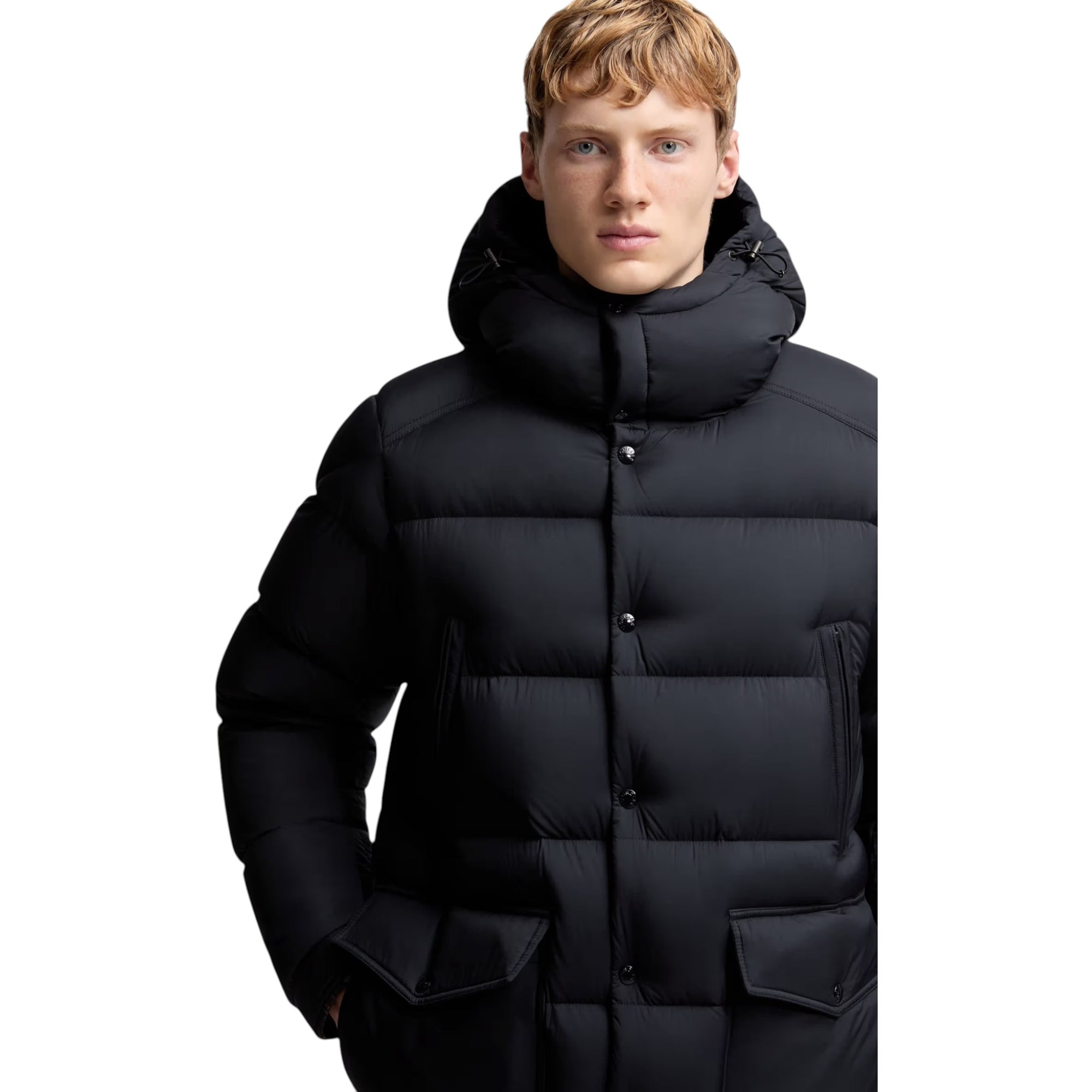 Denne korte navyblå dunjakke til mænd kombinerer praktiske detaljer med Monclers ikoniske designarv. Fremstillet i det eksklusive Longue Saison-materiale, er jakken både ultralet og vandafvisende, hvilket gør den perfekt til overgangsvejr og vinterdage. Den justerbare hætte, rummelige lommer og løstsiddende pasform gør Bretagne til et alsidigt valg for den moderne mand.