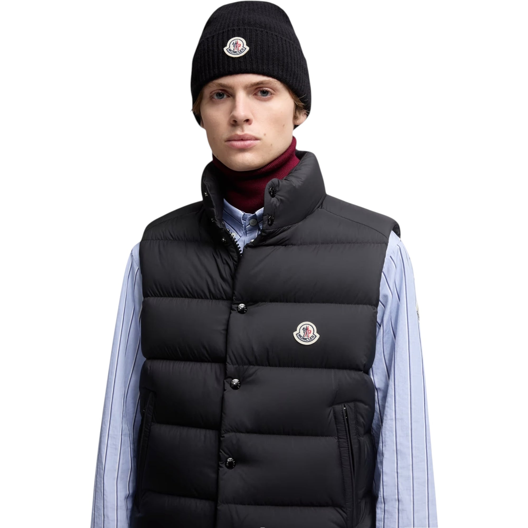 En tidløs sort Moncler hue – ideel til mænd, der ønsker eksklusivt vintertilbehør med maksimal komfort.