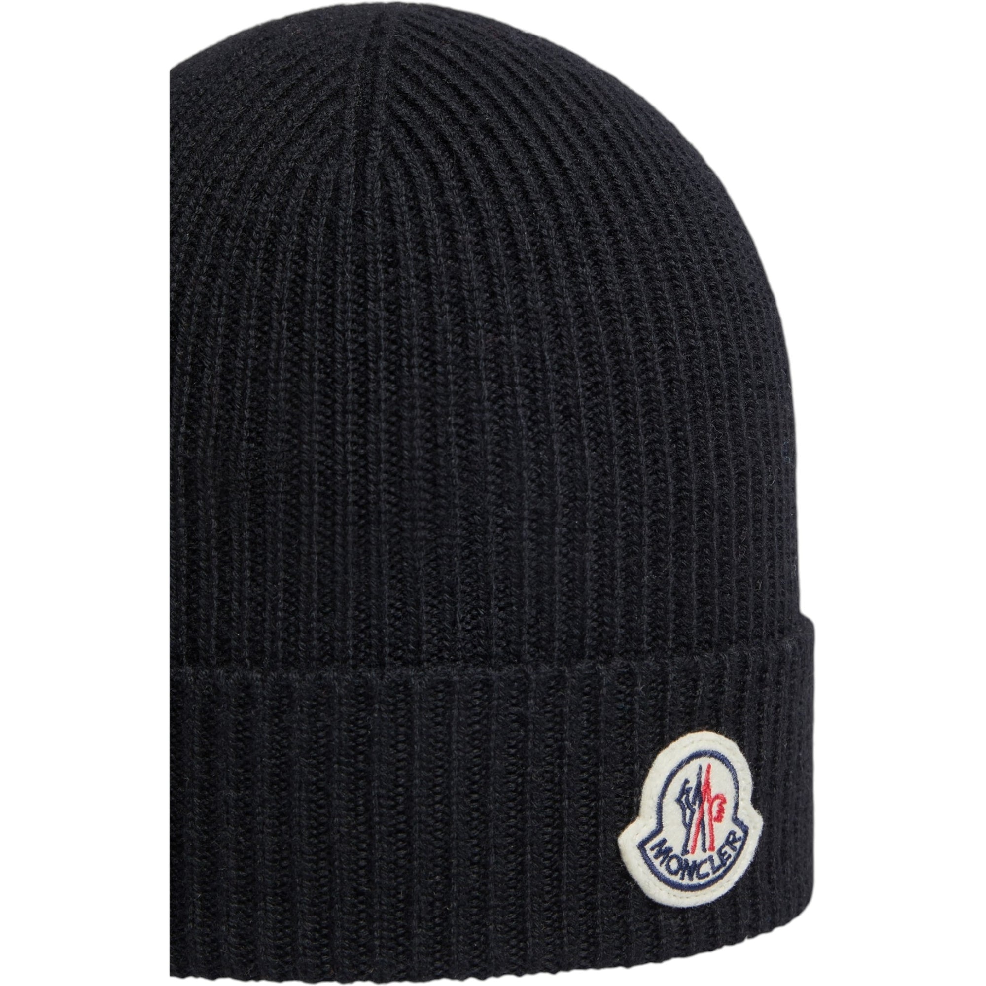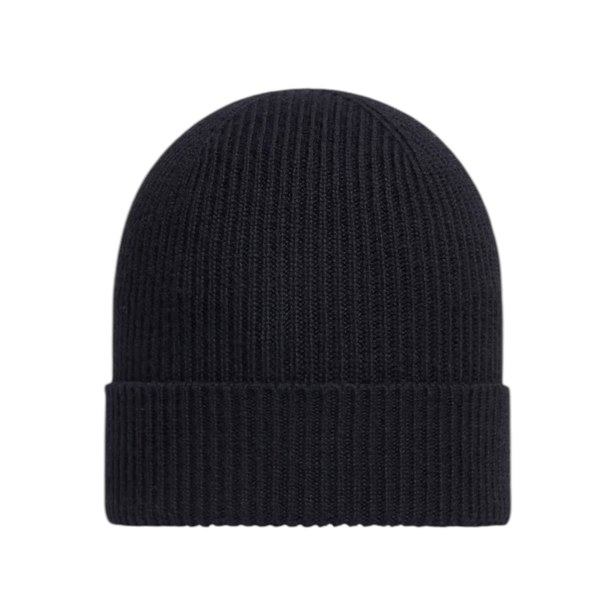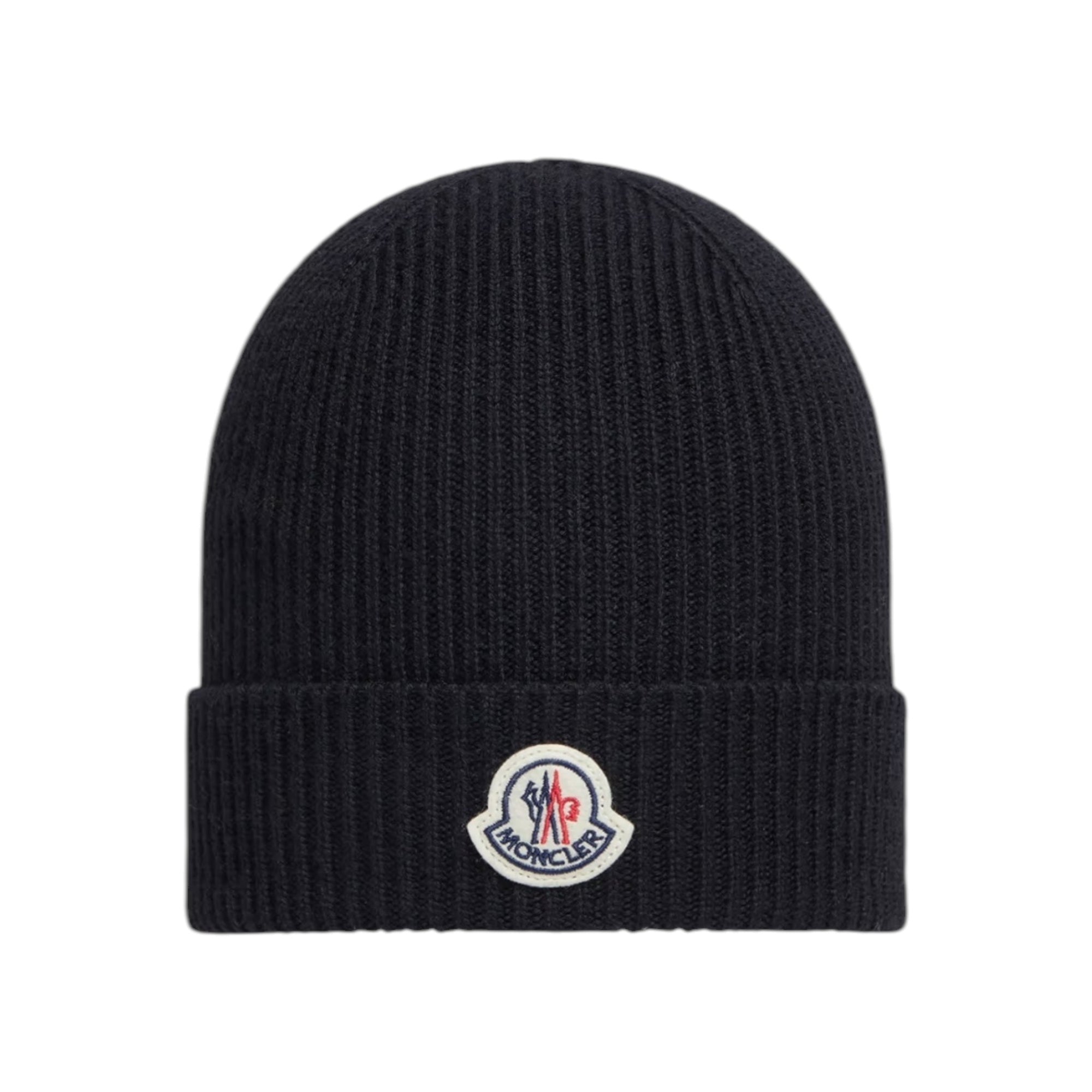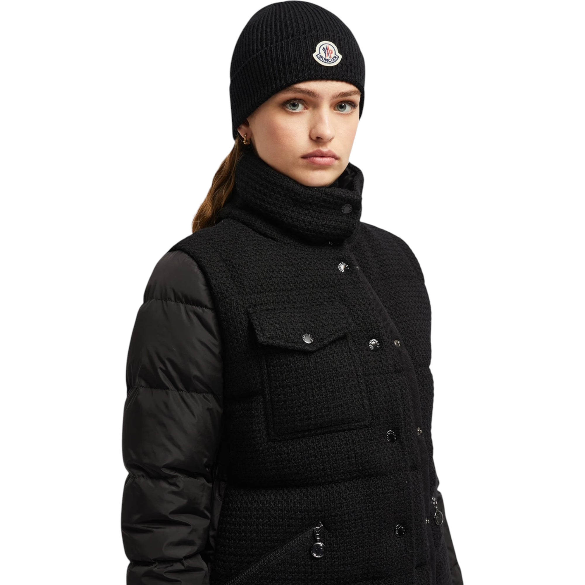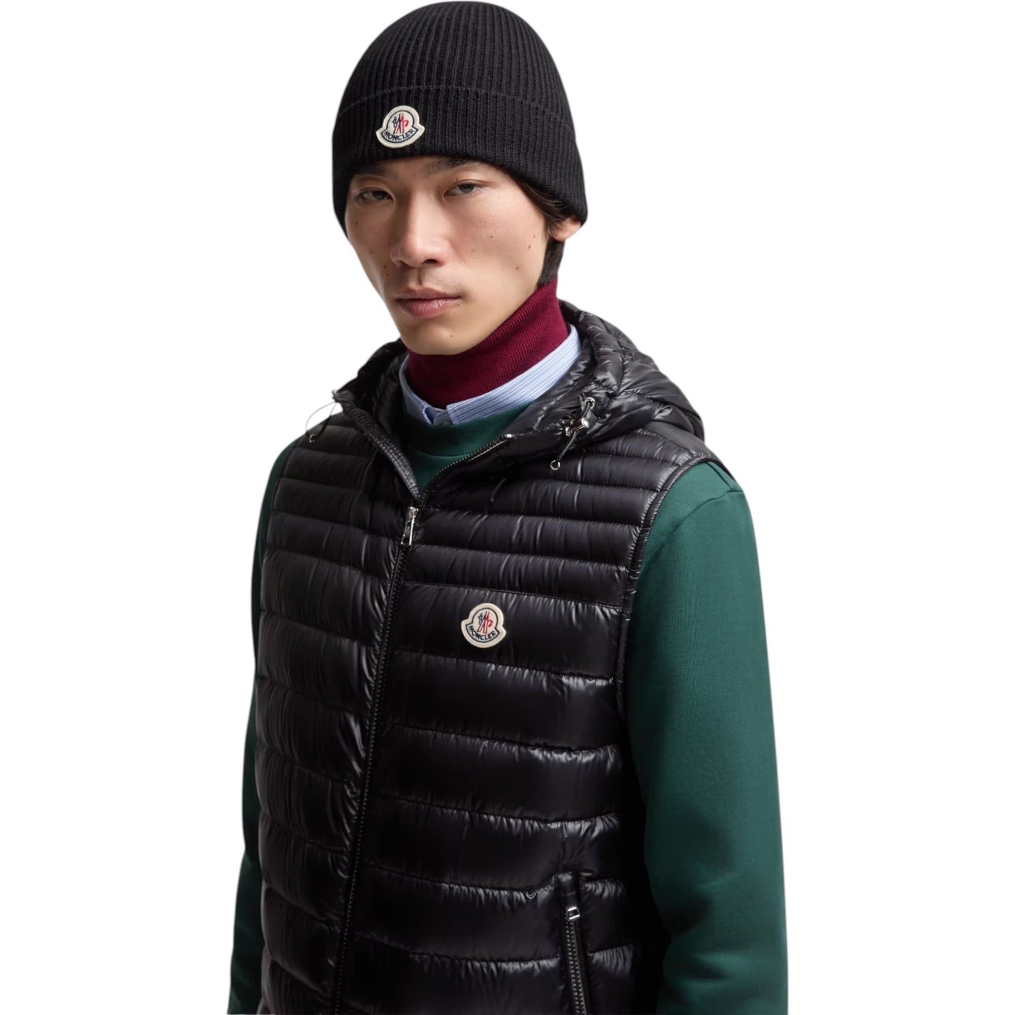 Eksklusiv sort Moncler beanie i blød uld – varm, stilfuld og ikonisk