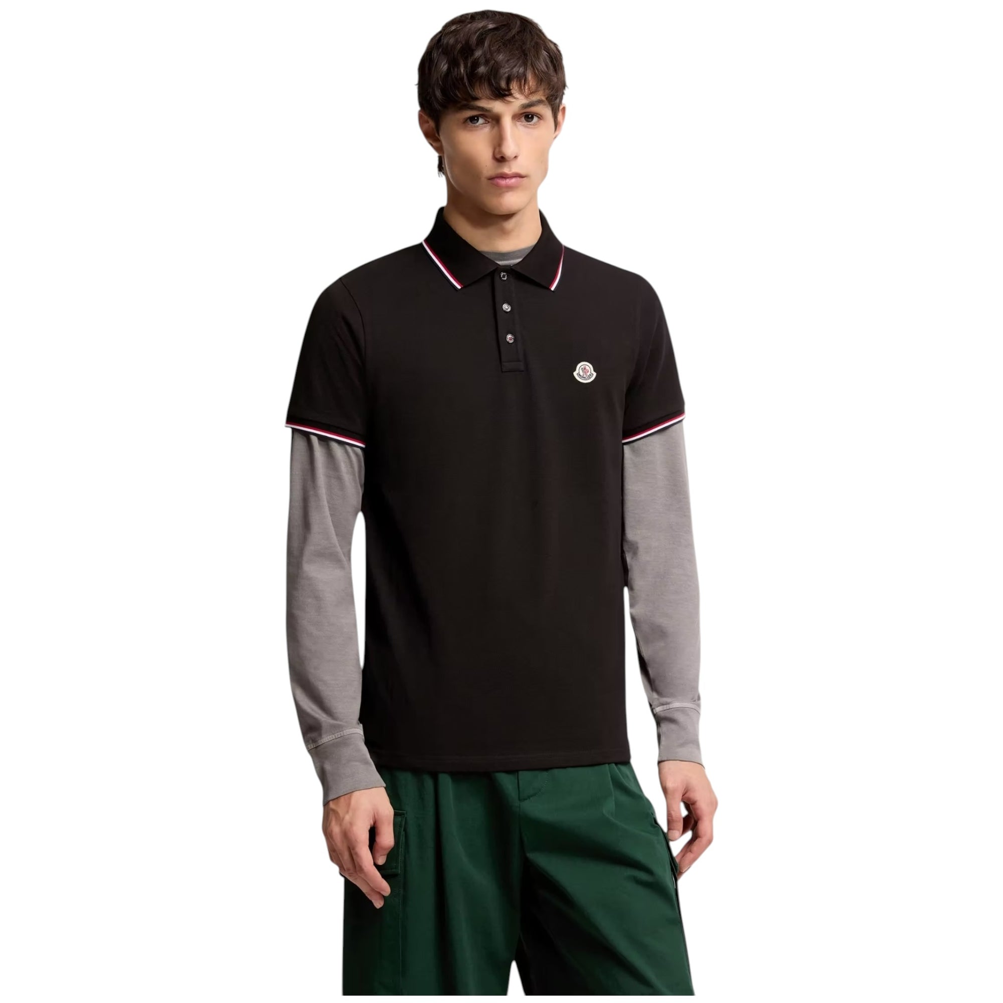 Tricolor-Trimmed Cotton Piquet Polo Shirt Sort