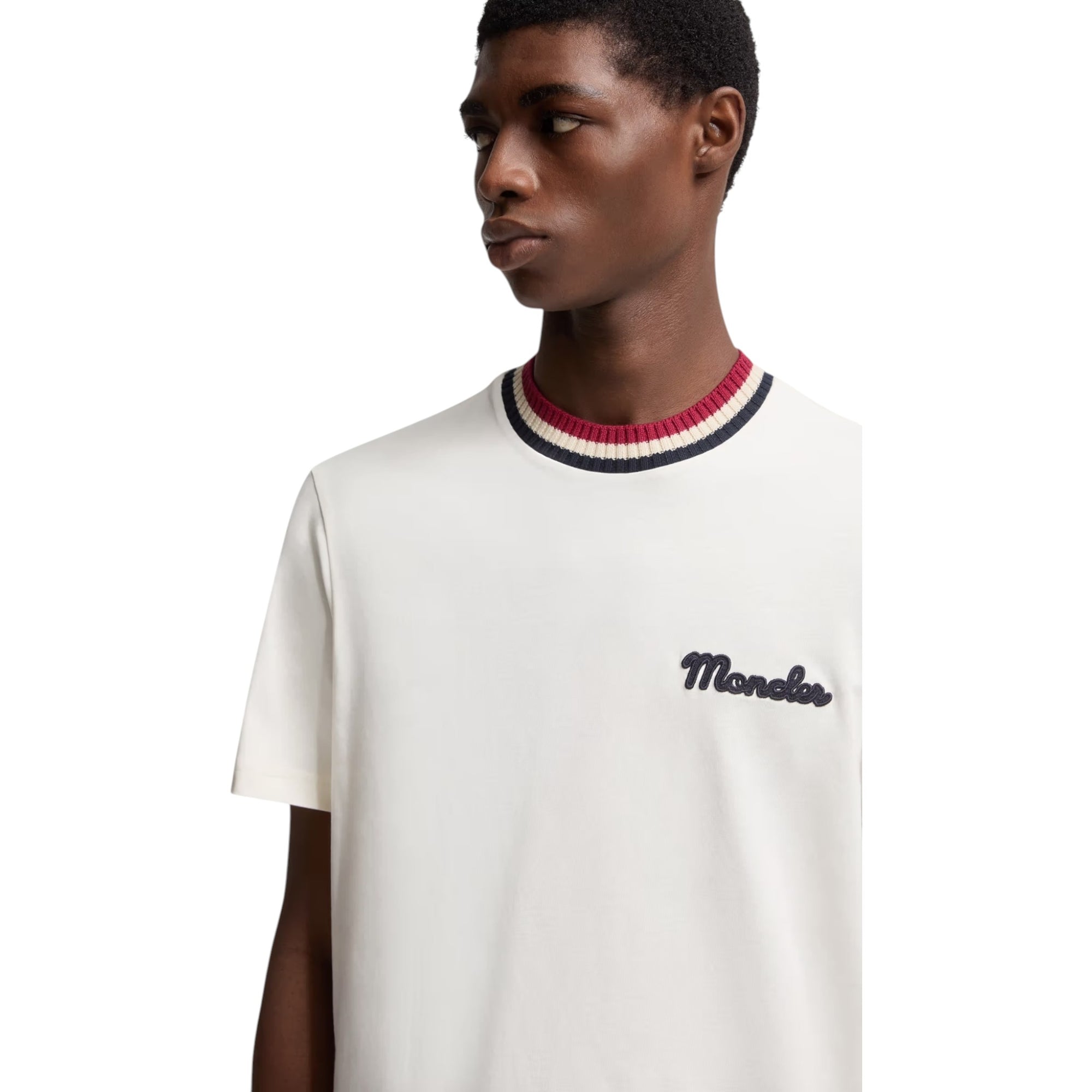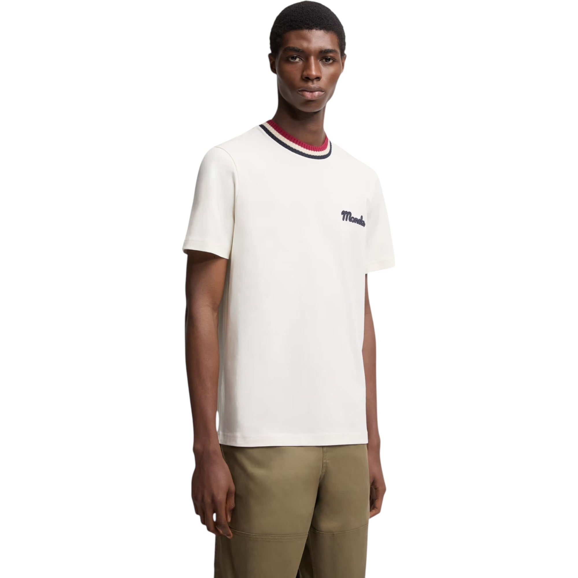 Embroidered Logo Cotton T-Shirt Offwhite – Alsidig og stilfuld basis-T-shirt til mænd Denne Embroidered Logo Cotton T-Shirt i offwhite er en let og behagelig t-shirt, der kan bruges året rundt. Med sin bløde bomuldsjersey og fine detaljer som en strikket halskant med striber og et diskret broderet logo, er denne t-shirt et must-have i enhver mands garderobe. Spil med teksturer og klassisk design T-shirten leger elegant med forskellige teksturer, hvor den bløde bomuldsjersey kombineres med en strikket krave, hvilket giver et sofistikeret og unikt udtryk. Det broderede logo på brystet tilføjer et subtilt, men eksklusivt finish. Produktdetaljer: Fremstillet i blød og åndbar bomuldsjersey Strikket crew neck med stribet kant for ekstra stil Korte ærmer – perfekt til både lag-på-lag og solo Broderet logo på brystet Farve: Offwhite Pasform og størrelse: Modellen er 188 cm høj og bærer størrelse L Regular fit – klassisk pasform, der sidder behageligt uden at være for stram Materialesammensætning: Basestof: 100% Bomuld Ribkant: 100% Bomuld Hvorfor vælge Embroidered Logo Cotton T-Shirt Offwhite? Blød, økologisk bomuld til helårsbrug Stilfuld kombination af teksturer med strikket halskant og broderet logo Tidløs offwhite farve, der passer til alle outfits Komfortabel pasform, der nemt kan styles op eller ned