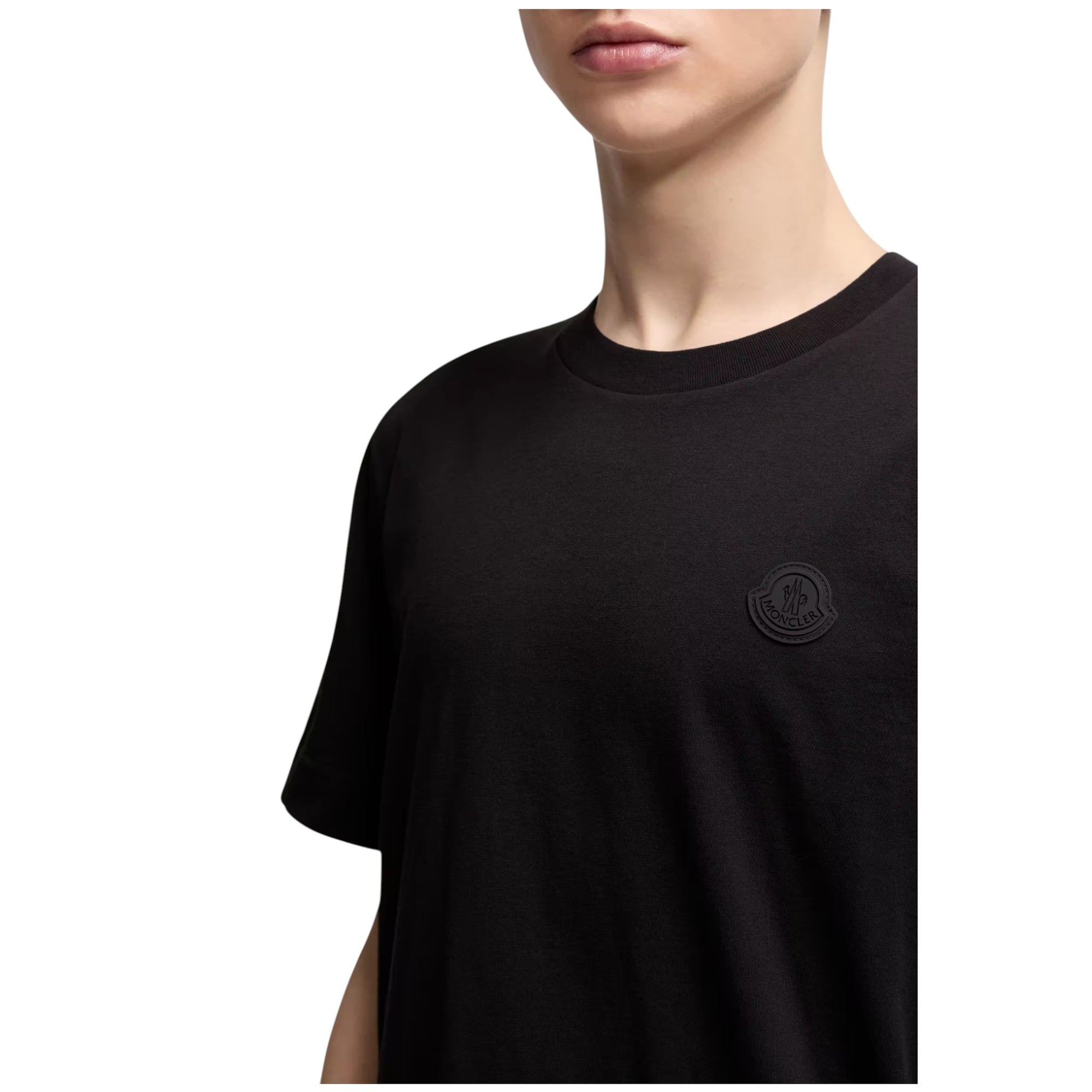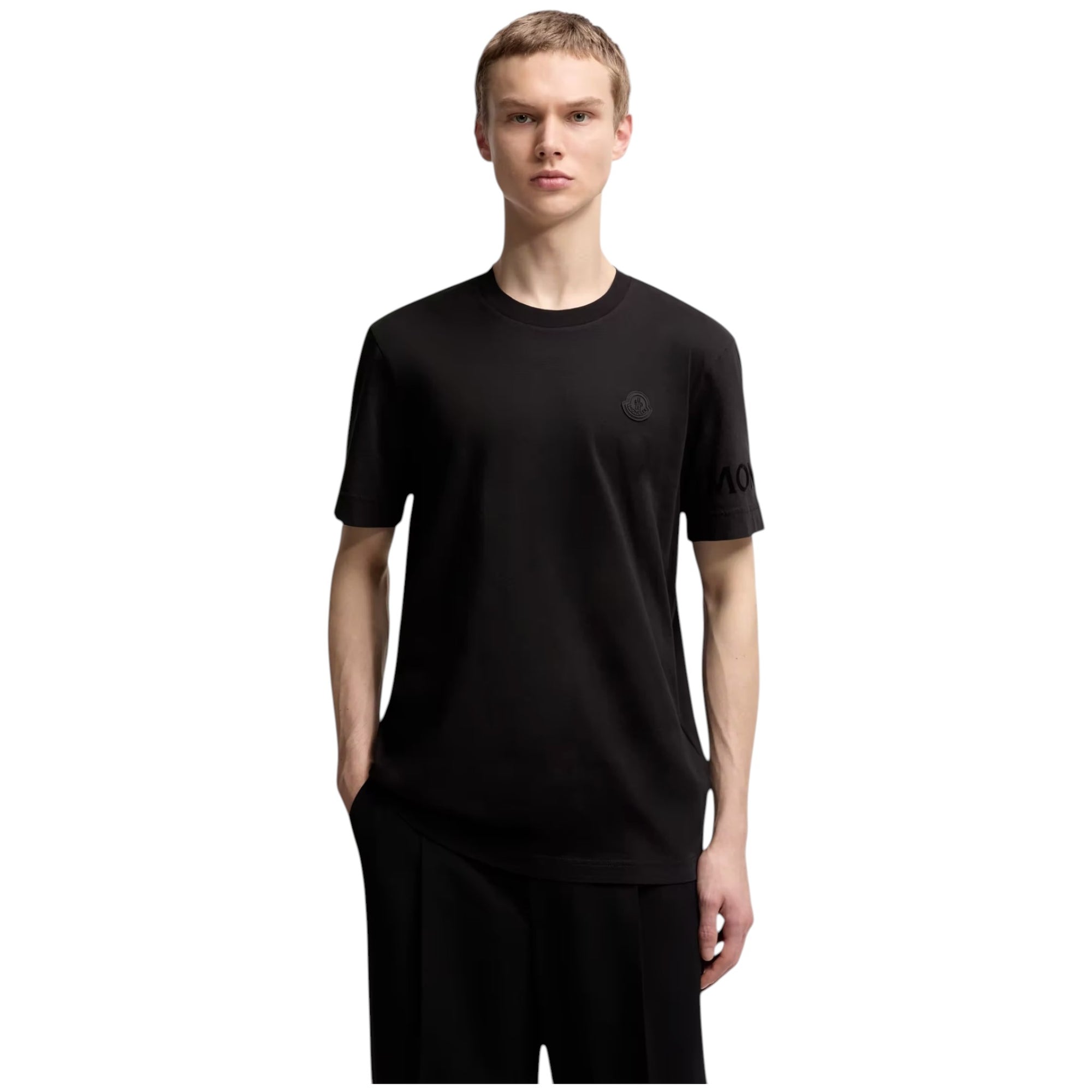 Med sin klassiske crew neck, korte ærmer og regular fit får du en stilren basis-T-shirt, der er nem at kombinere med alt fra jeans til shorts og sweatpants. De diskrete Moncler logo-detaljer giver et eksklusivt touch uden at dominere designet – perfekt til dig, der foretrækker et rent, luksuriøst look.