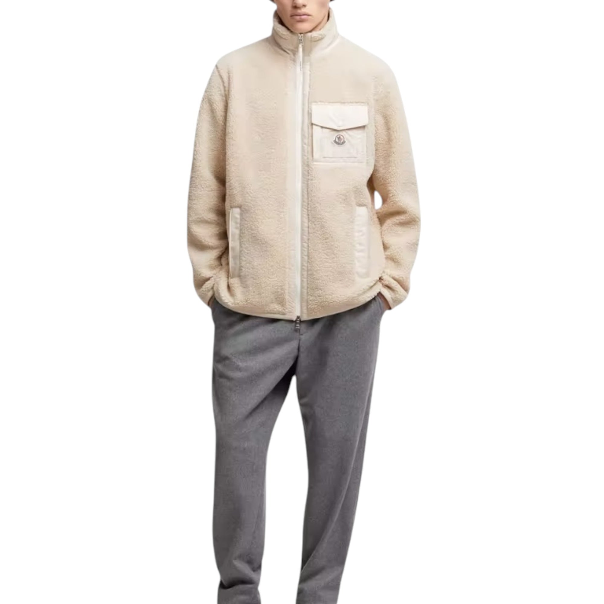 Teddy Zip-Up Sweatshirt med Lomme – Lysebeige Fleecejakke til Herre