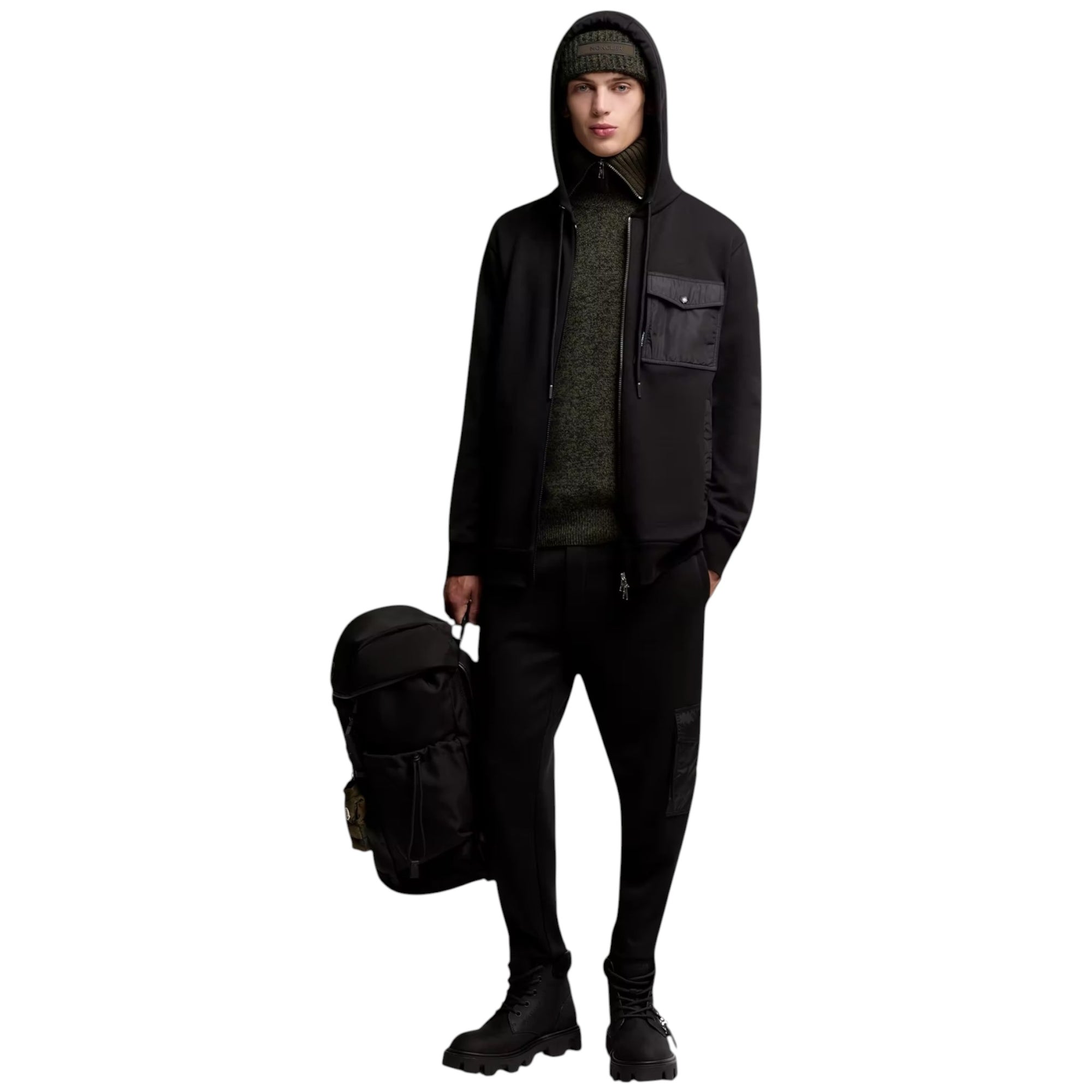 Cotton Blend Zip-Up Hoodie med Lomme – Sort