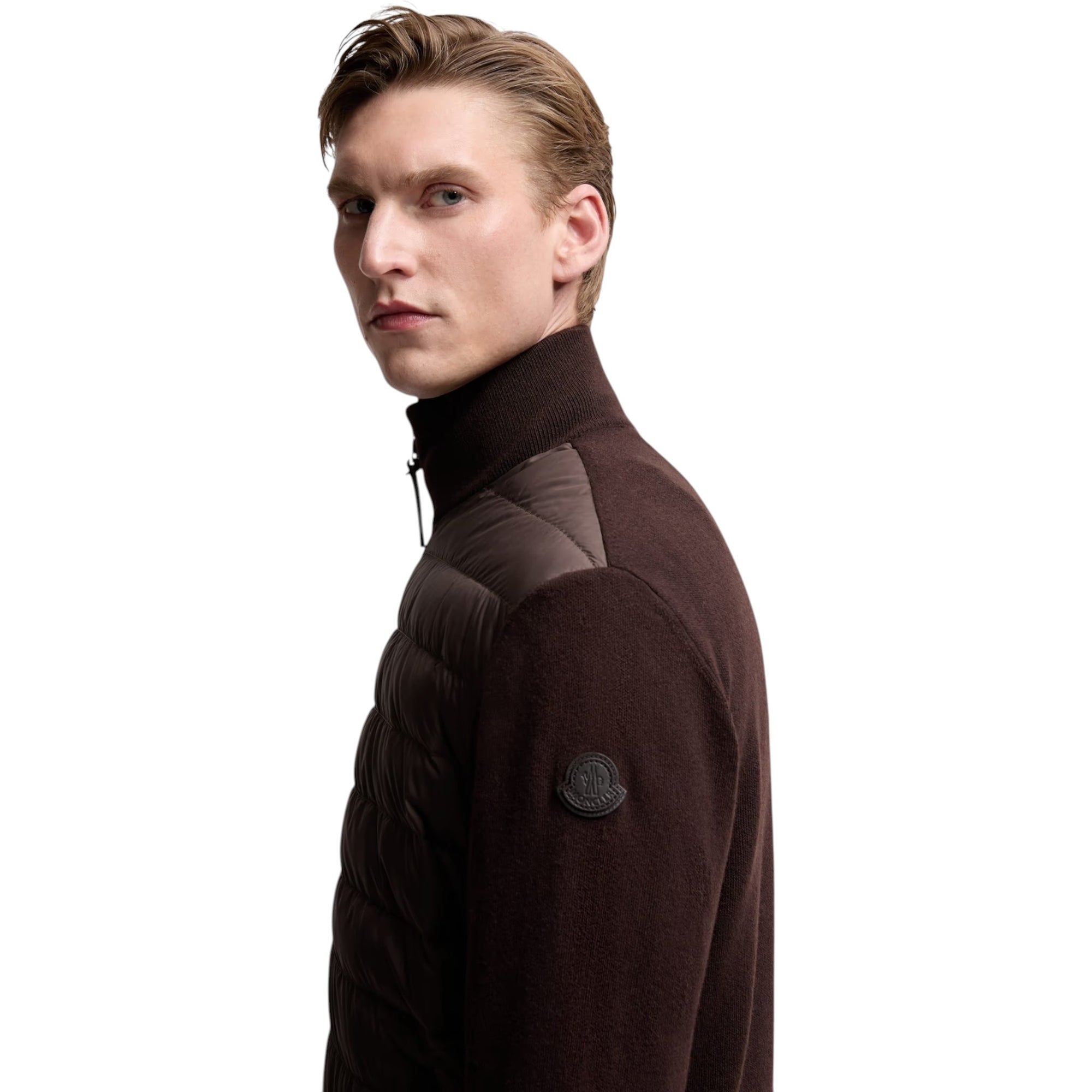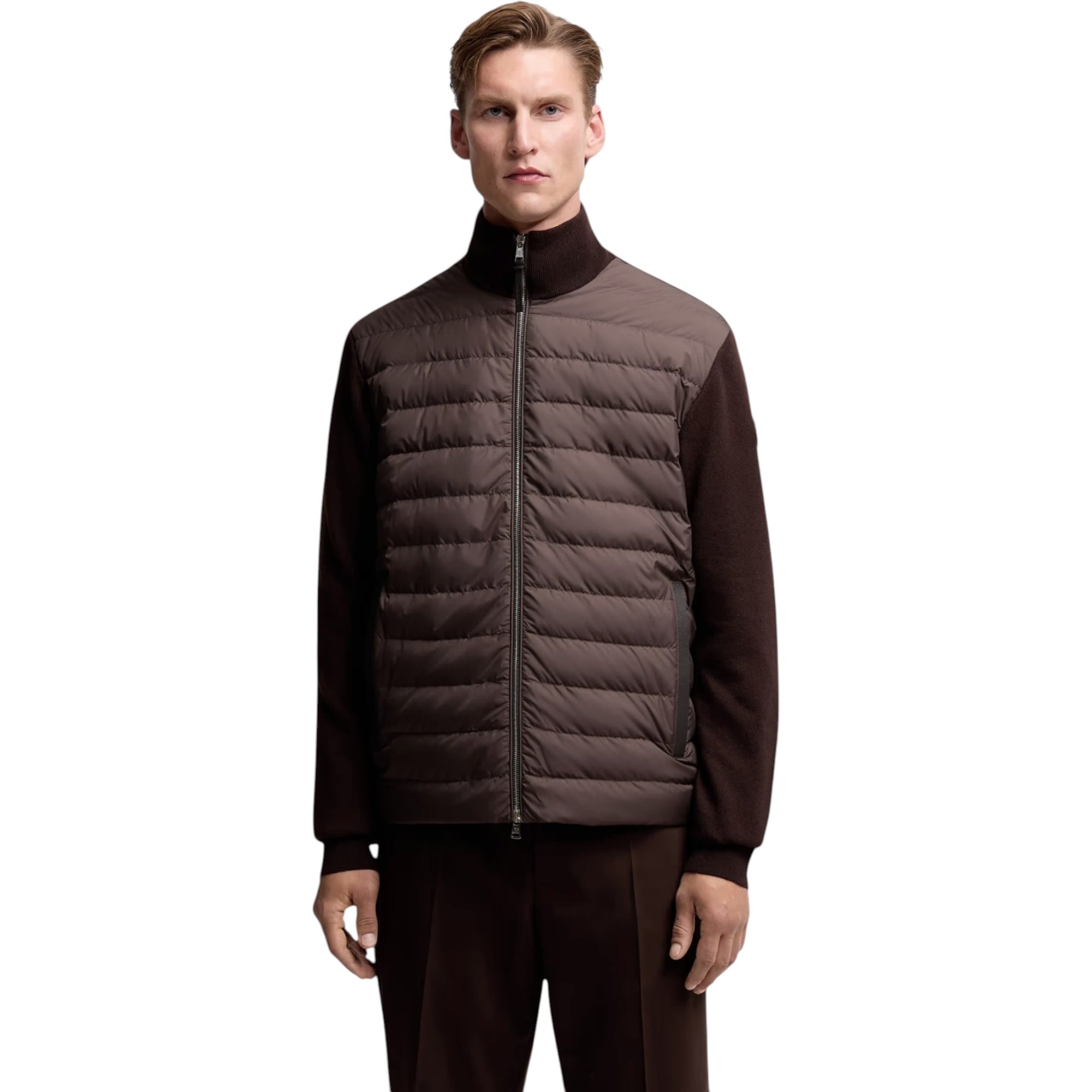 Padded Wool & Cashmere Zip-Up Cardigan Brun – Eksklusiv og Varm Hybrid-Cardigan til Mænd