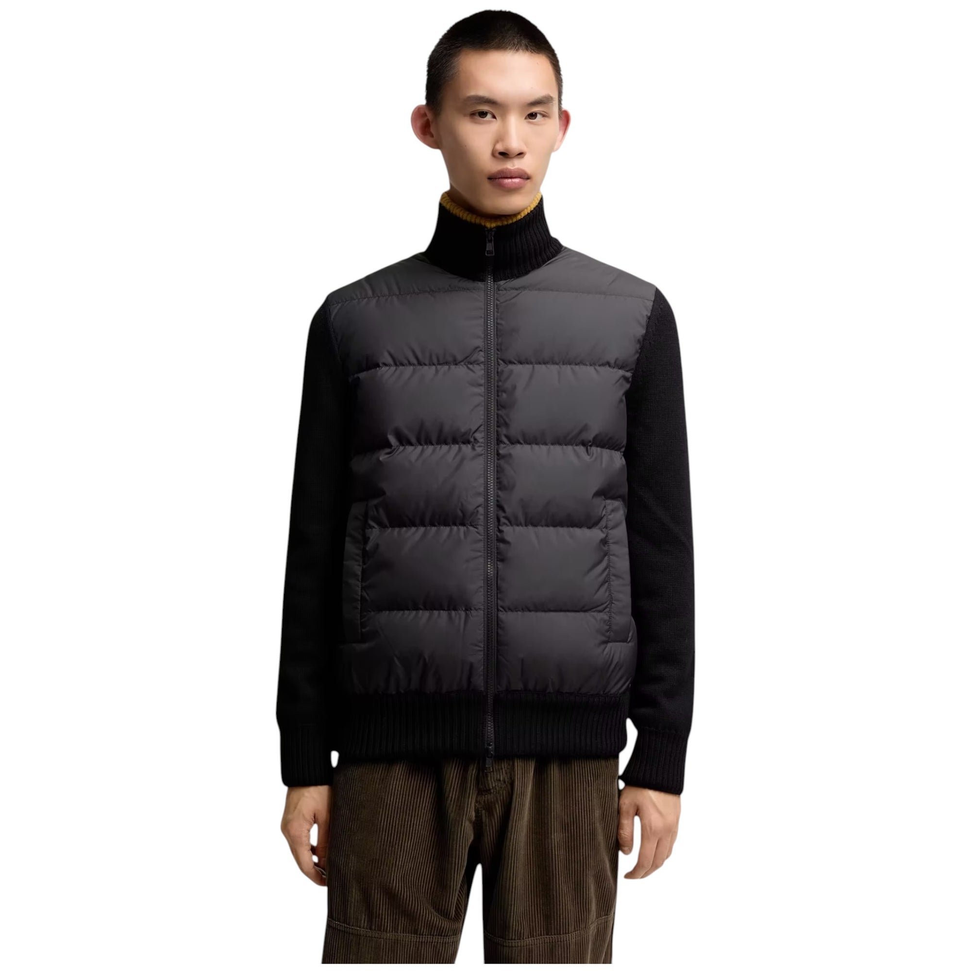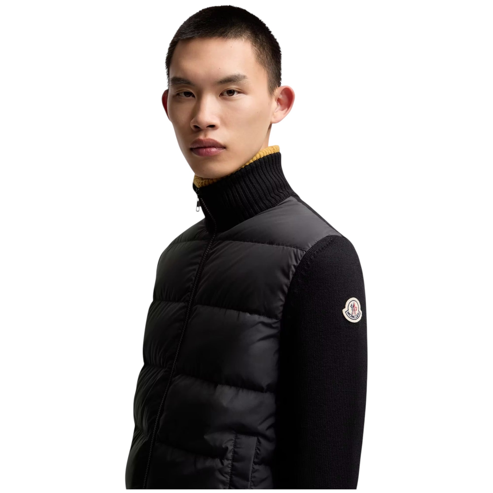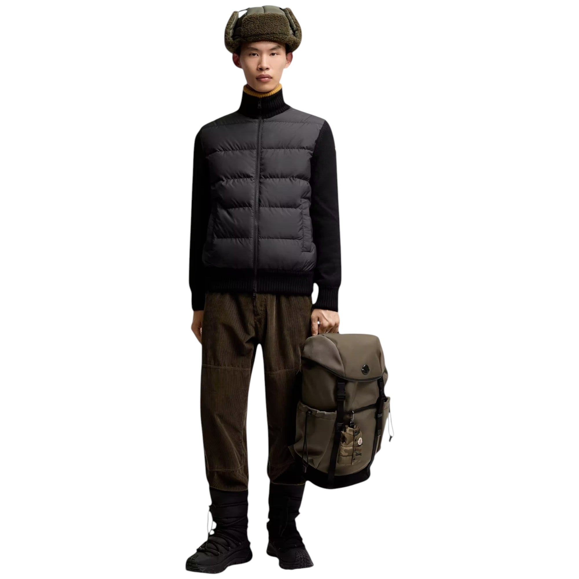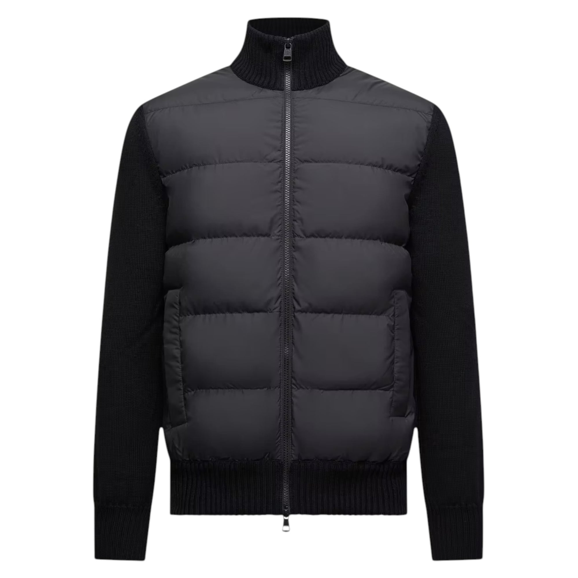 Padded Wool Zip-Up Cardigan Sort – Eksklusiv Uldcardigan med Dunsyning til Mænd