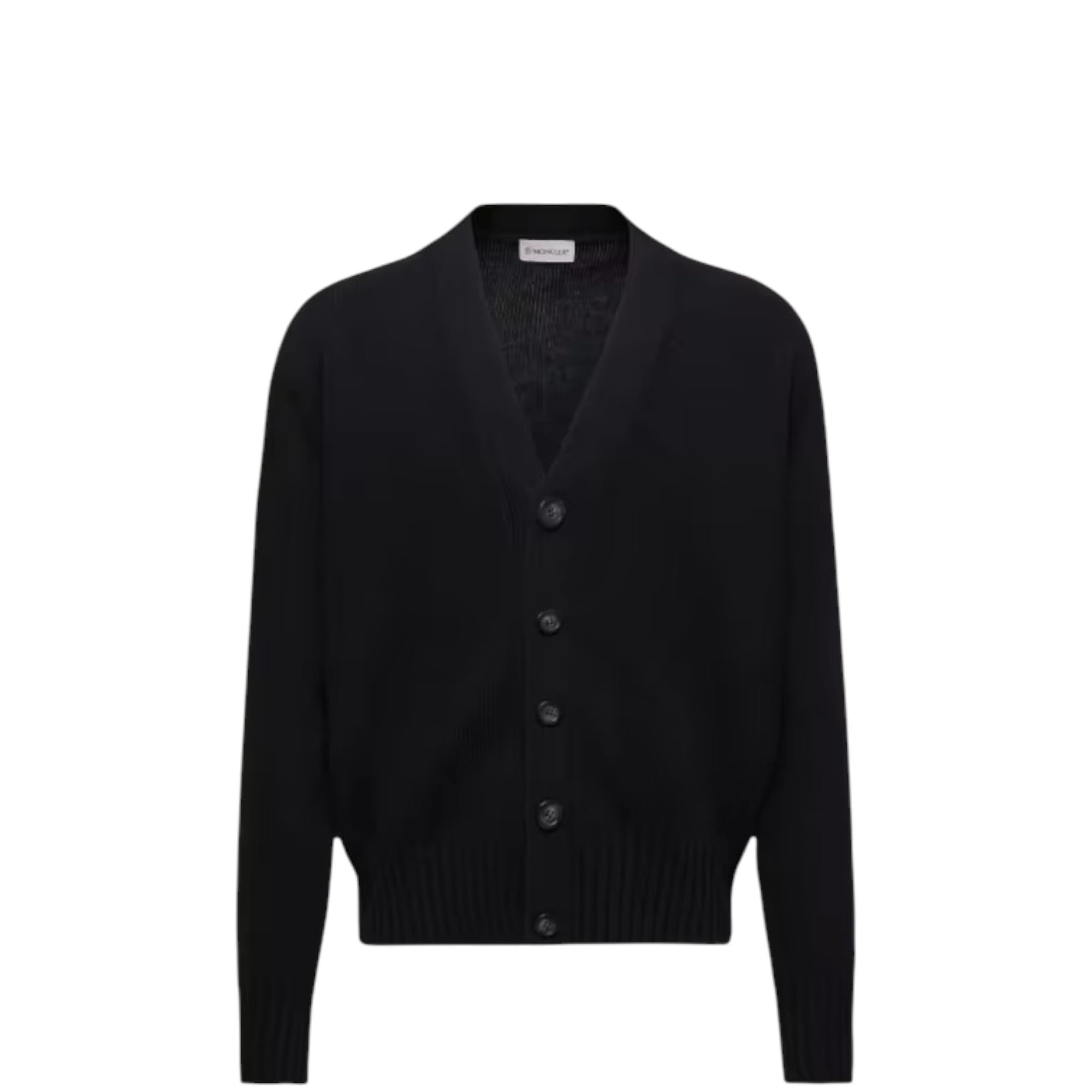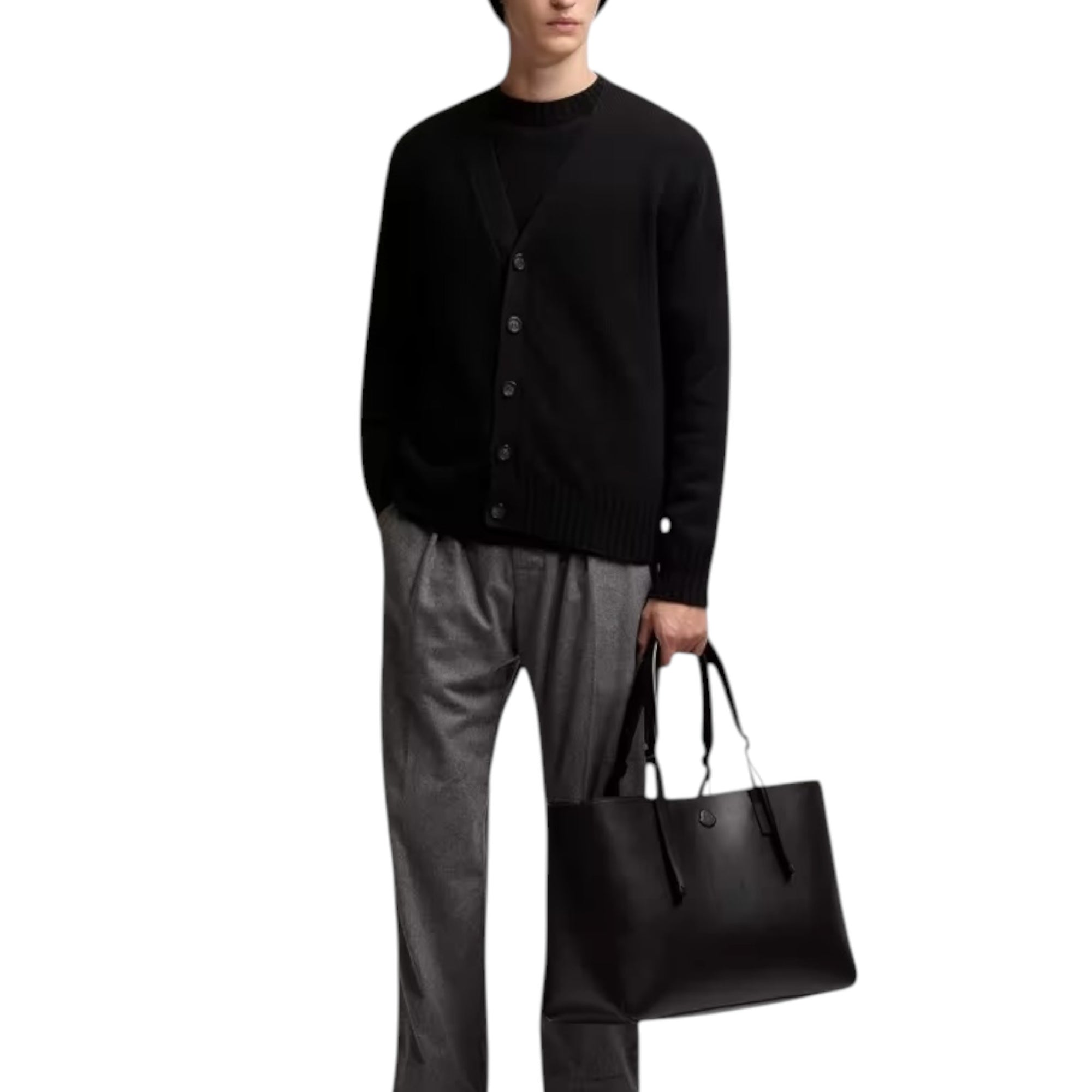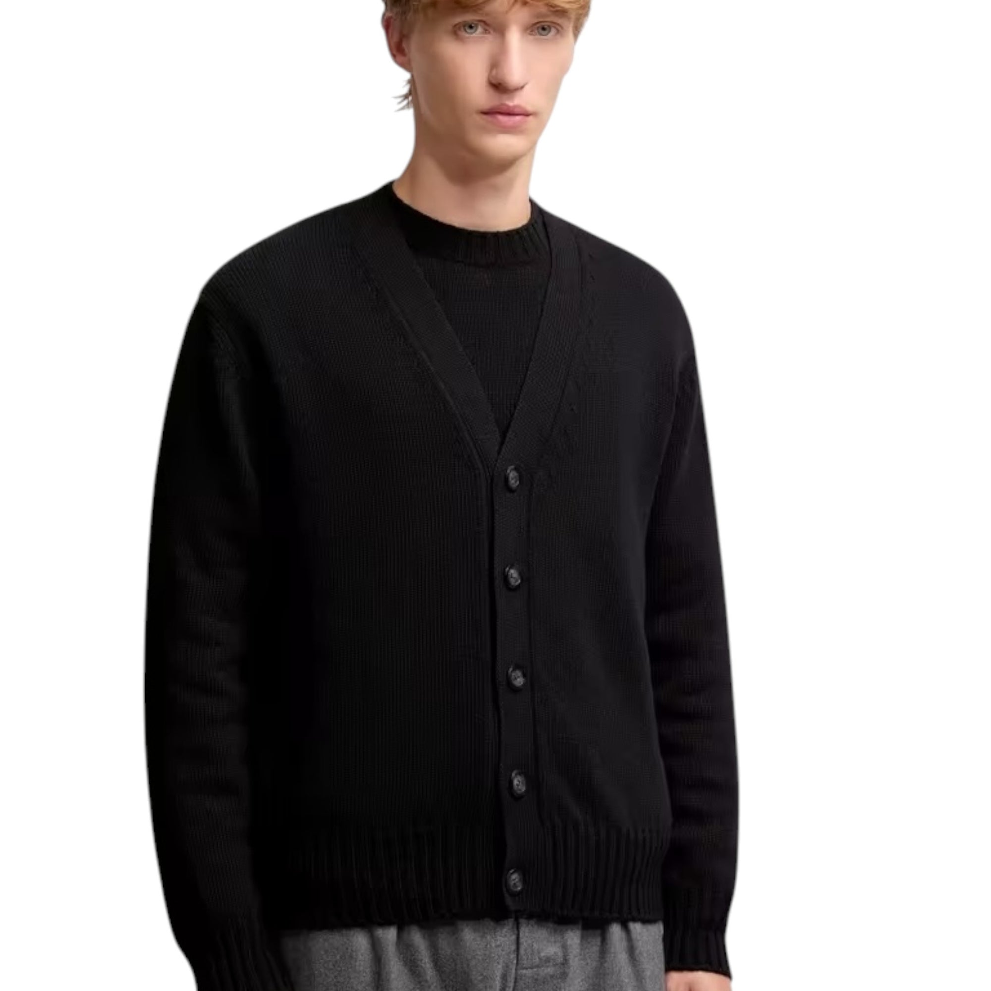 V-Neck Wool Cardigan Sort – Klassisk Cardigan i Ren Uld til Herre