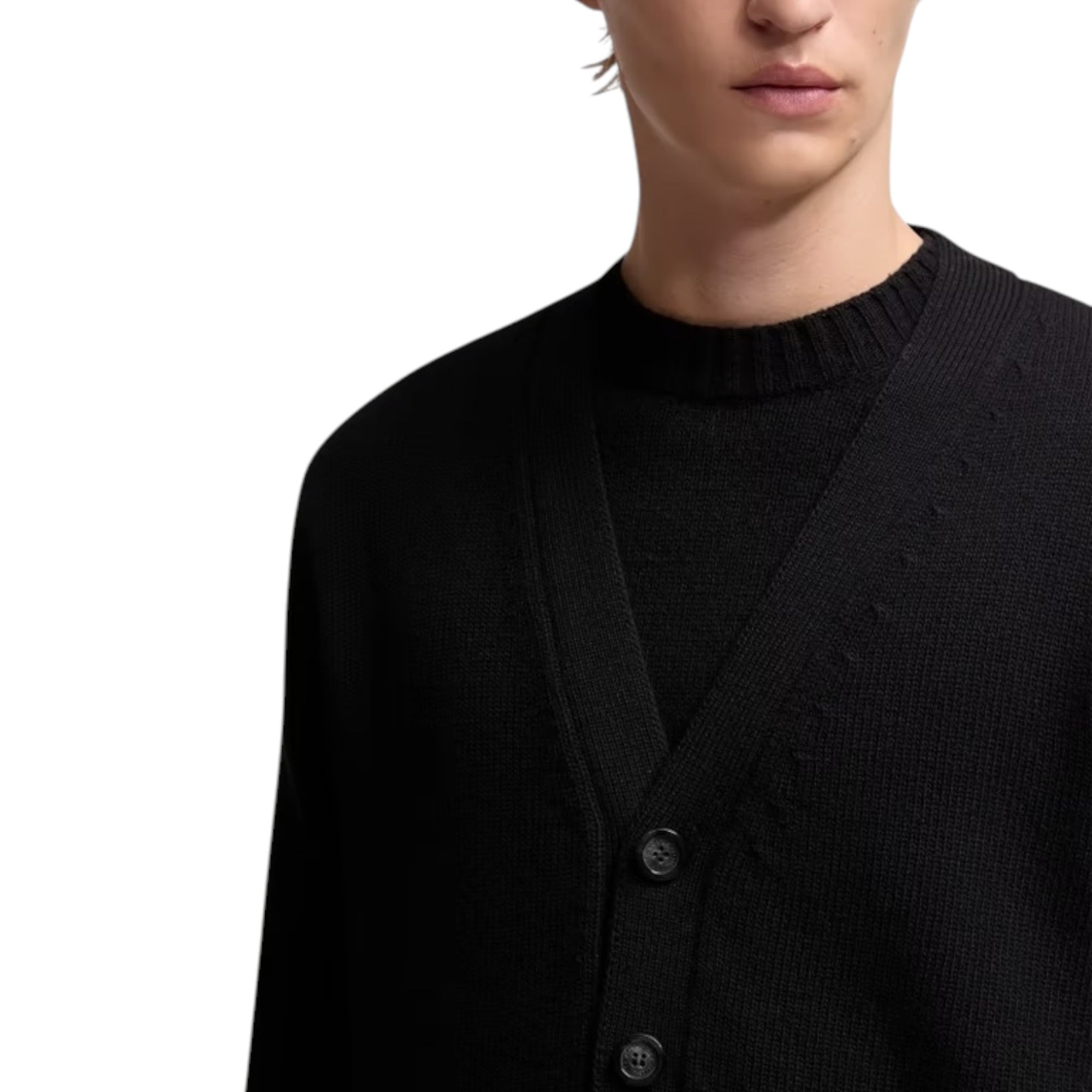 Den sorte farve og klassiske snit gør denne cardigan til en must-have i enhver mands basisgarderobe. Den fungerer lige godt til kontoret, weekendbrug eller lag-på-lag styling i de kolde måneder. Et stilrent valg med lang levetid – både i kvalitet og æstetik.