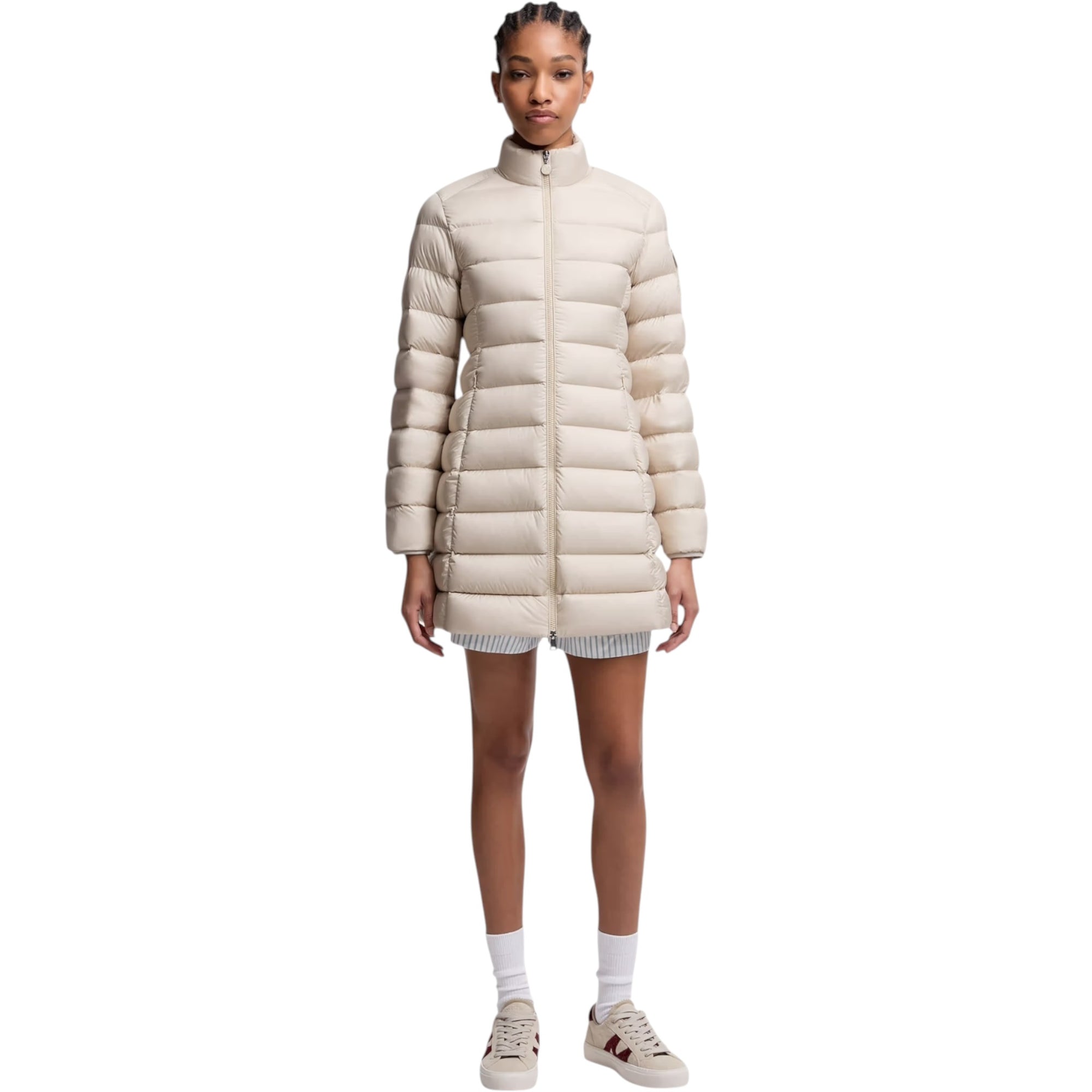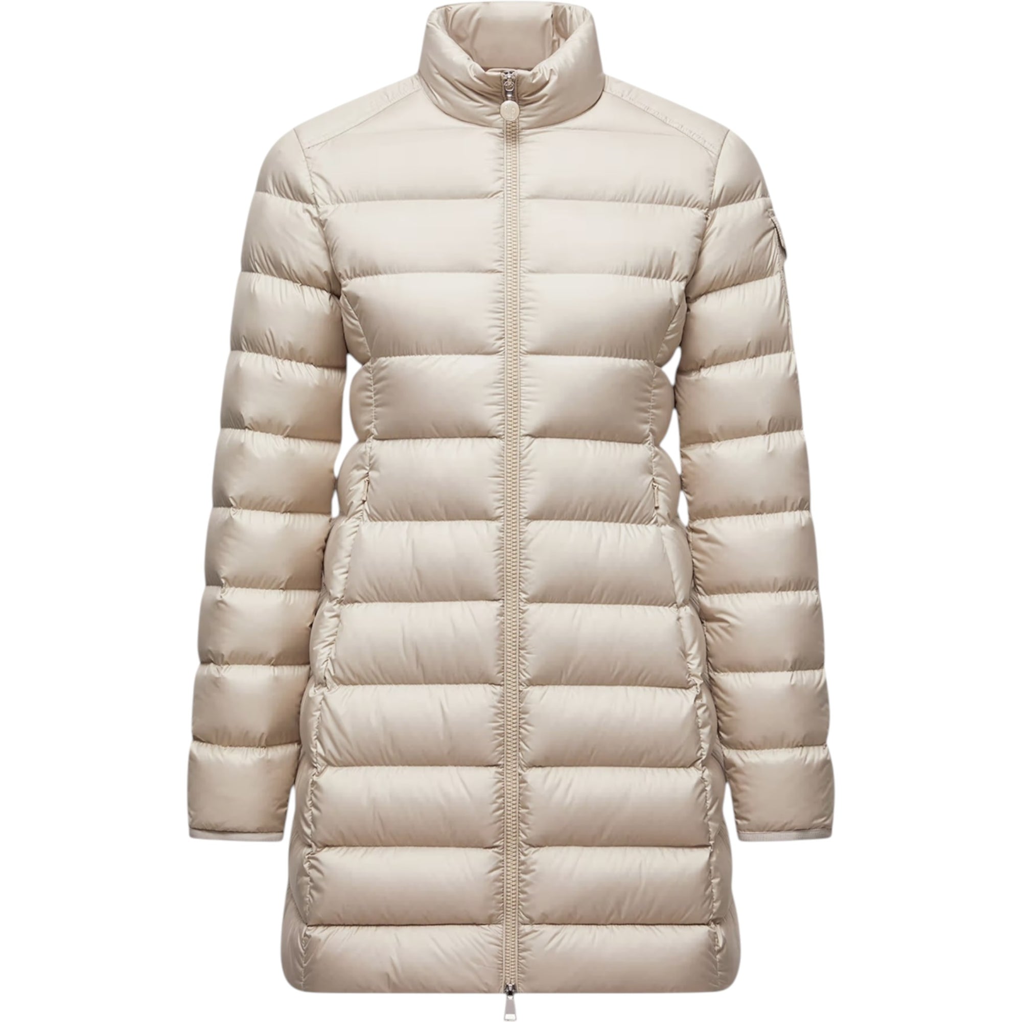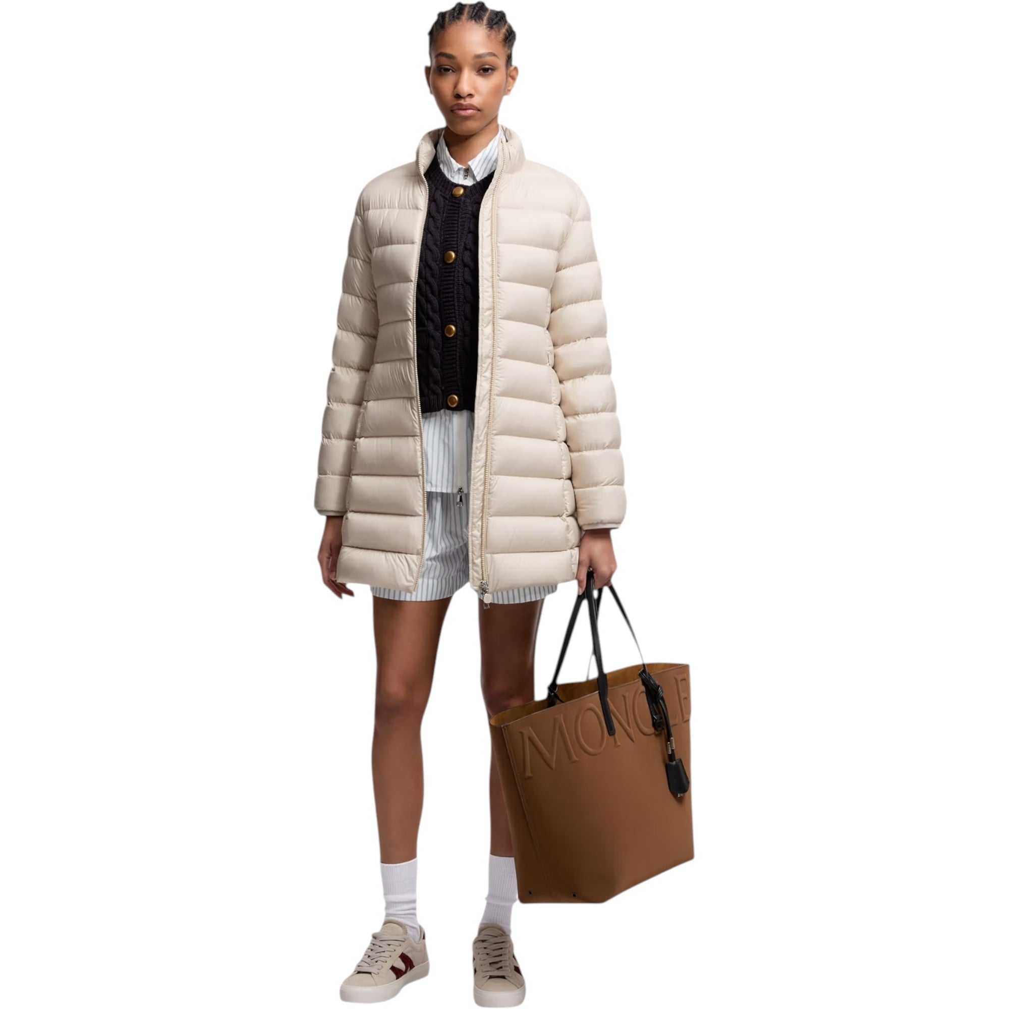 Igesse Mid-Length Down Jacket Lys Beige – Feminin silhuet med maksimal varme Igesse Mid-Length Down Jacket i lys beige forener elegant design og funktionel varme i en vinterjakke skabt til stilbevidste kvinder. Med sin figursyede pasform og satinlignende finish, giver denne dunjakke et sofistikeret og let udtryk – uden at gå på kompromis med komfort og funktion. Tidløs jakke med moderne detaljer Jakken har den klassiske Moncler boudin-quiltning, men med en fit & flare-silhuet, der fremhæver taljen og skaber en feminin form. Fremstillet i mikrofiber med blød glans, kombinerer den et eksklusivt look med praktiske detaljer som sidelommer med lynlås og en ikonisk ærmelomme inspireret af Moncler Maya. Produktdetaljer: Fremstillet i let mikrofiber med satinlignende finish Mikrofiberfoer og fyldt med høj kvalitet 90% dun / 10% fjer Klassisk boudin-quiltet design Lynlåslukning i front Praktiske sidelommer med lynlås Ærmelomme med trykknap – ikonisk Moncler-detalje Farve: Lys Beige Længde fra krave til kant: 85 cm Pasform og størrelse: Modellen er 179 cm høj og bærer størrelse 0 Slim fit – fremhæver figuren uden at stramme Perfekt længde til både hverdagsbrug og mere formelle looks Materialesammensætning: Ydermateriale: 100% Polyester Foer: 100% Polyester Fyld: 90% Dun, 10% Fjer Derfor skal du vælge Igesse Mid-Length Down Jacket i lys beige: Feminin og figursyet silhuet med elegant finish Let, men varm – ideel til vinter og kolde overgangsperioder Eksklusive materialer og ikoniske Moncler-detaljer Lys beige farve – elegant og let at kombinere med både lyse og mørke nuancer Praktiske lommer og gennemført komfort