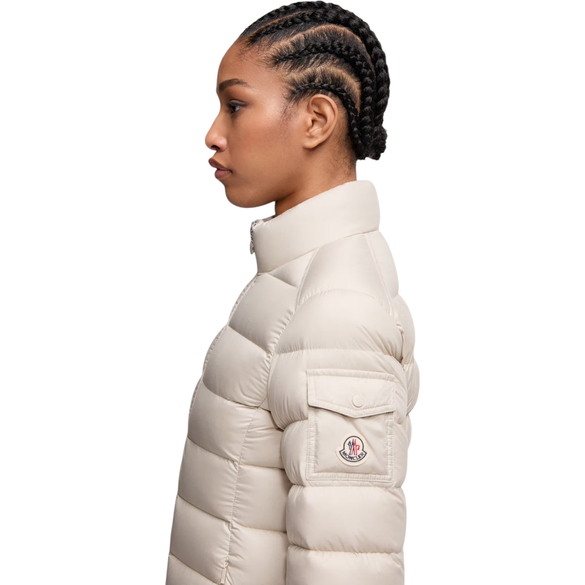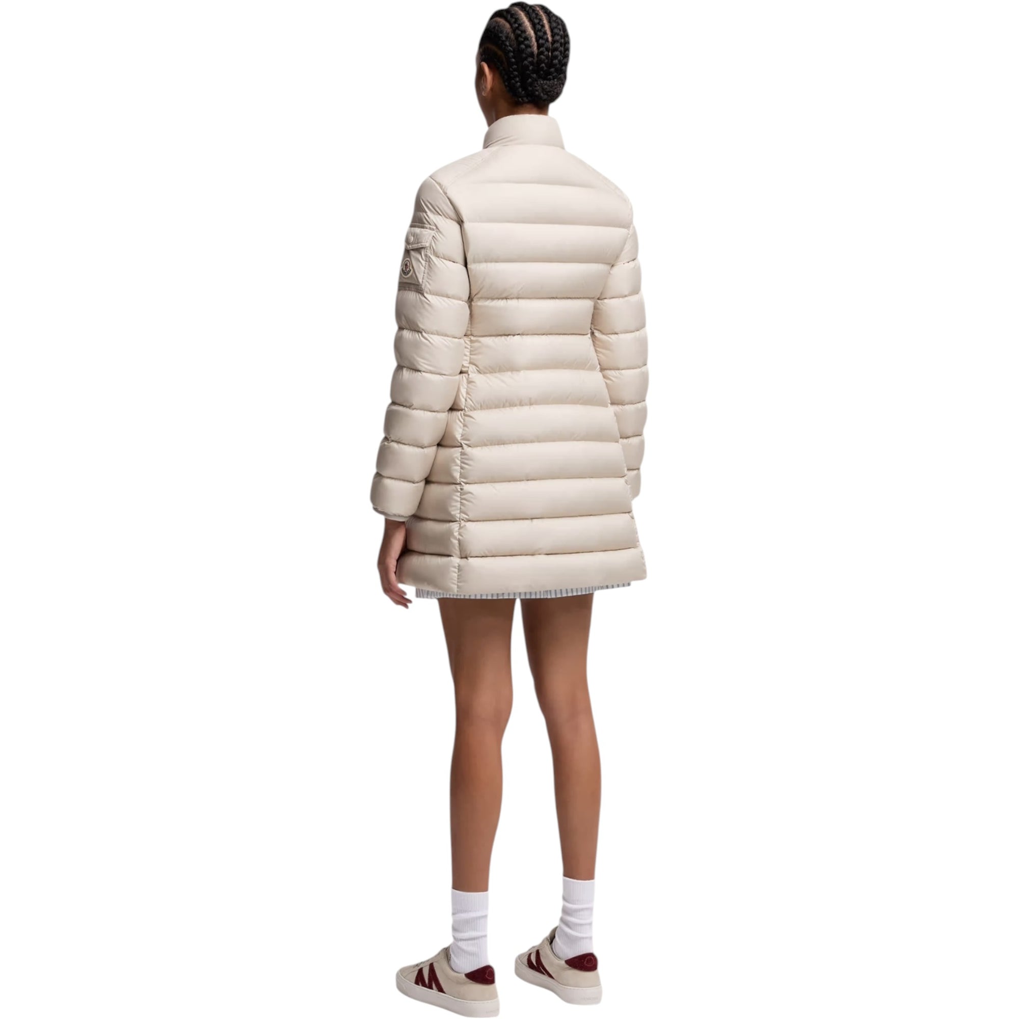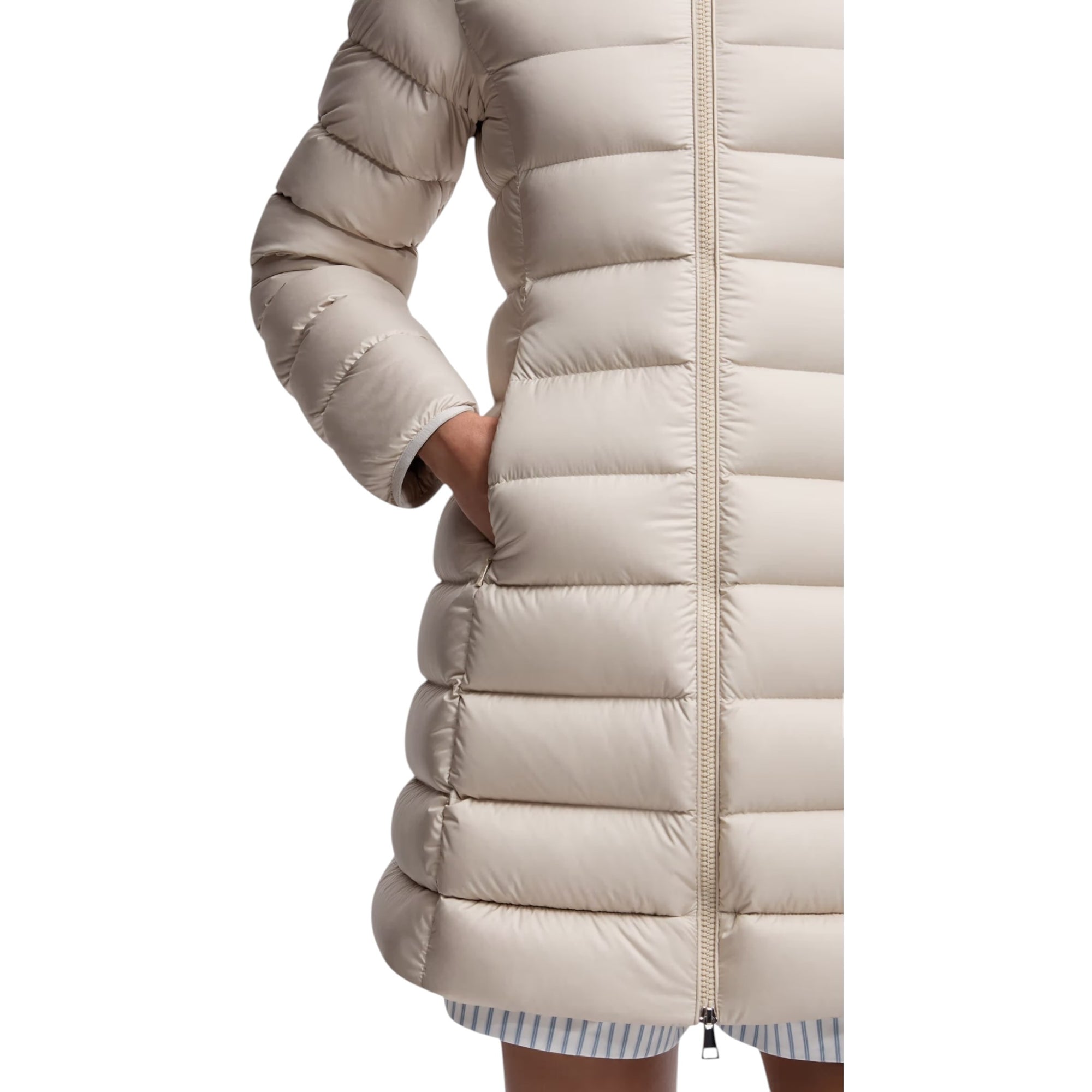 Igesse Mid-Length Down Jacket Lys Beige – Feminin silhuet med maksimal varme Igesse Mid-Length Down Jacket i lys beige forener elegant design og funktionel varme i en vinterjakke skabt til stilbevidste kvinder. Med sin figursyede pasform og satinlignende finish, giver denne dunjakke et sofistikeret og let udtryk – uden at gå på kompromis med komfort og funktion. Tidløs jakke med moderne detaljer Jakken har den klassiske Moncler boudin-quiltning, men med en fit & flare-silhuet, der fremhæver taljen og skaber en feminin form. Fremstillet i mikrofiber med blød glans, kombinerer den et eksklusivt look med praktiske detaljer som sidelommer med lynlås og en ikonisk ærmelomme inspireret af Moncler Maya. Produktdetaljer: Fremstillet i let mikrofiber med satinlignende finish Mikrofiberfoer og fyldt med høj kvalitet 90% dun / 10% fjer Klassisk boudin-quiltet design Lynlåslukning i front Praktiske sidelommer med lynlås Ærmelomme med trykknap – ikonisk Moncler-detalje Farve: Lys Beige Længde fra krave til kant: 85 cm Pasform og størrelse: Modellen er 179 cm høj og bærer størrelse 0 Slim fit – fremhæver figuren uden at stramme Perfekt længde til både hverdagsbrug og mere formelle looks Materialesammensætning: Ydermateriale: 100% Polyester Foer: 100% Polyester Fyld: 90% Dun, 10% Fjer Derfor skal du vælge Igesse Mid-Length Down Jacket i lys beige: Feminin og figursyet silhuet med elegant finish Let, men varm – ideel til vinter og kolde overgangsperioder Eksklusive materialer og ikoniske Moncler-detaljer Lys beige farve – elegant og let at kombinere med både lyse og mørke nuancer Praktiske lommer og gennemført komfort