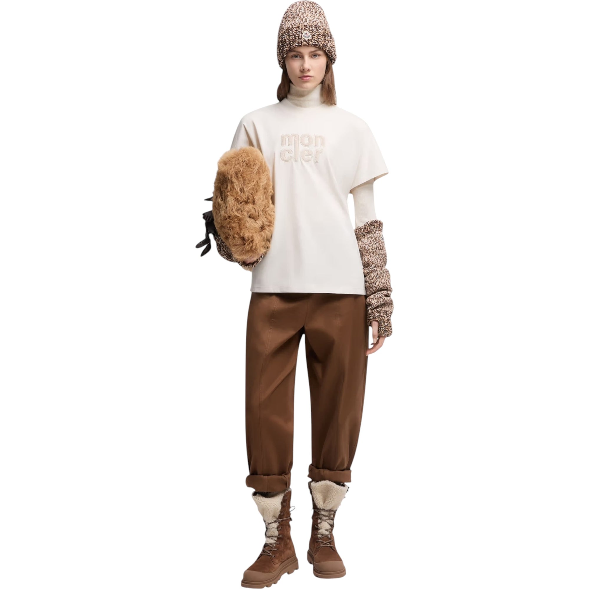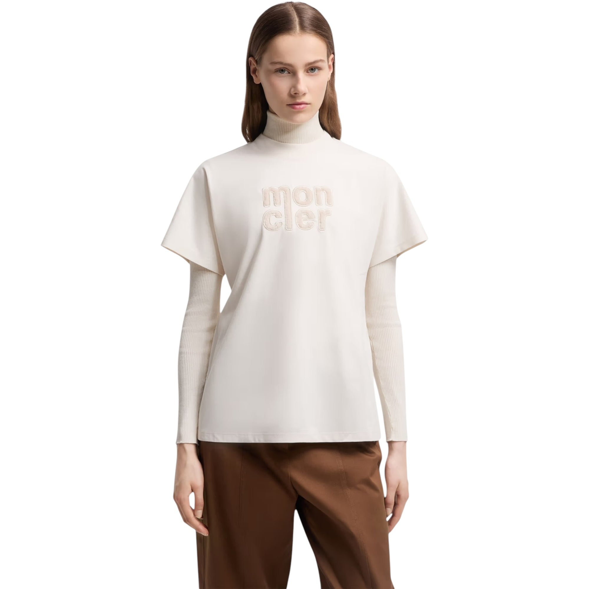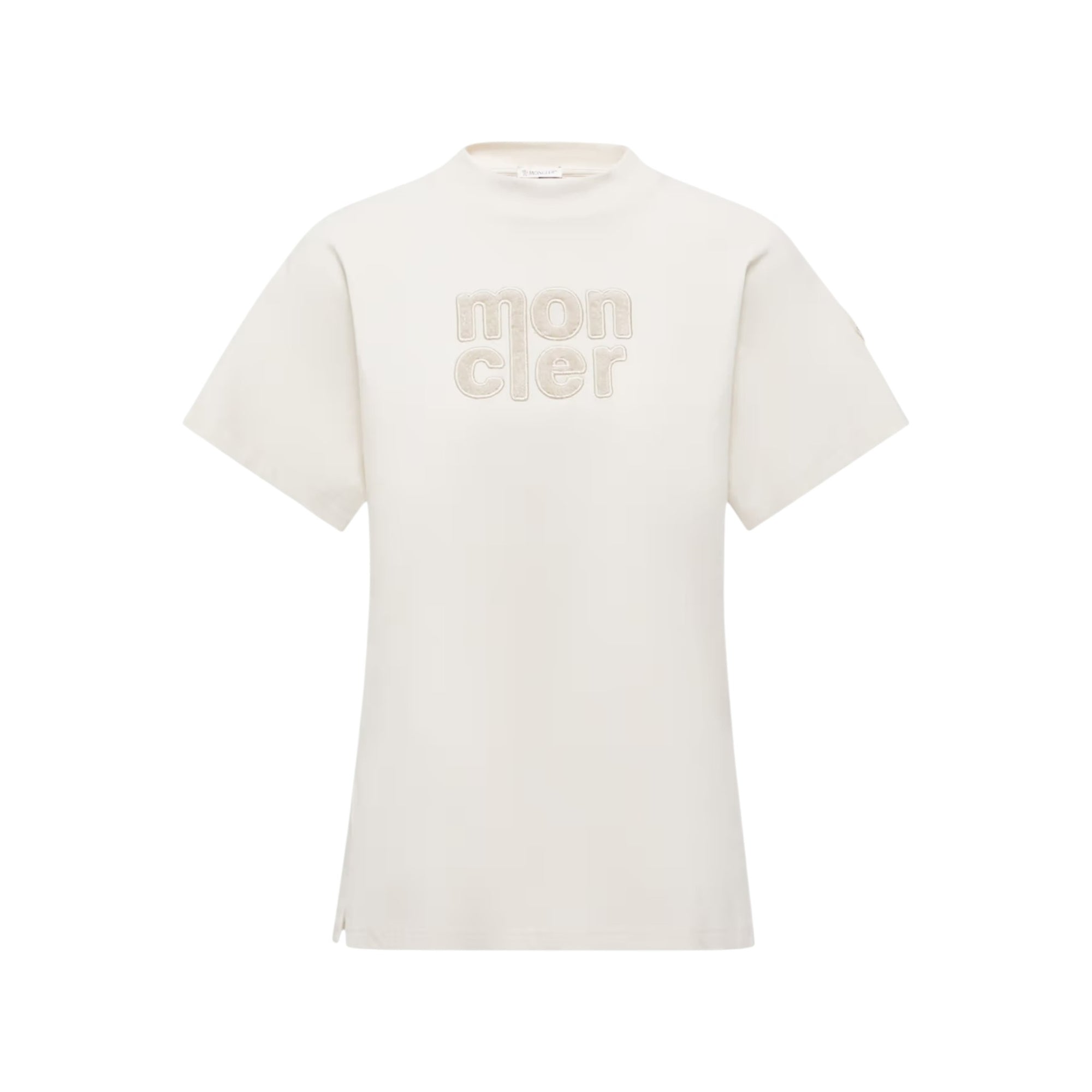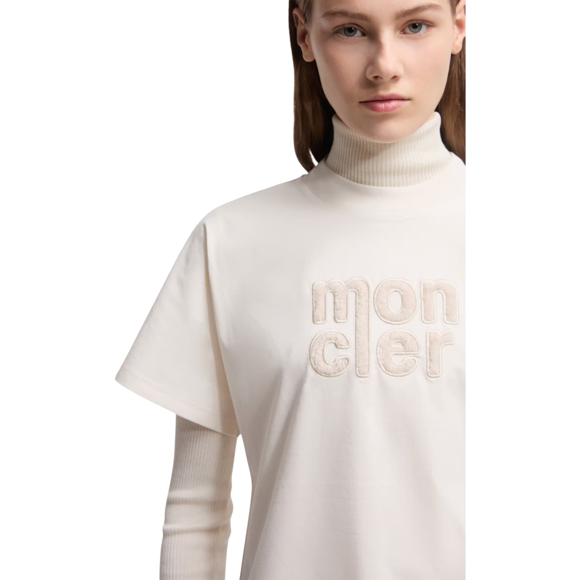 Tidløs stil med et eksklusivt twist – denne hvide t-shirt til kvinder kombinerer klassisk design med Monclers karakteristiske teddy-logo.