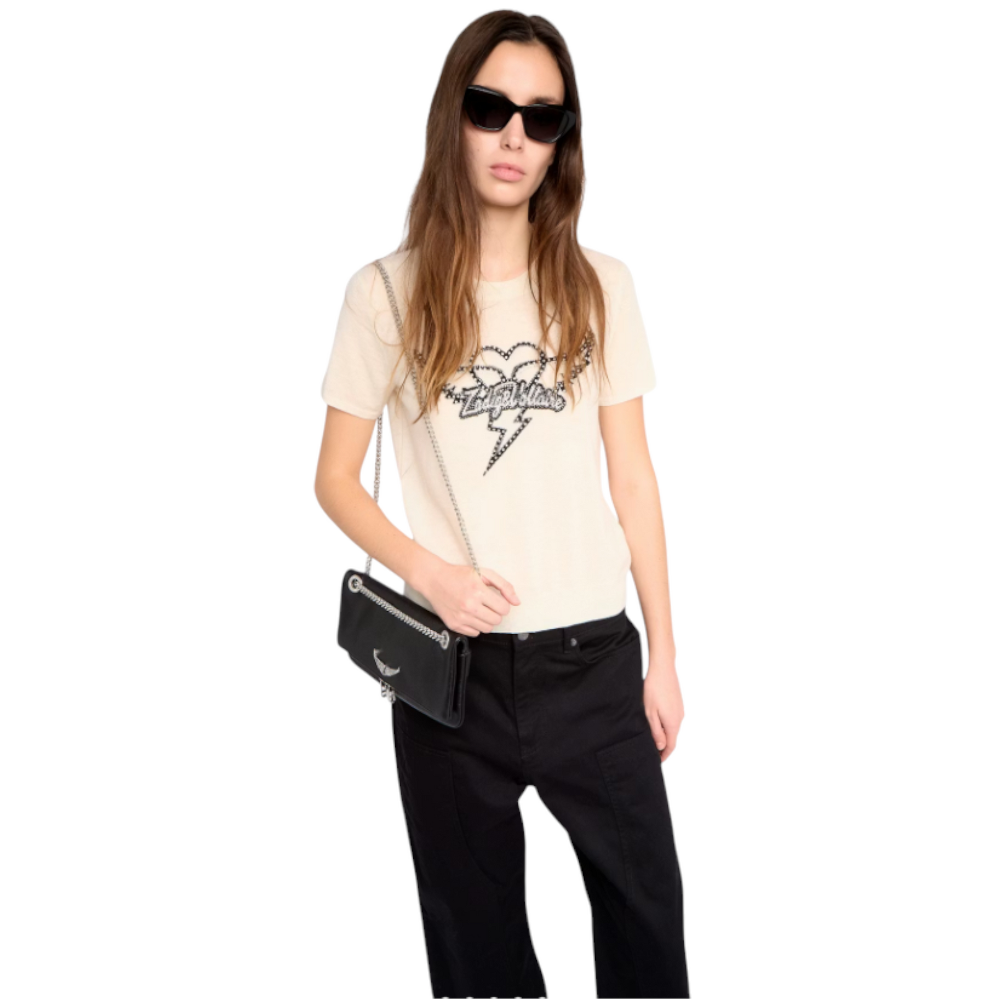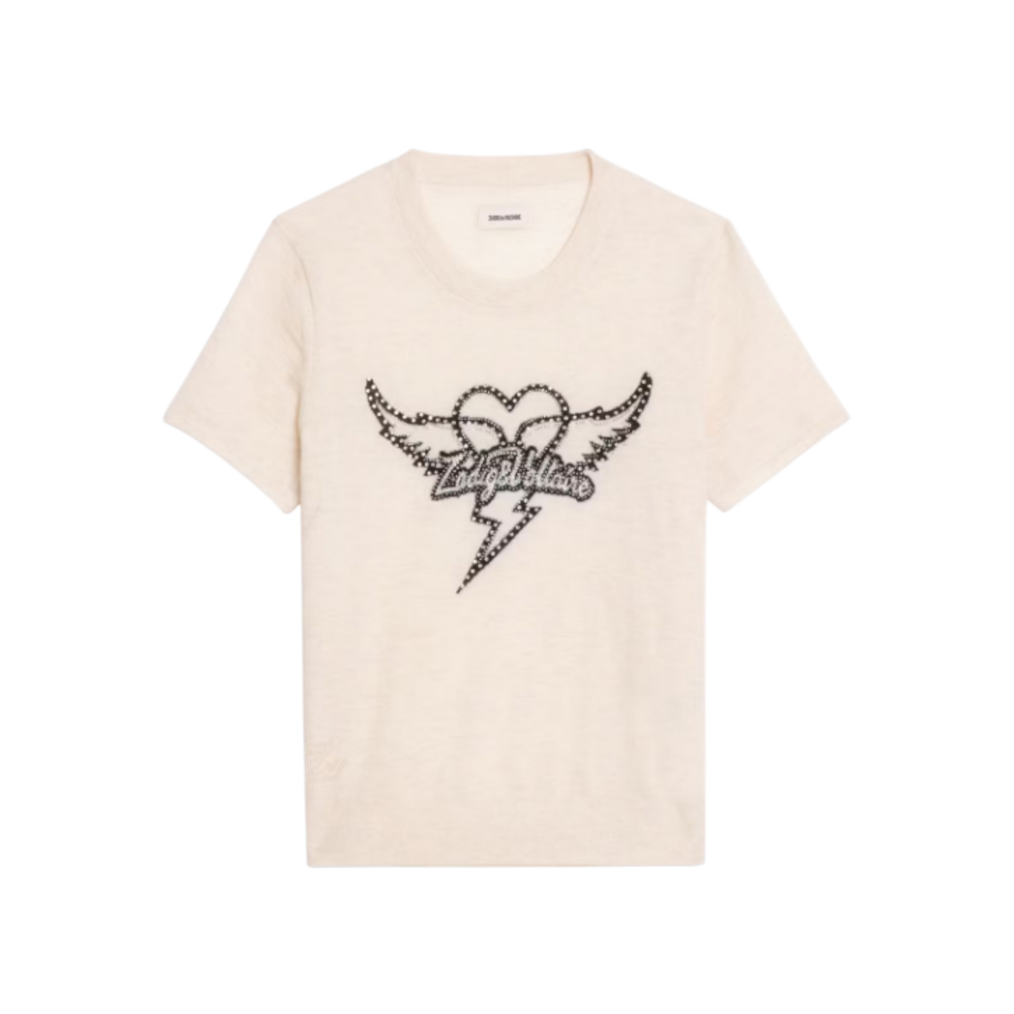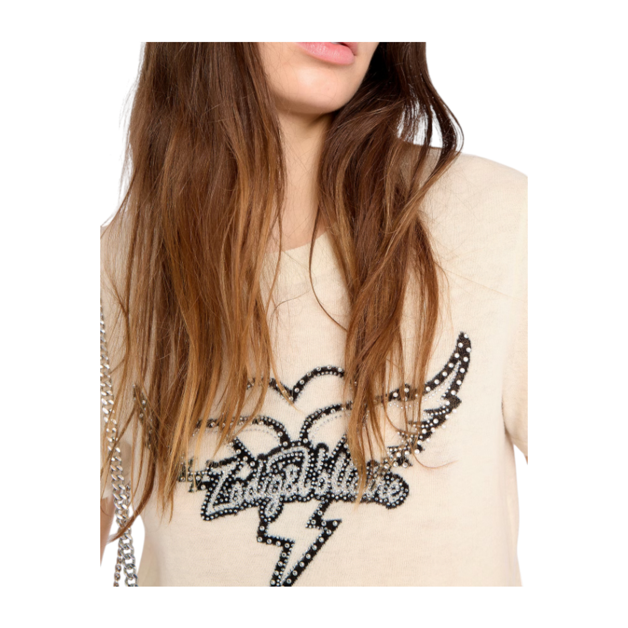 Idal Jumper i 100% cashmere. En kortærmet strik med rund hals, smukt intarsiamønster og fine rhinestones.