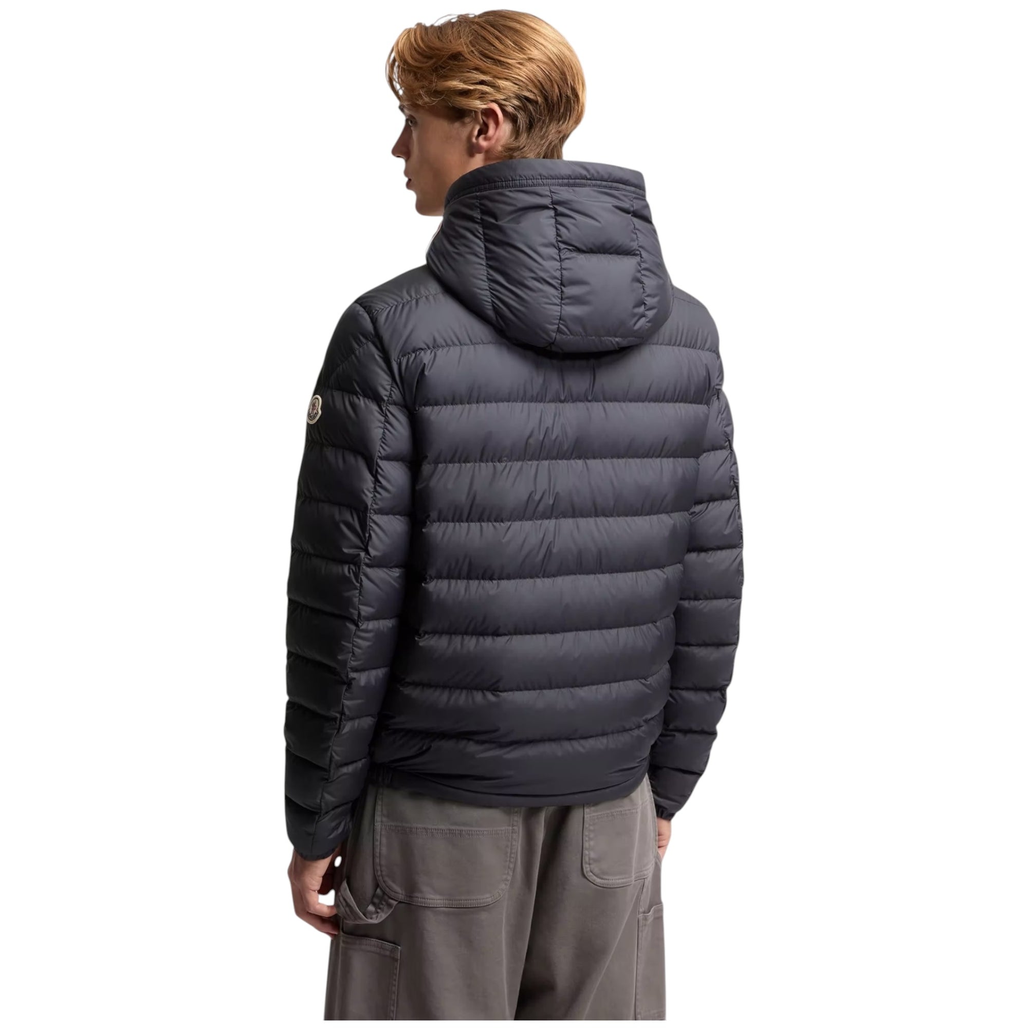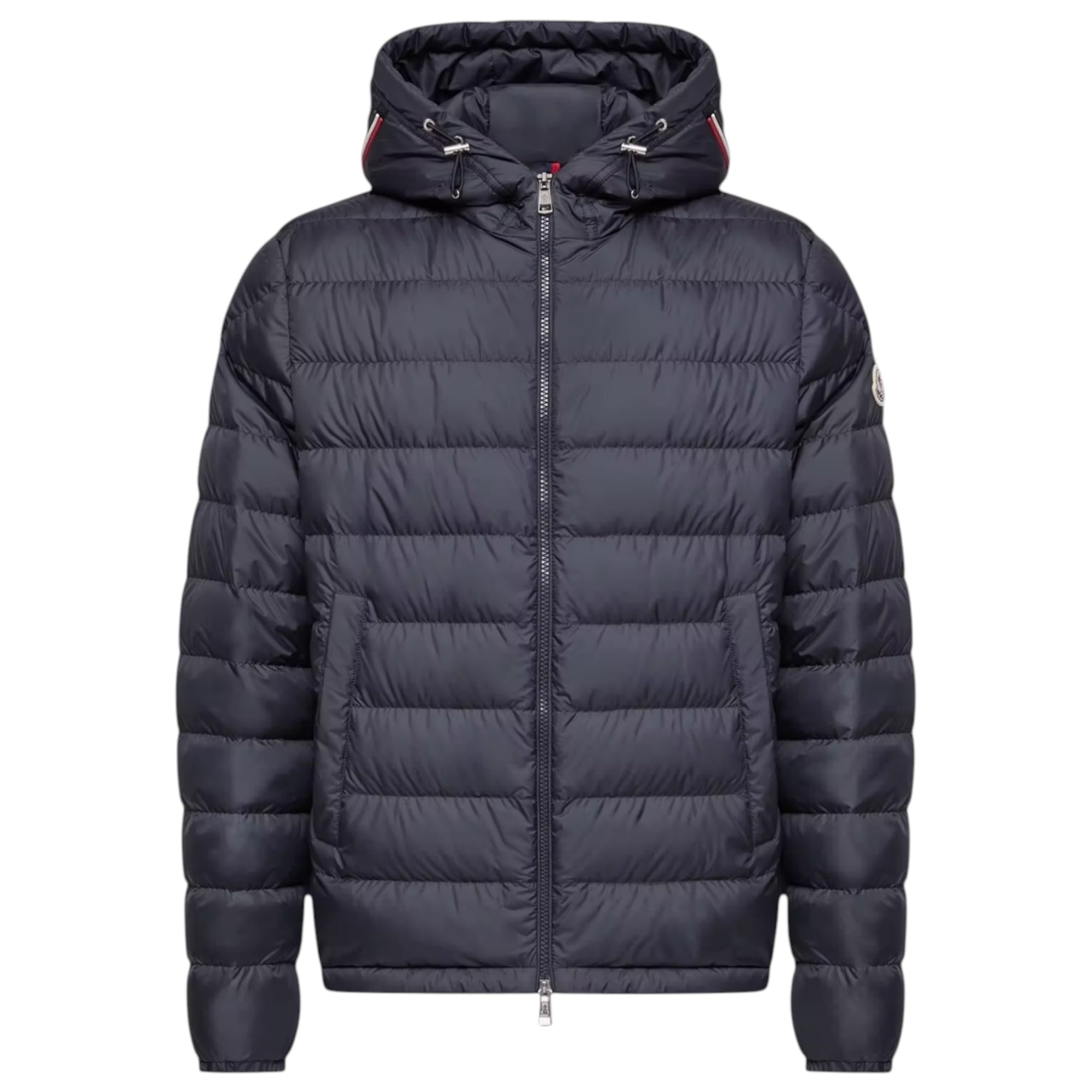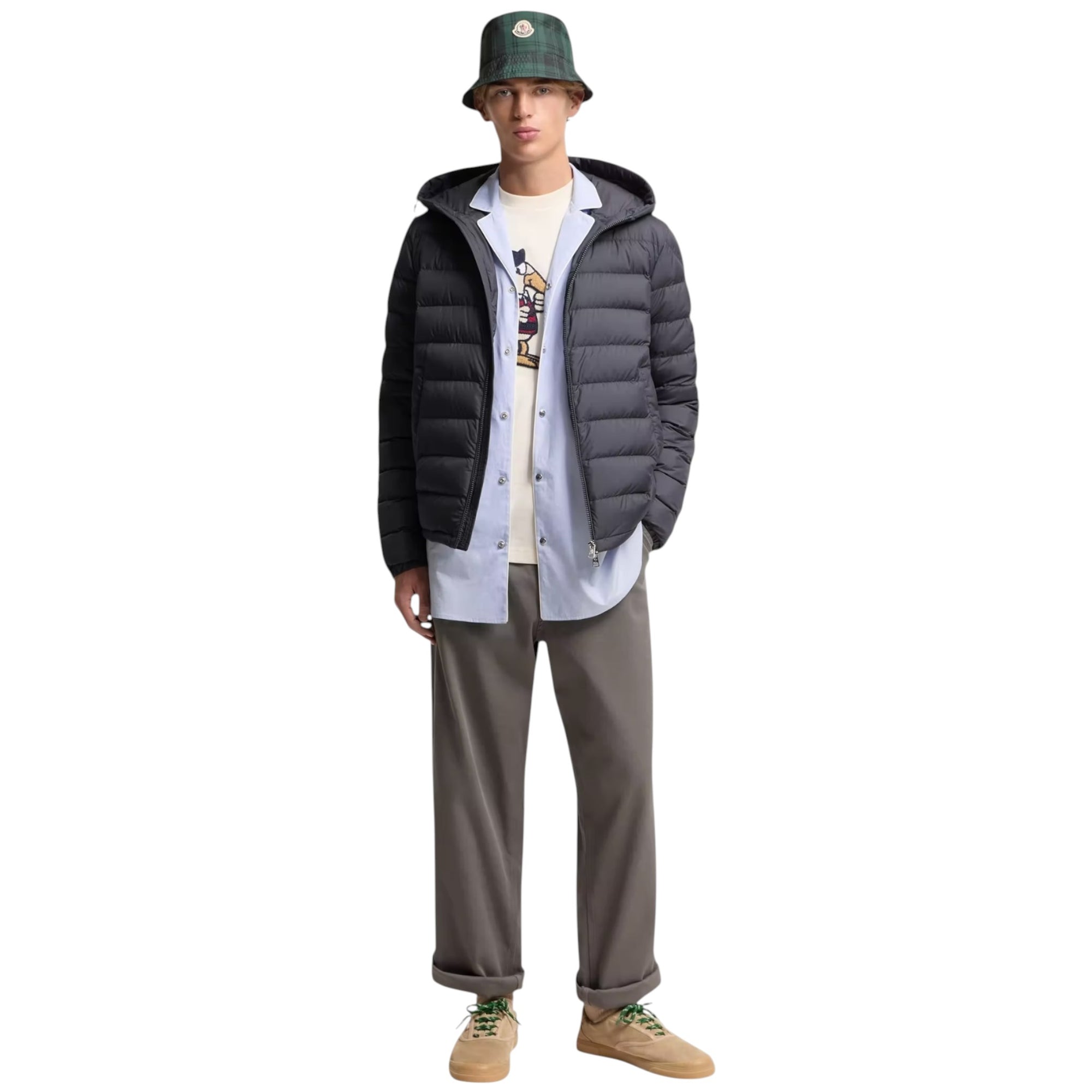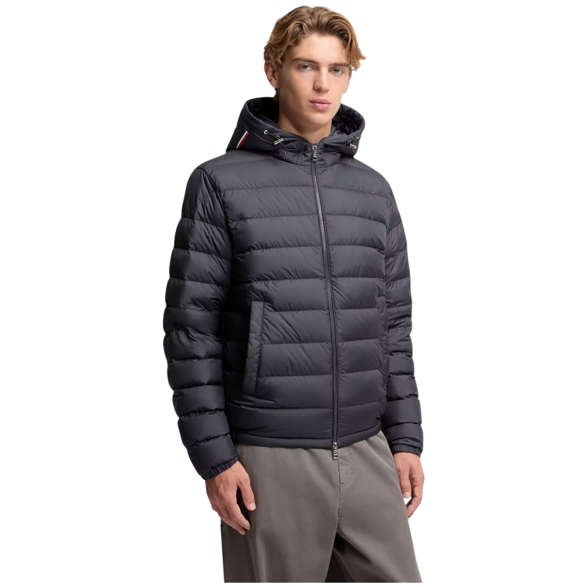 Den korte dunjakke er fremstillet i ultralet micro polyester, som giver en behagelig lethed uden at gå på kompromis med varme. Den er dunfyldt med 90% dun og 10% fjer, hvilket sikrer optimal isolering. Den justerbare hætte med diskret trikolore-detalje tilfører et stilrent udtryk og et subtilt nik til brandets arv.