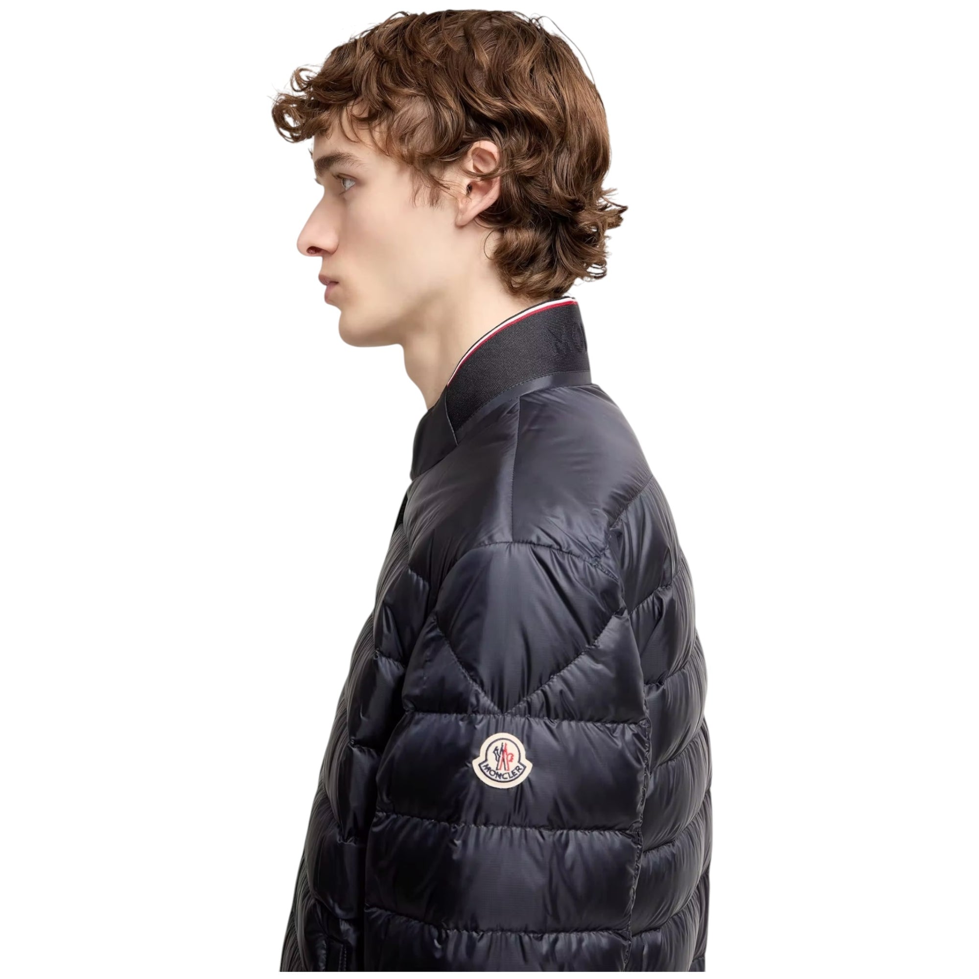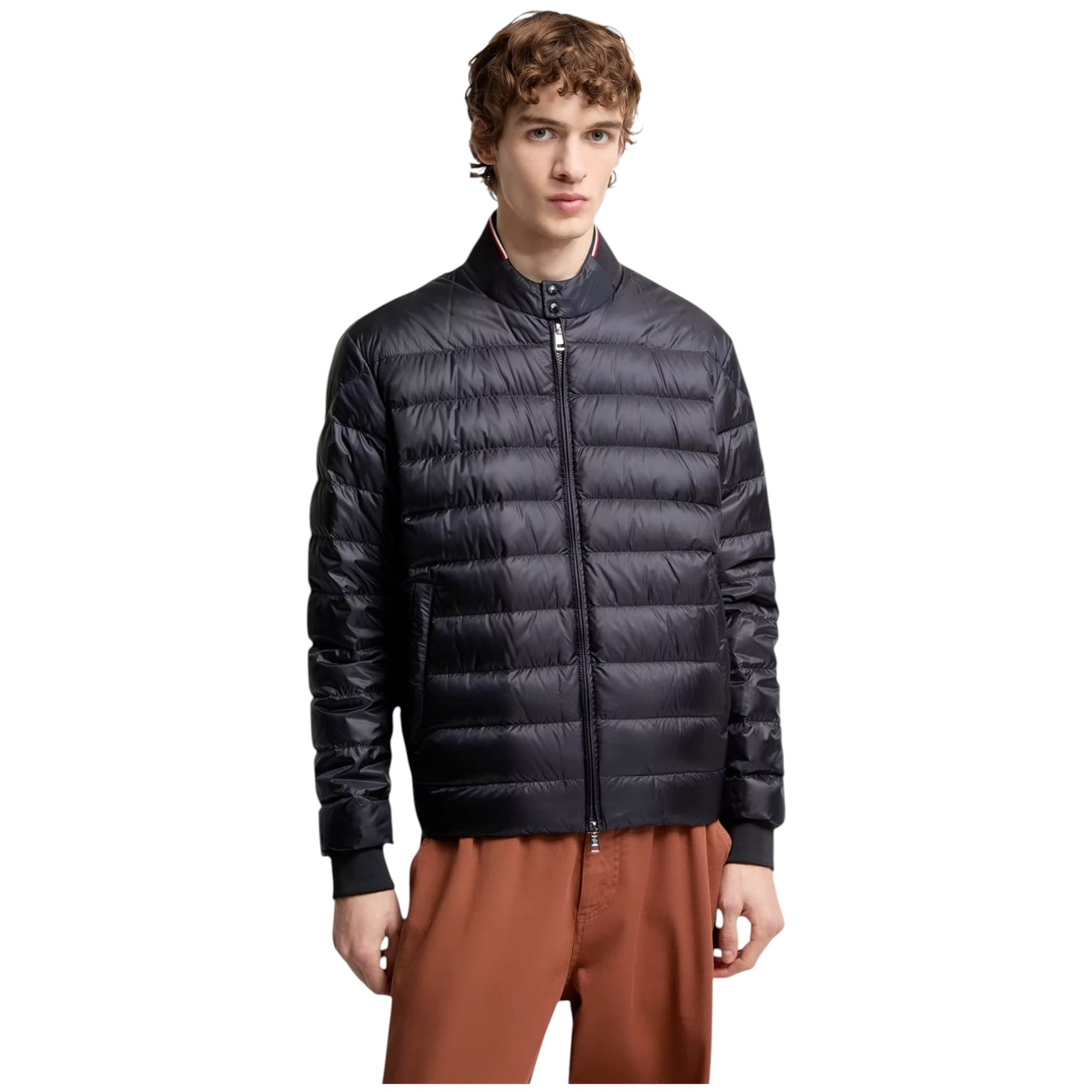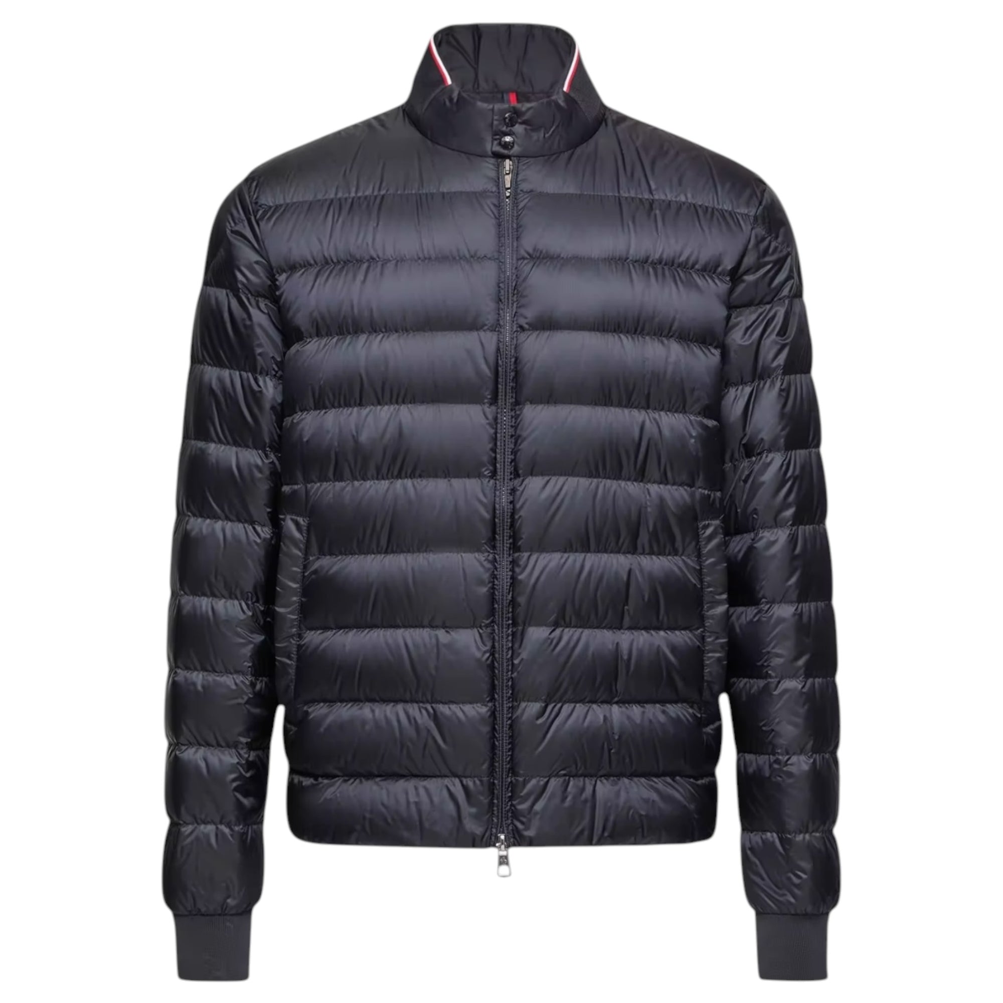 Den korte dunjakke er fremstillet i let og slidstærk micro ripstop nylon, som giver en robust overflade og høj komfort. Med sin boudin-quiltning og varme dunfyldning (90% dun / 10% fjer) holder jakken dig varm uden at føles tung. Den biker-inspirerede silhuet giver et nutidigt look, mens kraven med trikolore-detalje tilføjer et eksklusivt og genkendeligt finish.