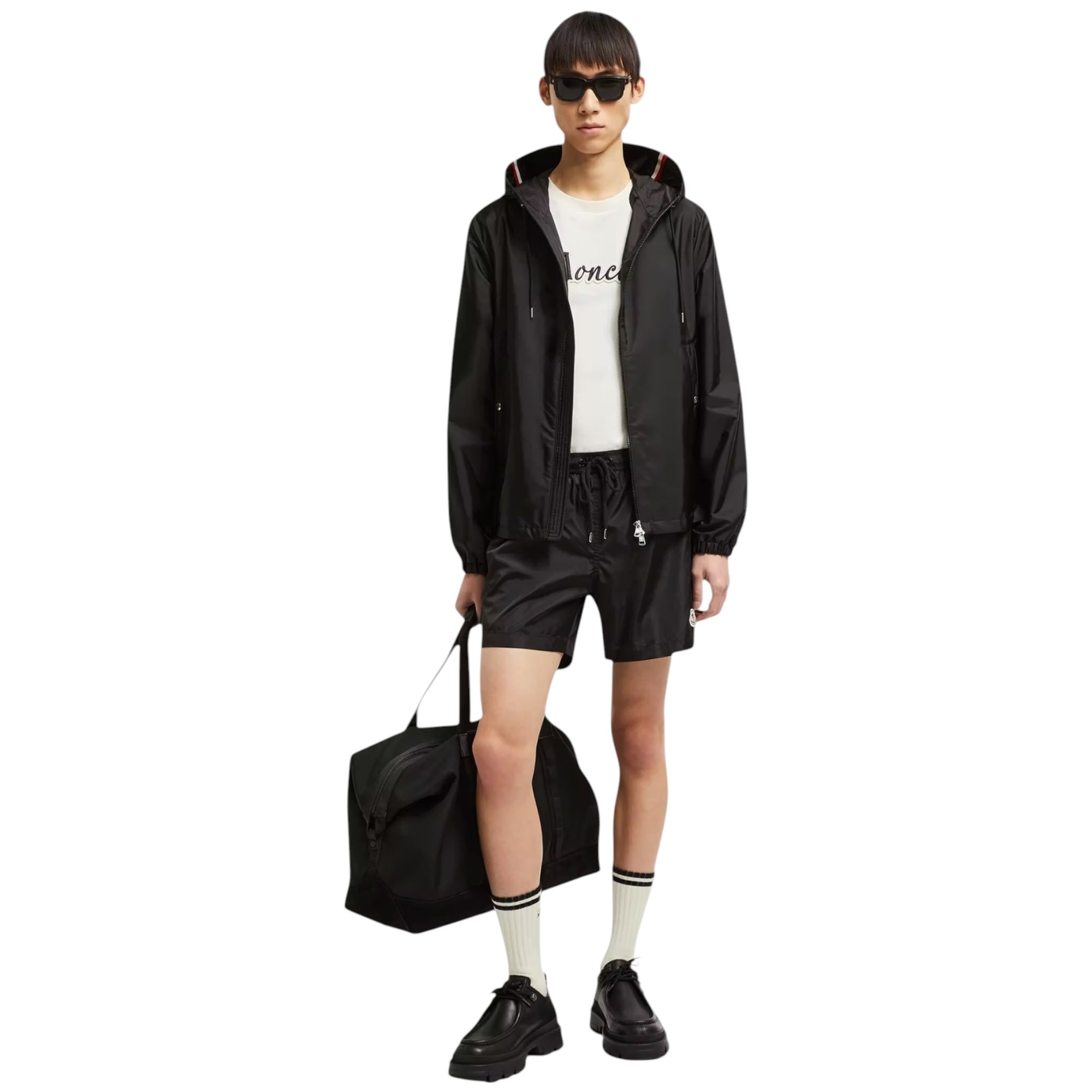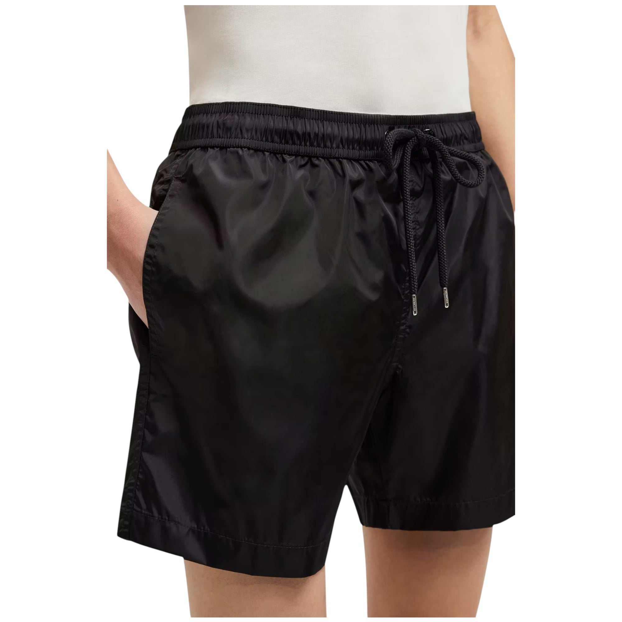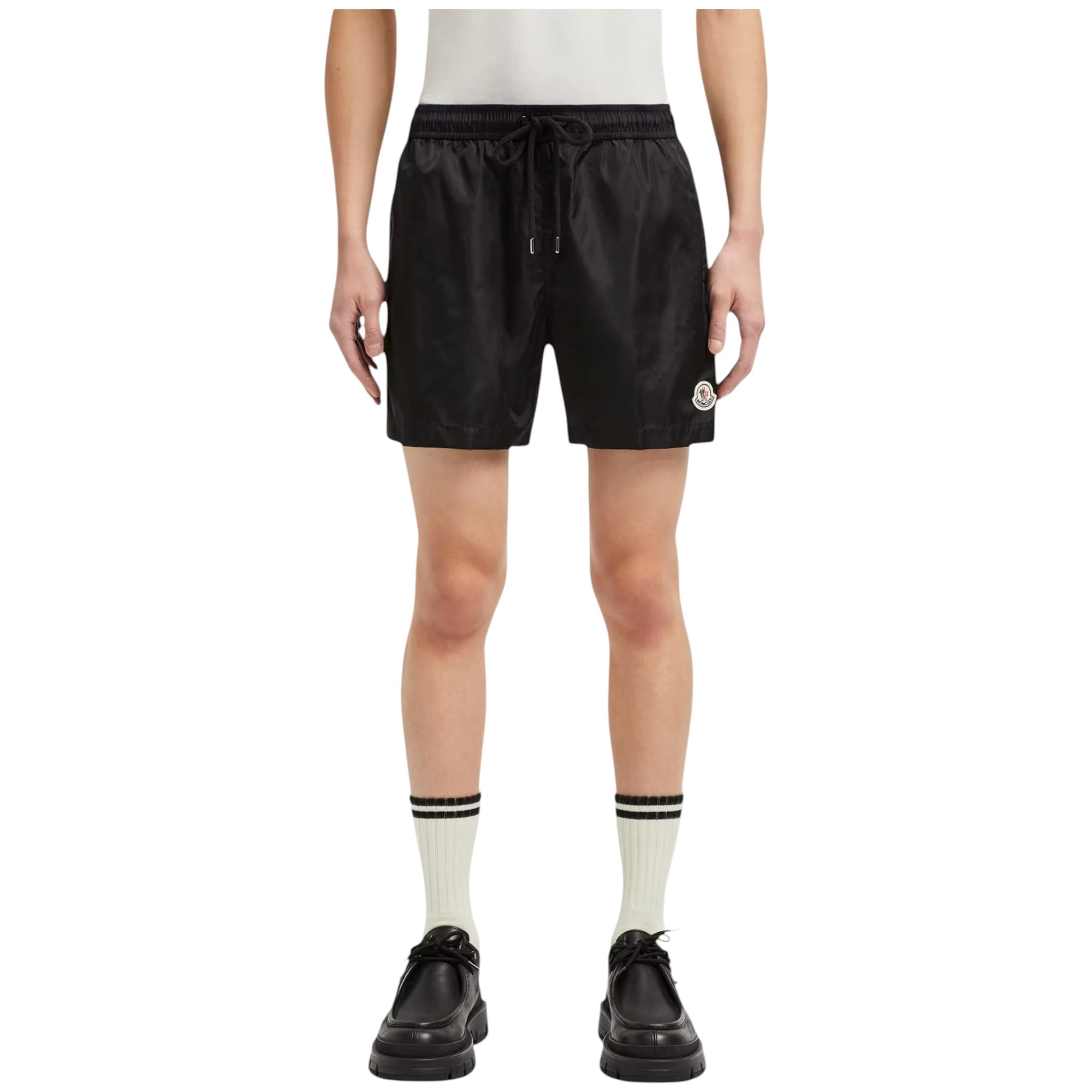 Den justerbare talje med snøre sikrer optimal komfort og en personlig pasform, mens den indvendige mesh-foring giver god bevægelsesfrihed. Det ikoniske Moncler logo-patch tilfører et eksklusivt og genkendeligt look, der understreger brandets luksuriøse sportsæstetik.
