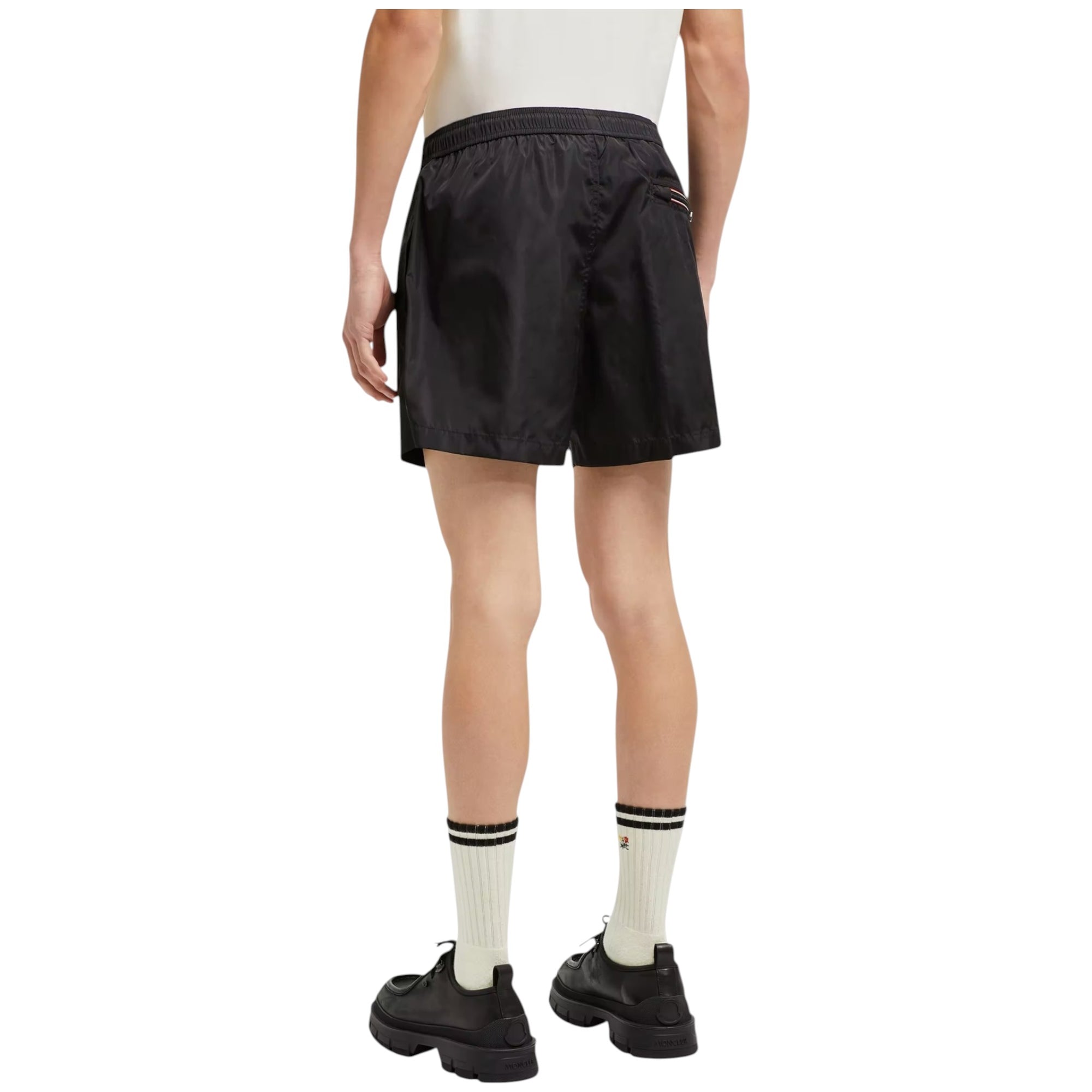 Moncler Logo Patch Swim Shorts – Sorte Badeshorts i Teknisk Nylon