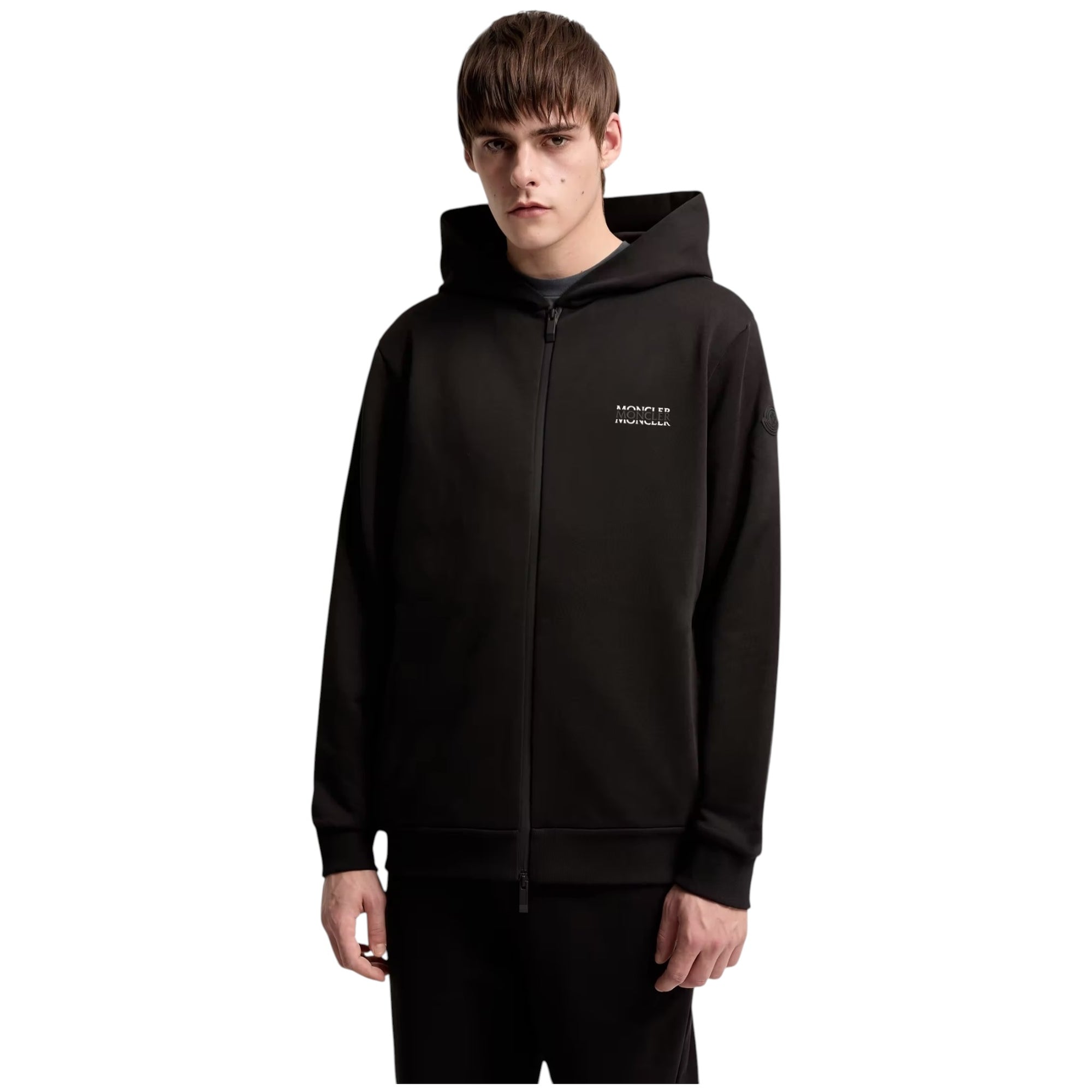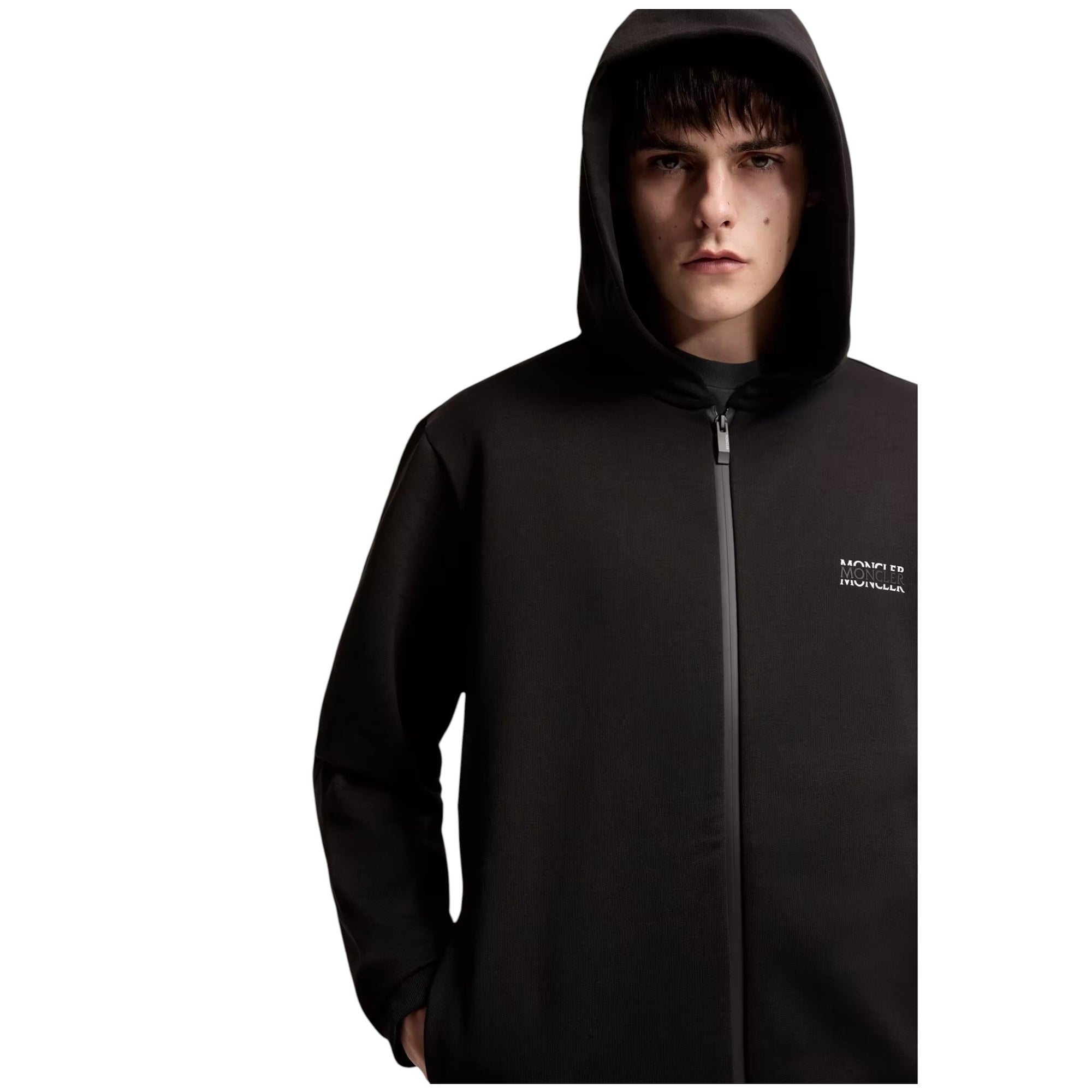 Logo Cotton Fleece Zip-Up Hoodie – Sort