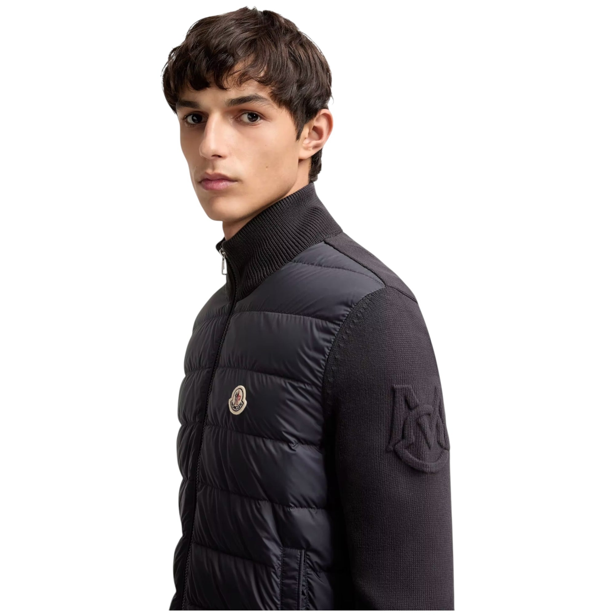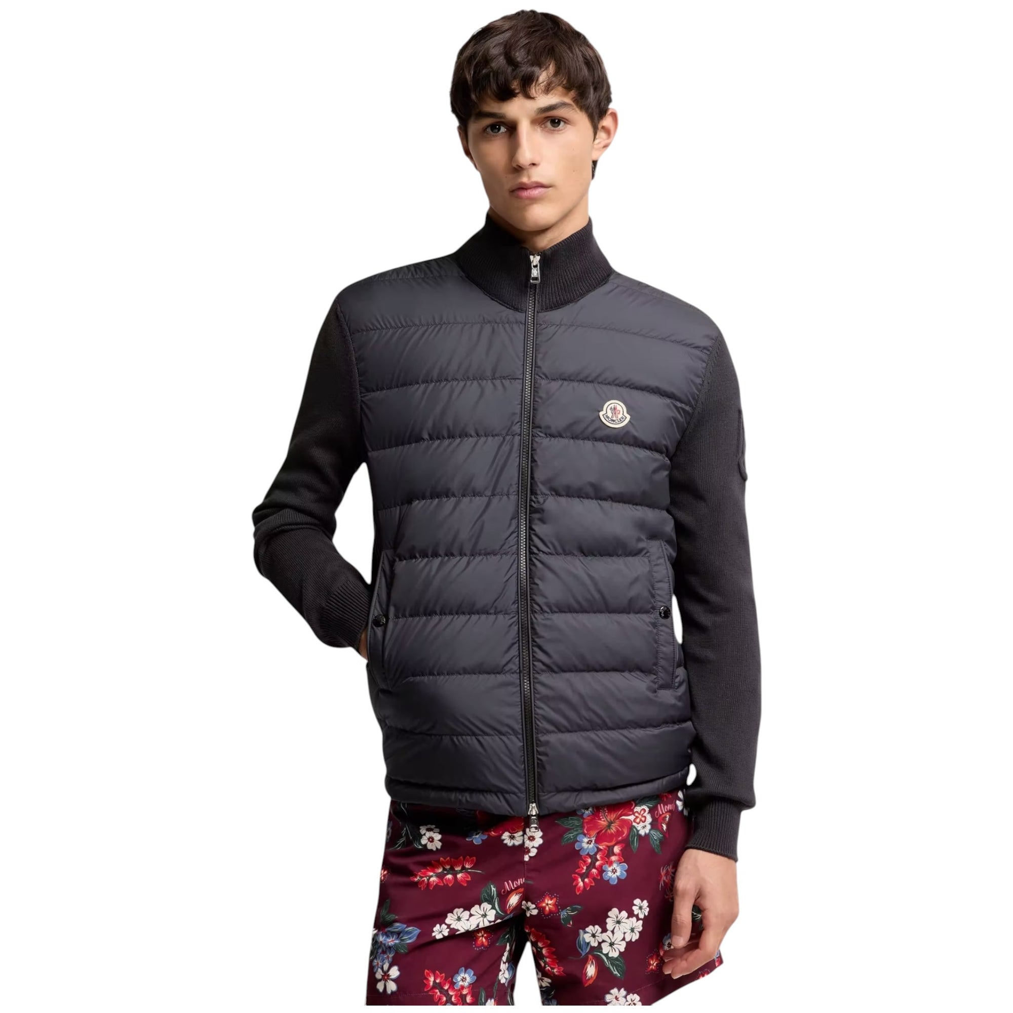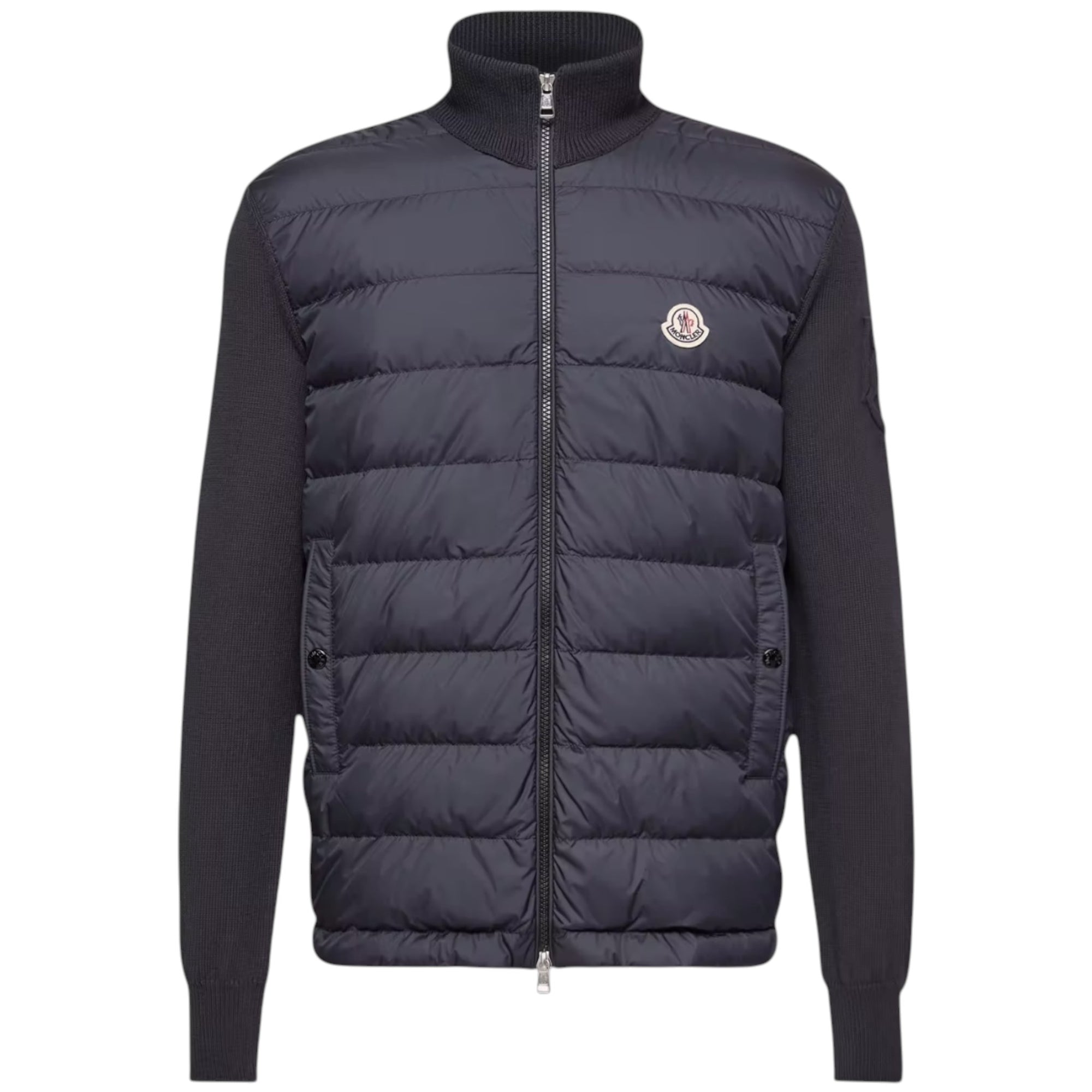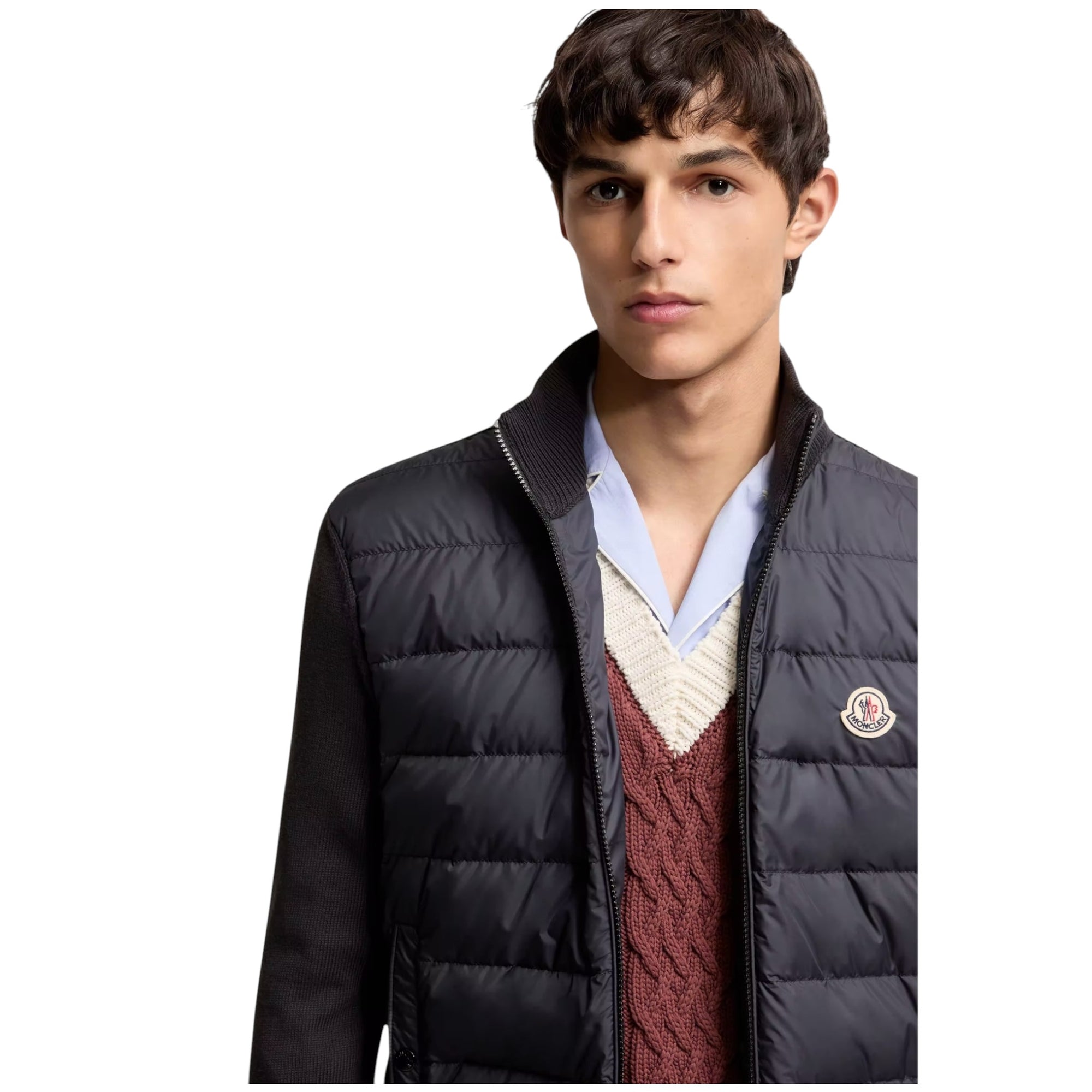 Denne paddede cotton cardigan til mænd i navy er et alsidigt og stilrent valg til overgangssæsonerne. Med sit høje halsdesign og dunfyldte front kombinerer cardiganen komforten fra strik med funktionaliteten fra let overtøj – perfekt både som cardigan indendørs og som yderlag i mildt vejr.