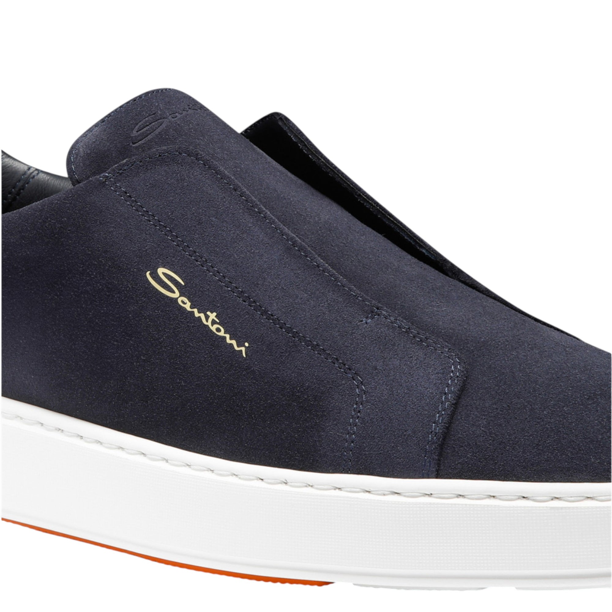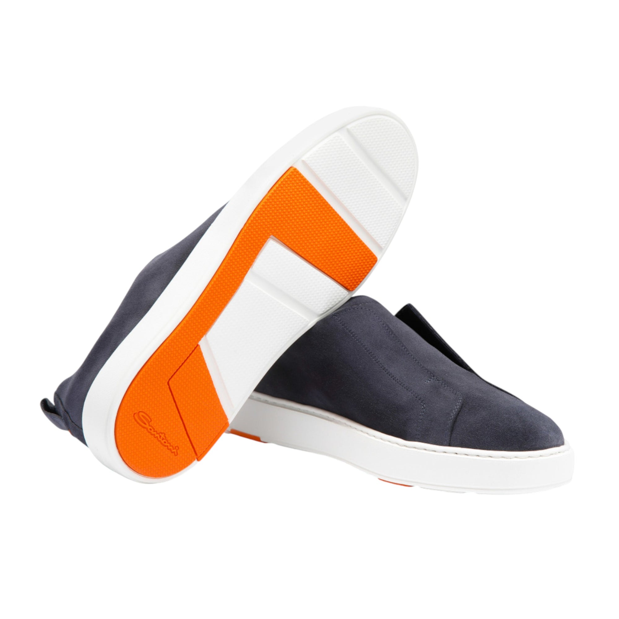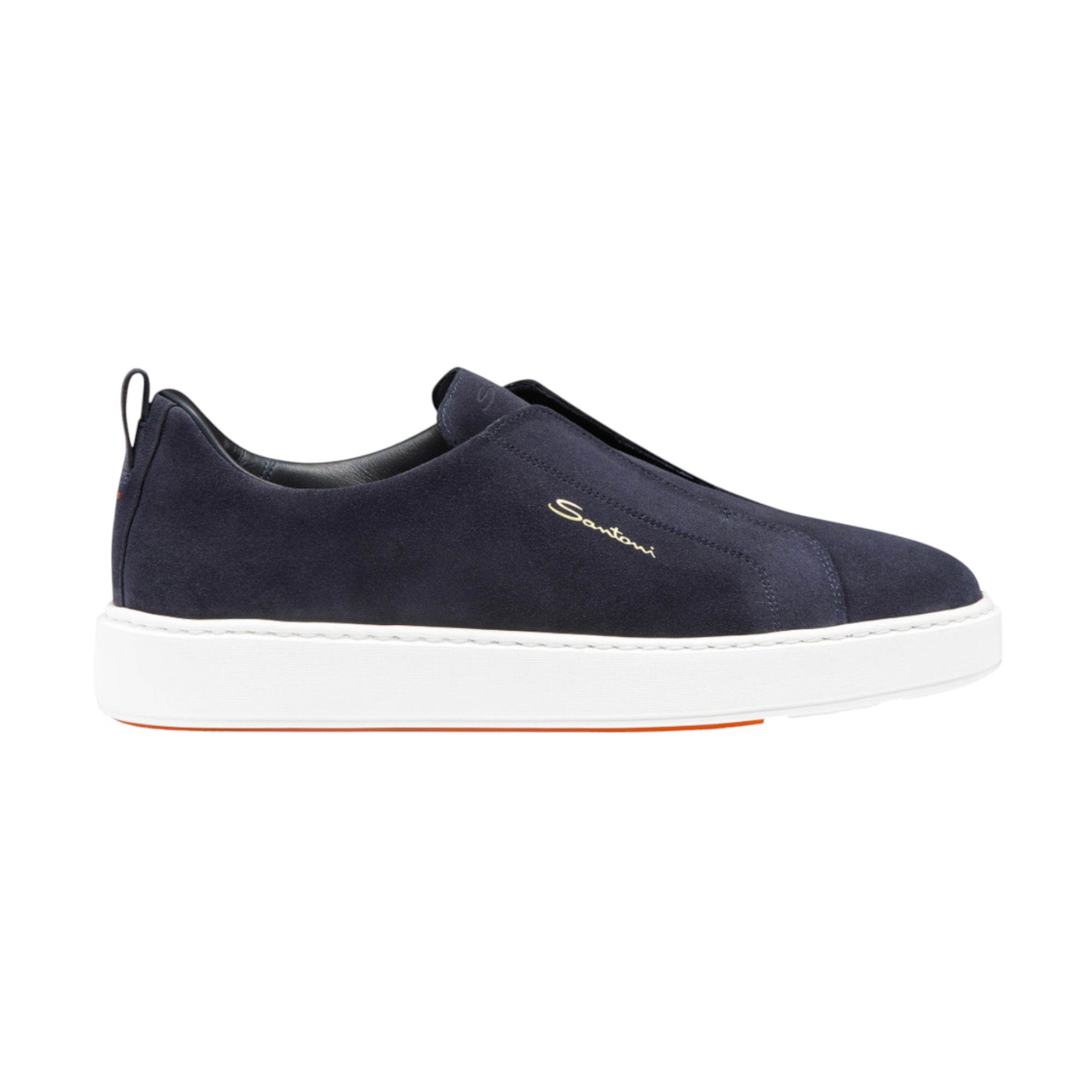 Opgrader din hverdag med disse eksklusive Santoni slip-on sneakers til mænd, hvor italiensk håndværk, moderne design og uovertruffen komfort går op i en højere enhed. Fremstillet af blødt blå ruskind og designet med praktisk hælstrop, er disse sneakers nemme at tage af og på – perfekt til en aktiv livsstil med stil.