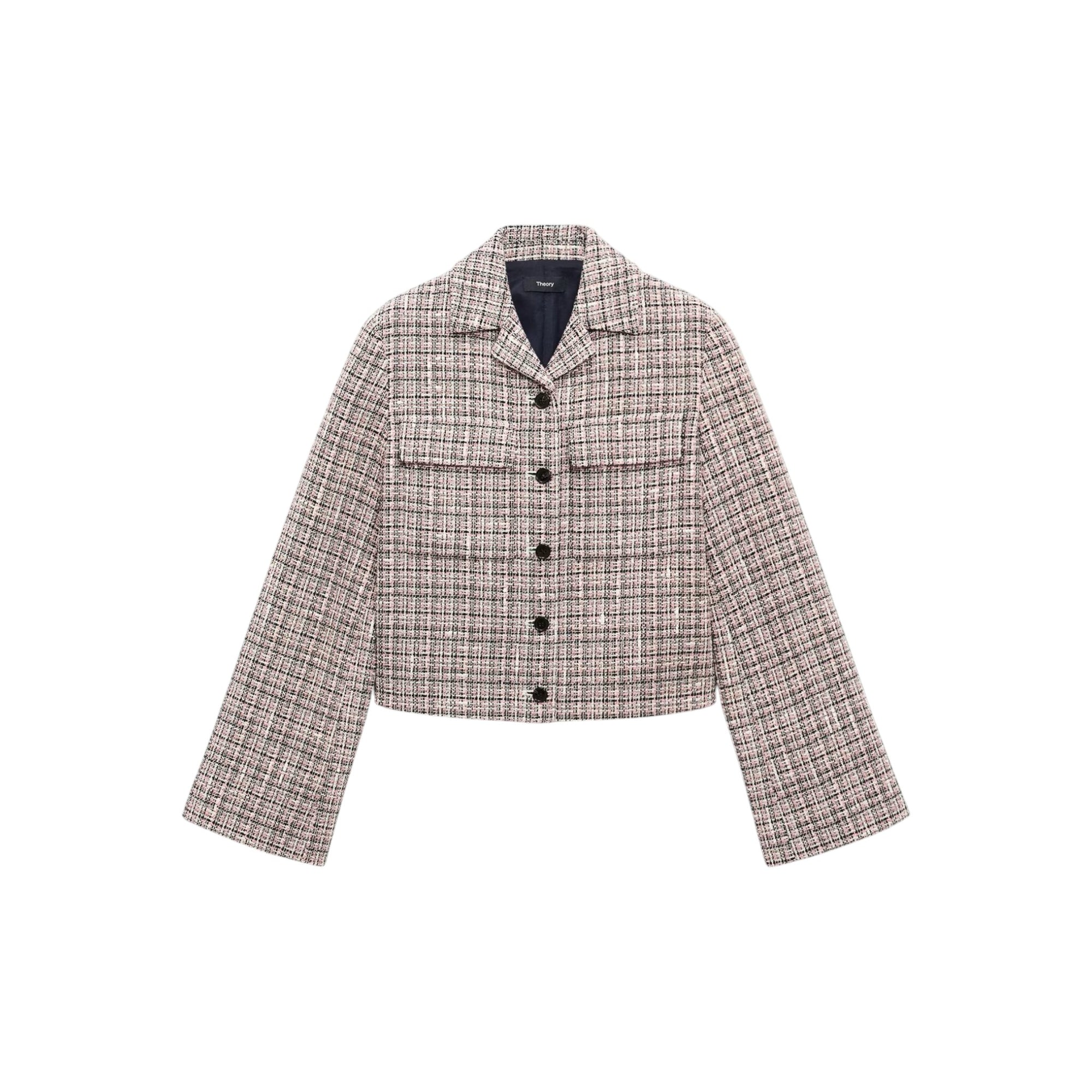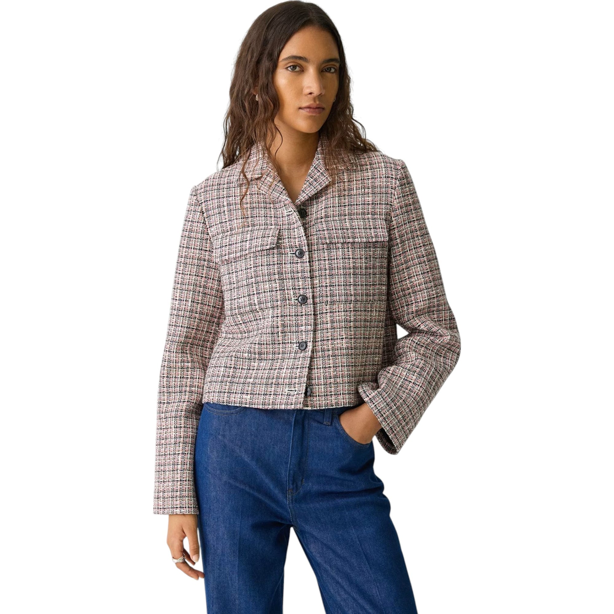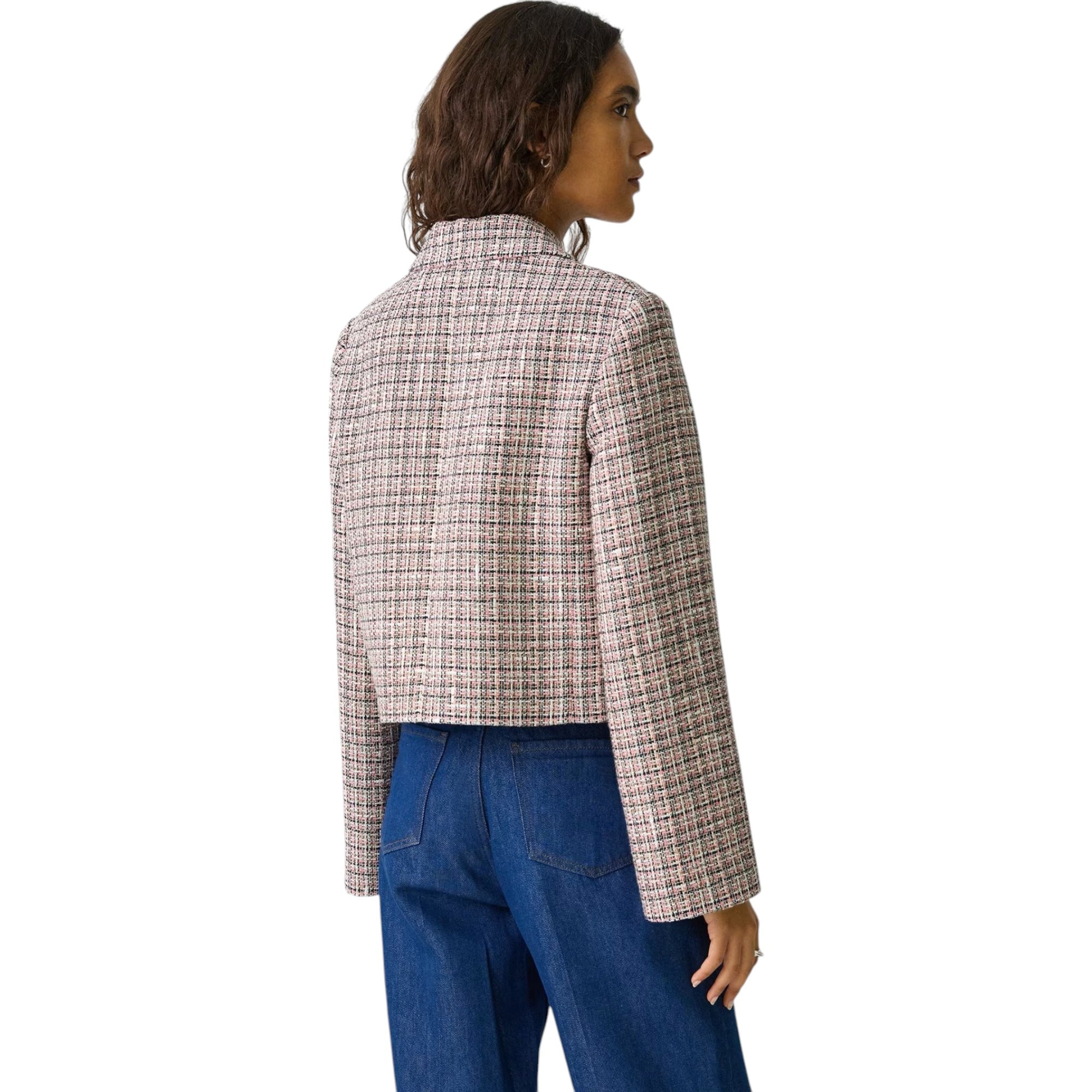En klassisk, cropped jakke med en afslappet silhuet, denne knap-front-stil er detaljeret med hakkede revers og et par brystlommer. Produceret i Italien fra en førende tweed-leverandør, bomuldsblandingsfiberindholdet og stofvægten giver komfort og åndbarhed gennem brug af subtil glans og snoet garn.