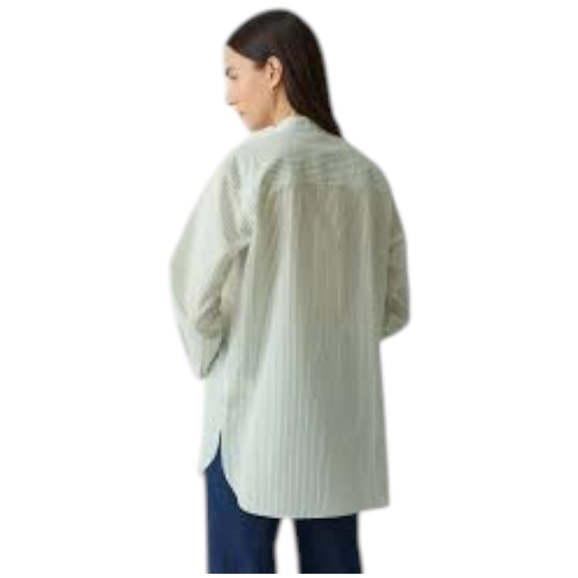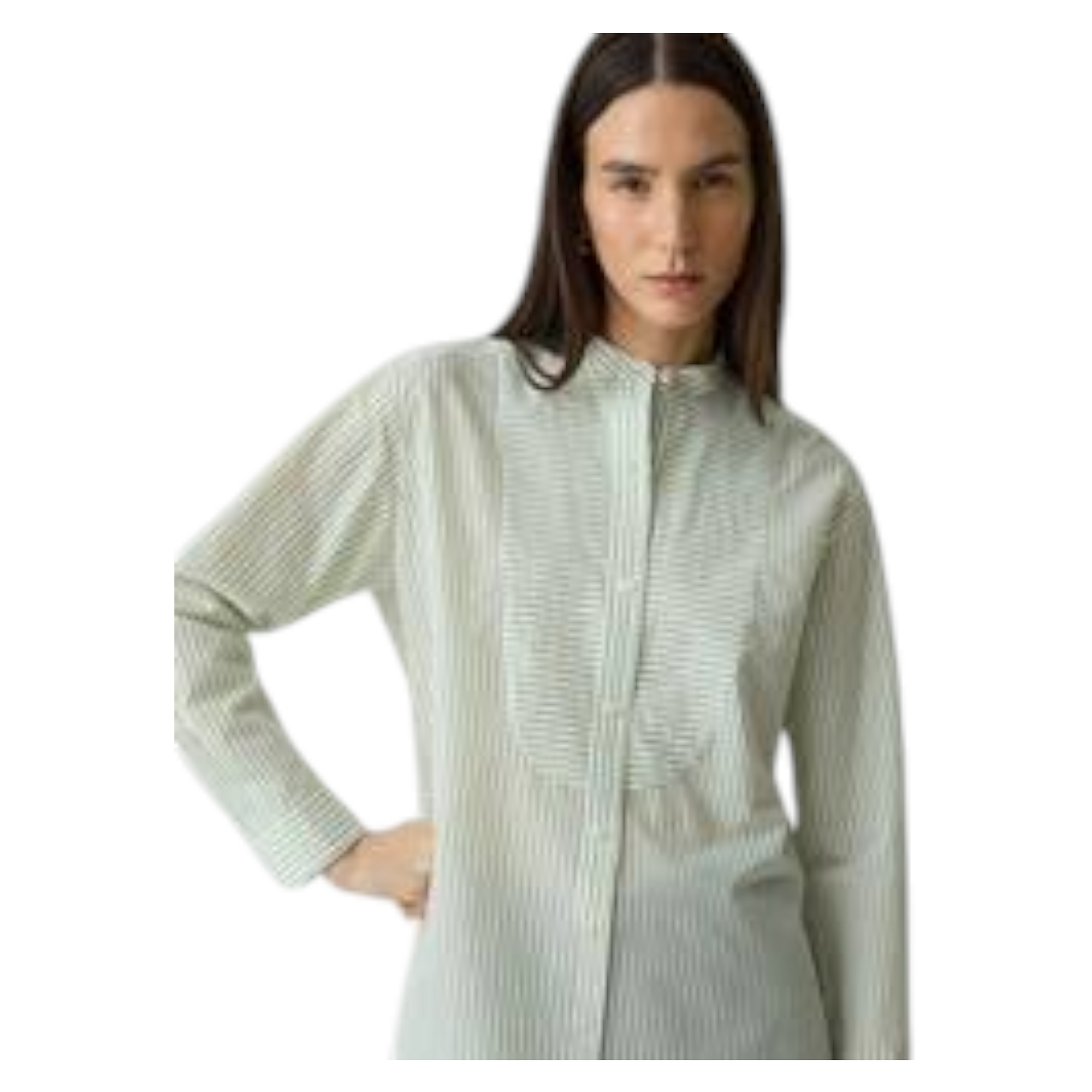 Lang, grønstribet skjorte i let transparent materiale med oversized pasform. Skjorten har et luftigt og afslappet udtryk, der gør den ideel både alene eller lag-på-lag. Perfekt til et moderne og effortless look.