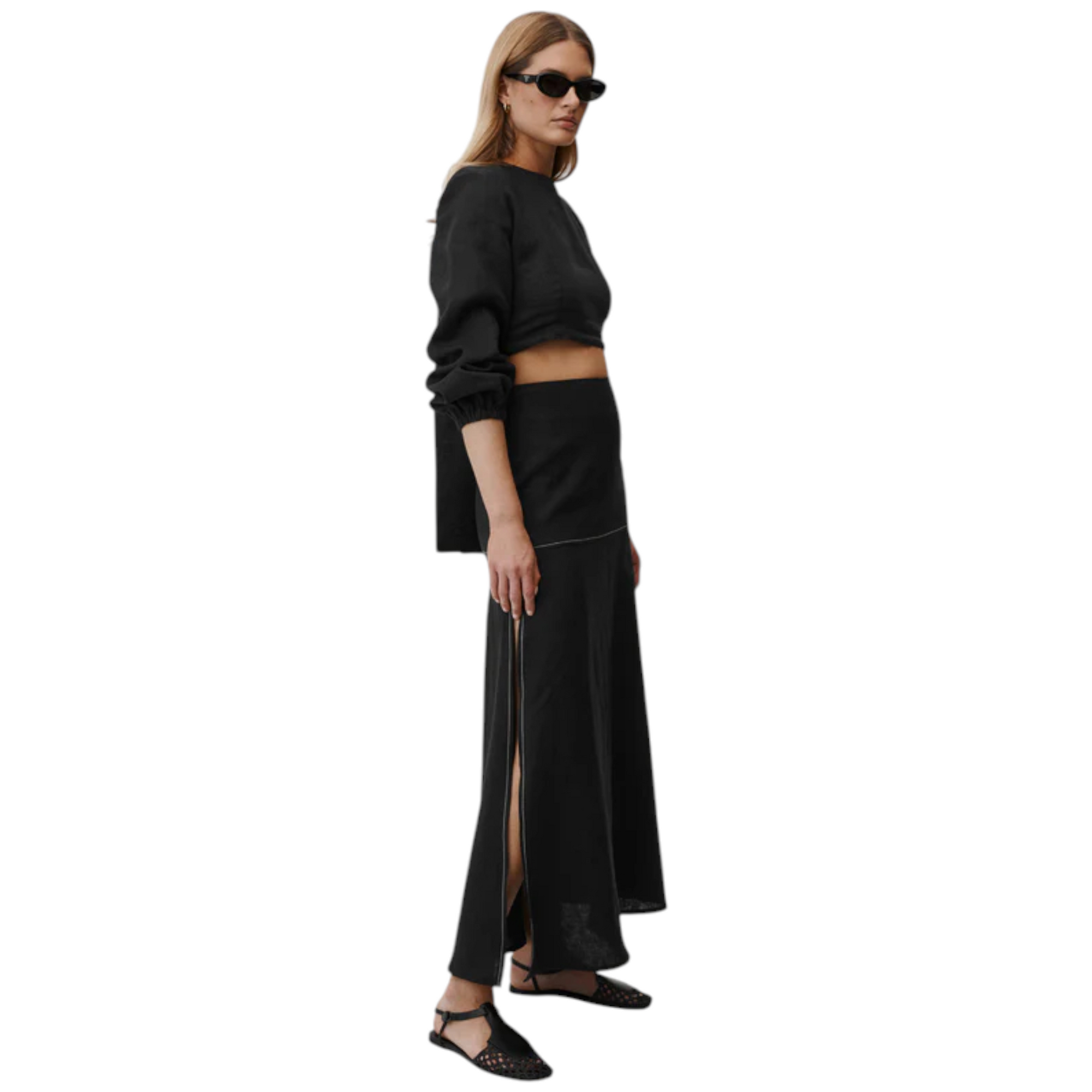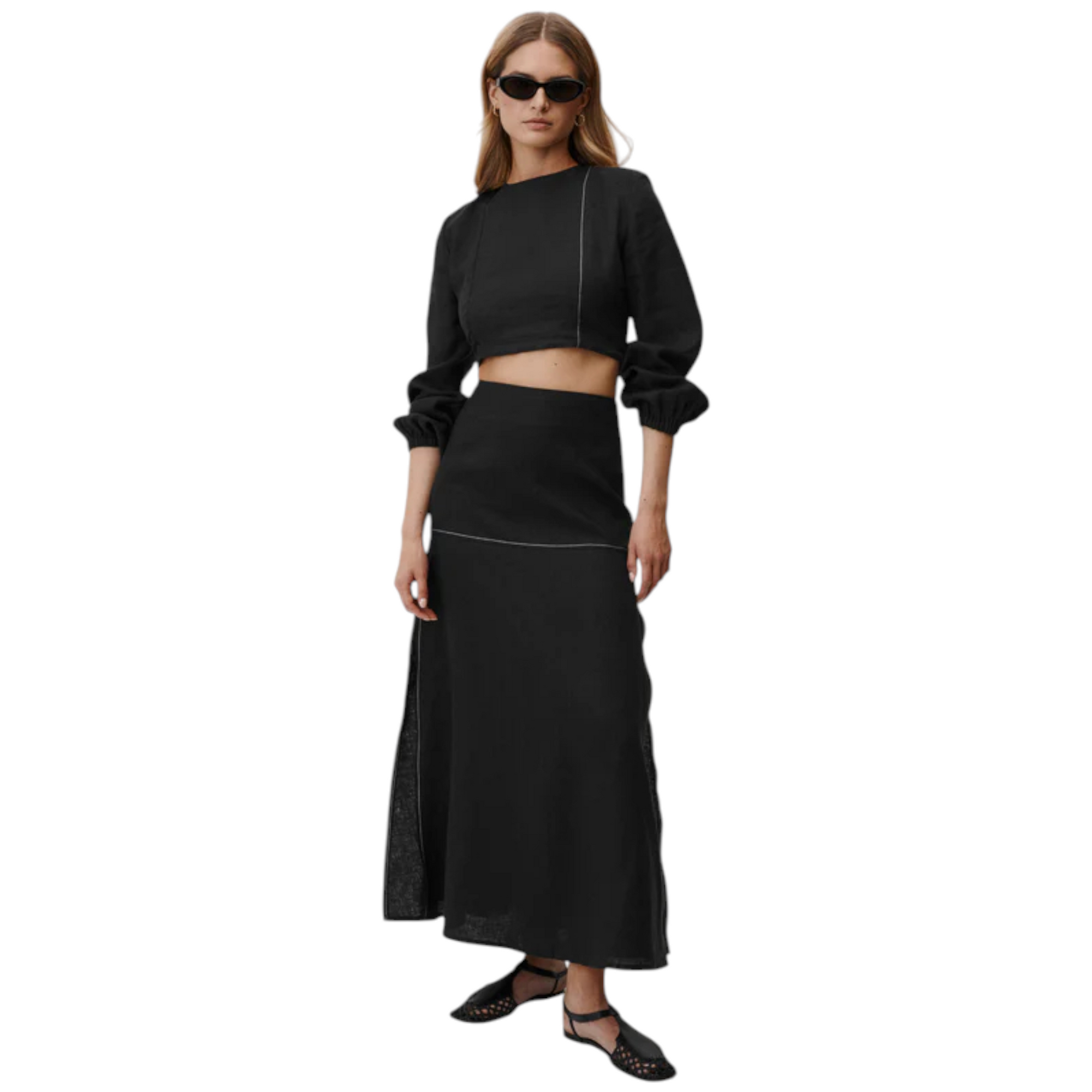 Selene Shirt er din nye hør-favorit – let, elegant og utrolig nem at style. Den har en cropped silhuet, diskrete pufærmer og fine kontrastsyninger, der giver et moderne twist til et ellers tidløst design. Perfekt med den matchende Serenity Skirt for et gennemført look eller med jeans for en mere afslappet stil.