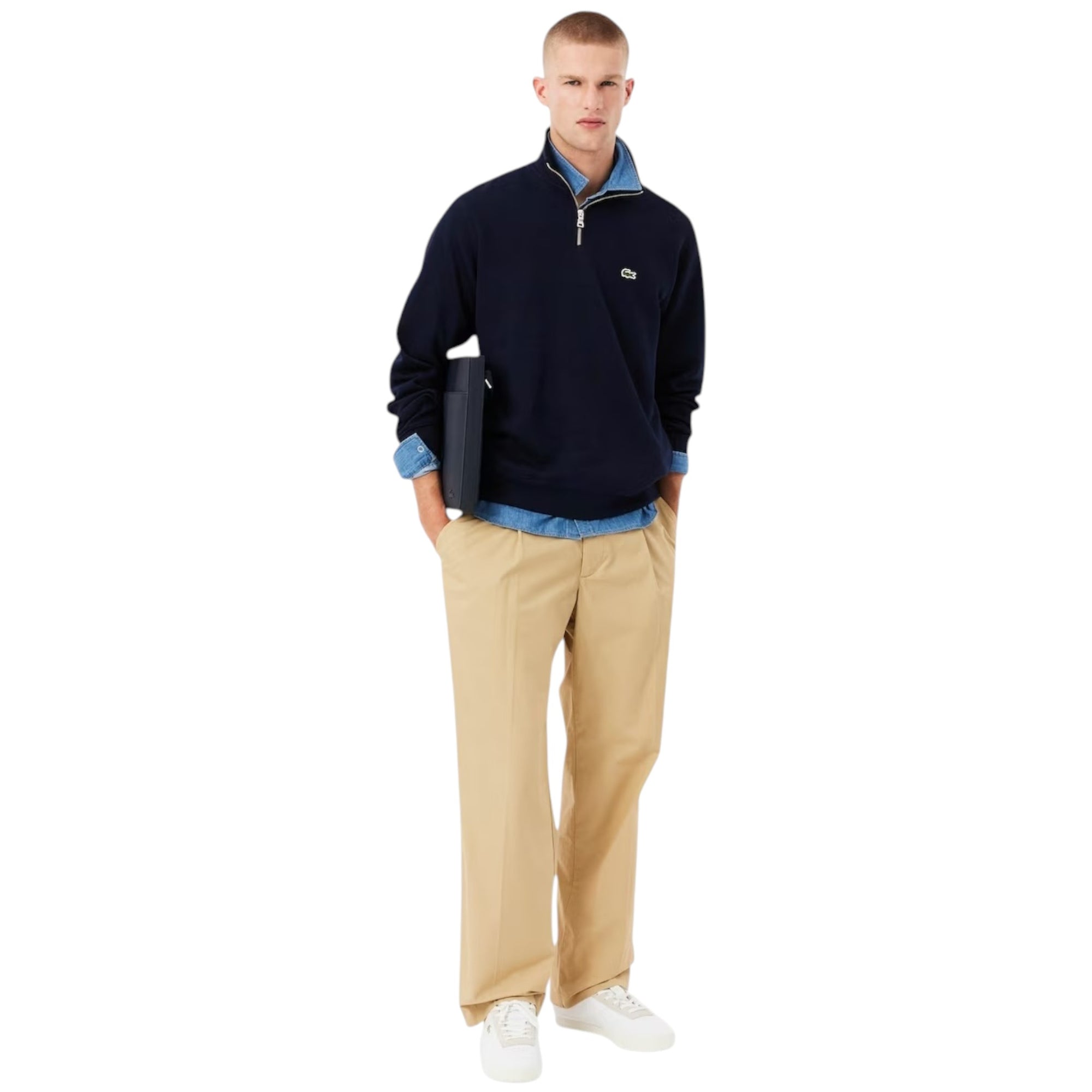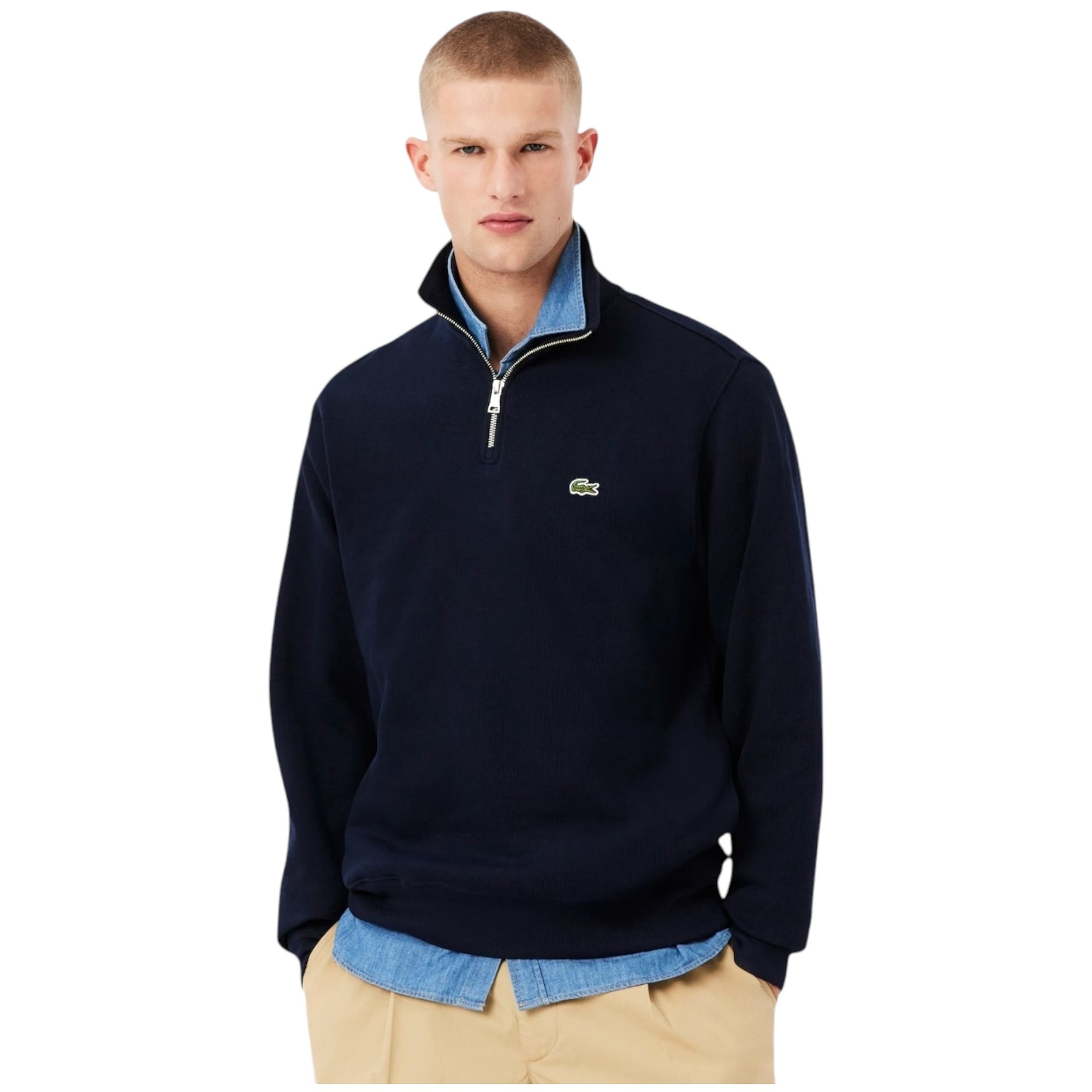 Lacoste Zip-Up High Neck Interlock Sweatshirt – Navy