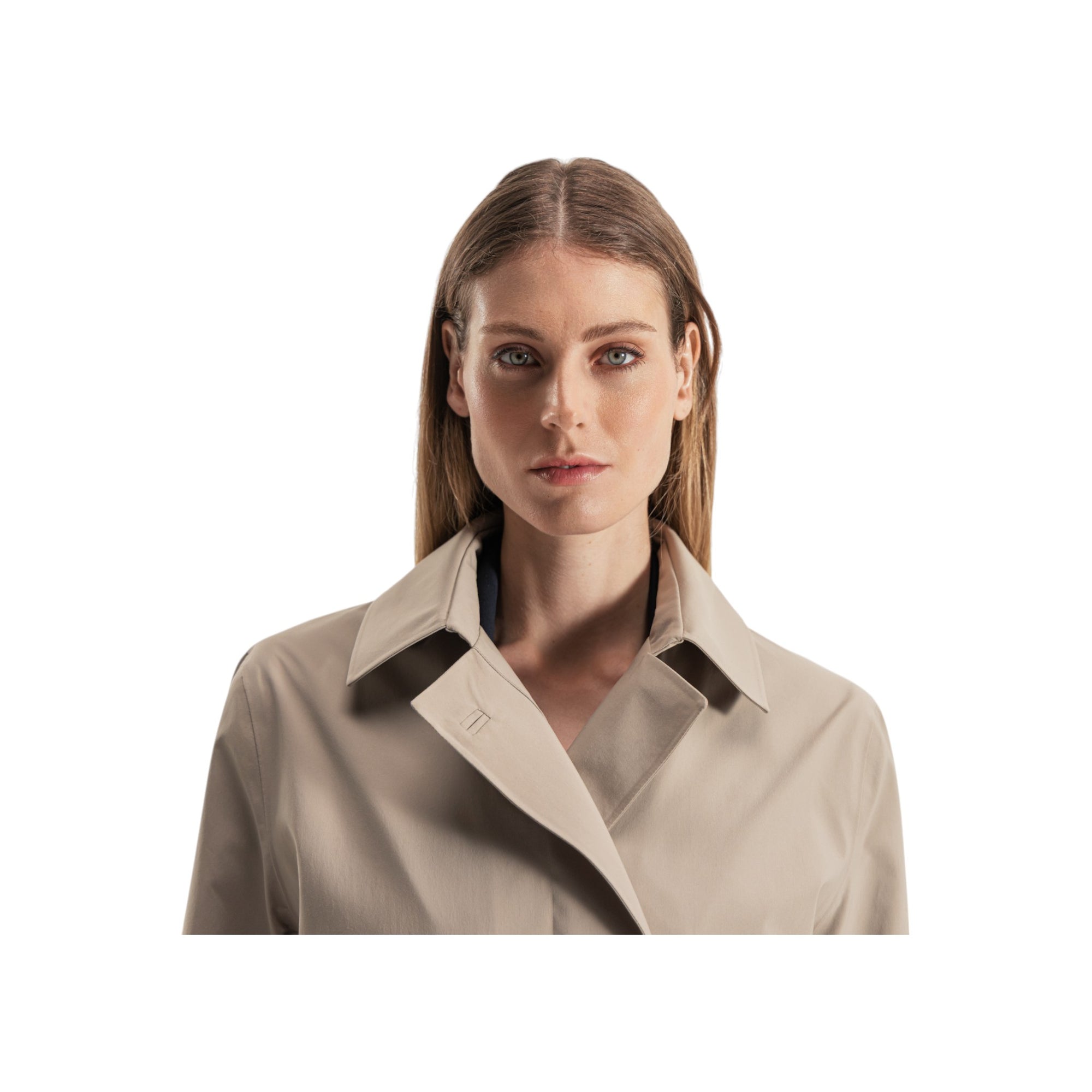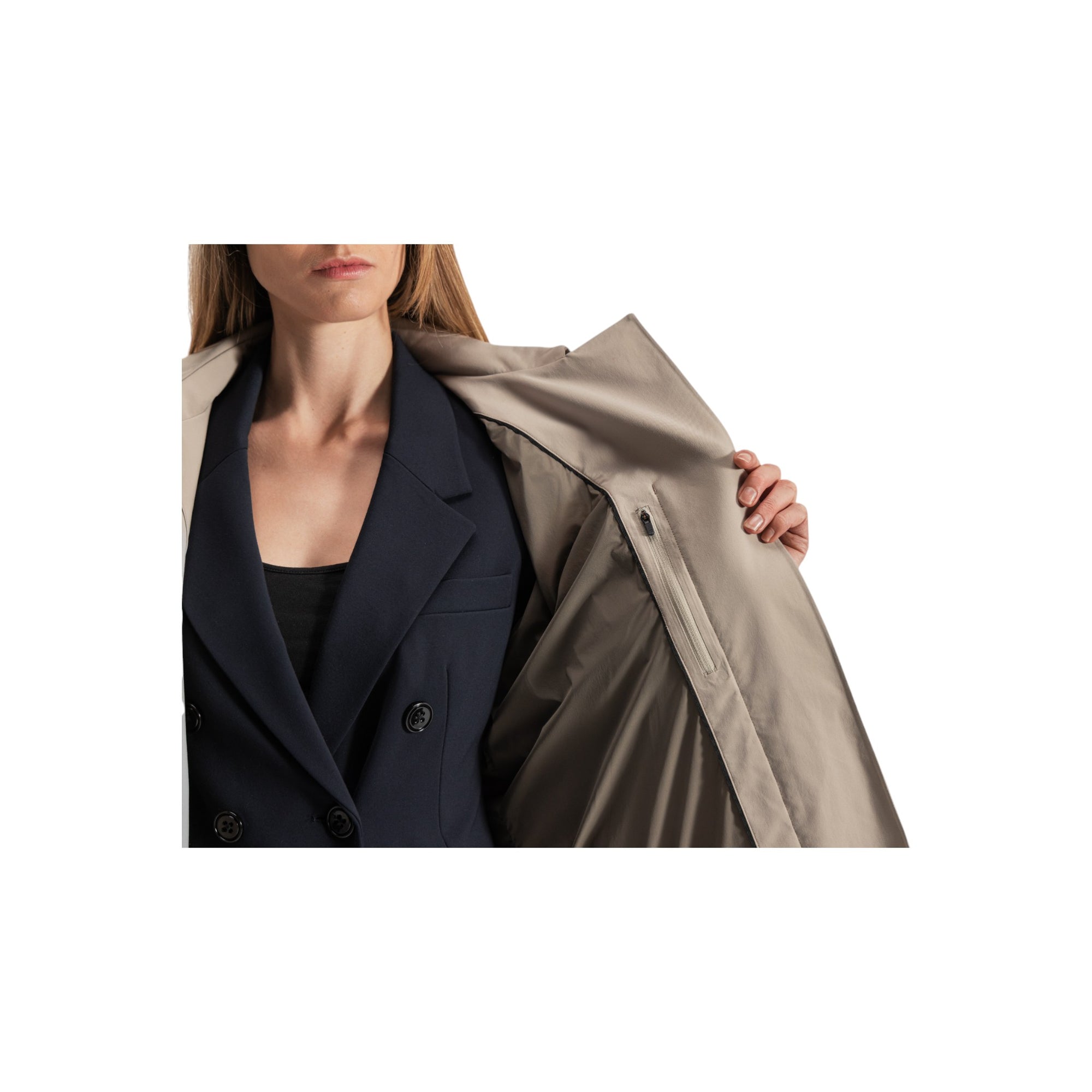 Timeless trench coat, reimagined for modern professionals. Exceptionally light and elegant, fits effortlessly over any outfit. Hidden zip, laser-cut ventilation, and a breathable back yoke ensure discreet performance without compromising style.