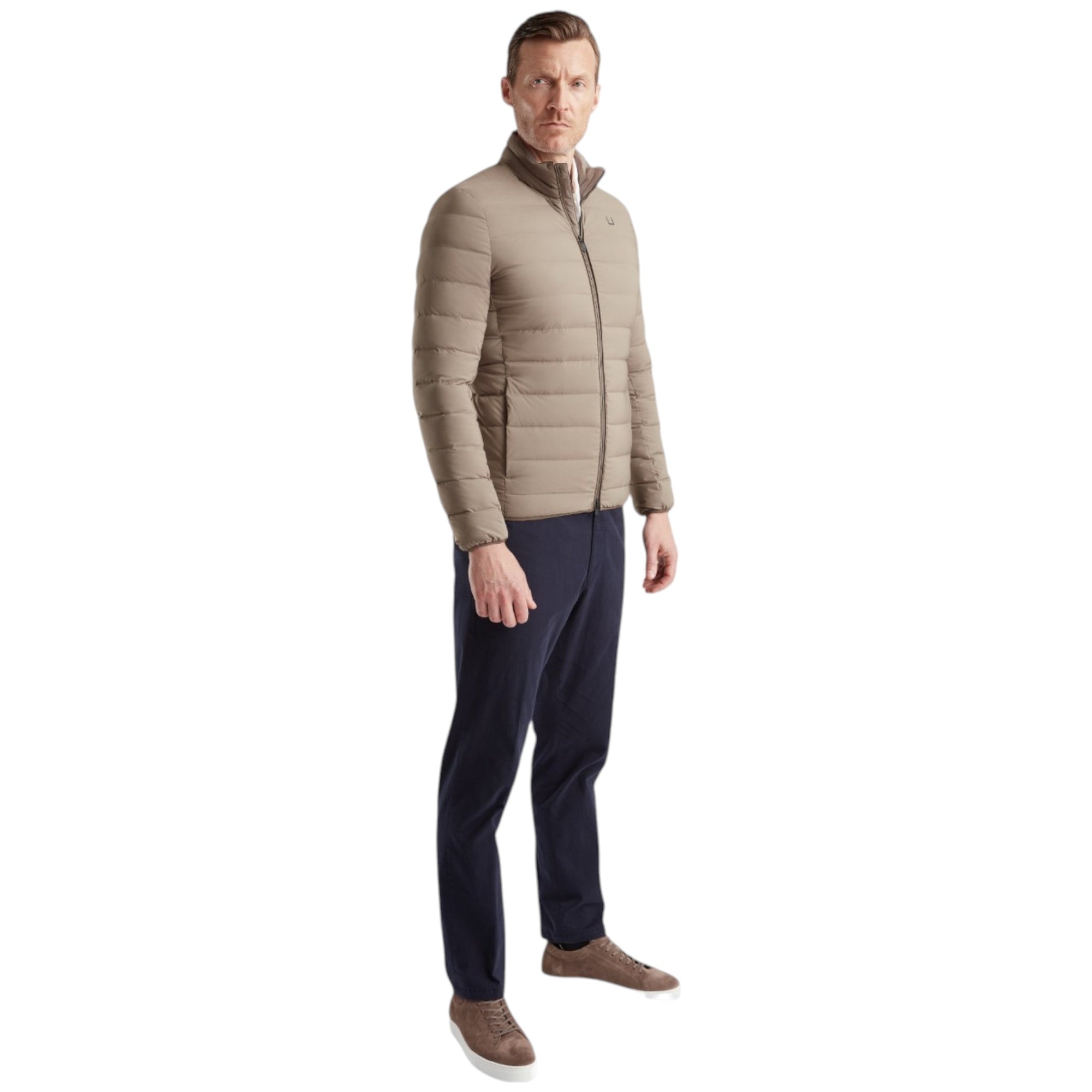 UBR SONIC™ Jacket i Dark Sand er en premium let dunjakke til mænd, designet til aktivt hverdagsbrug i overgangsperioderne.