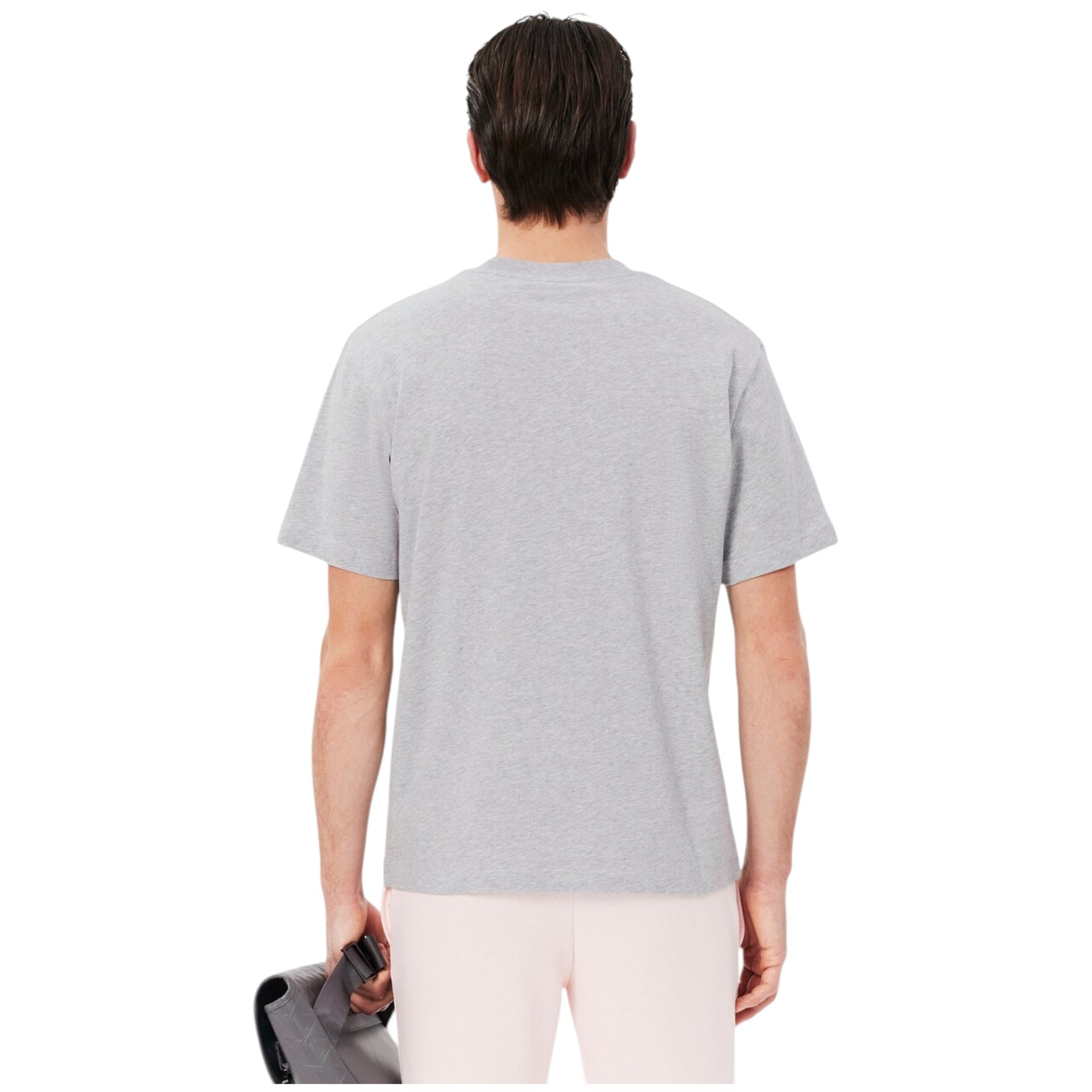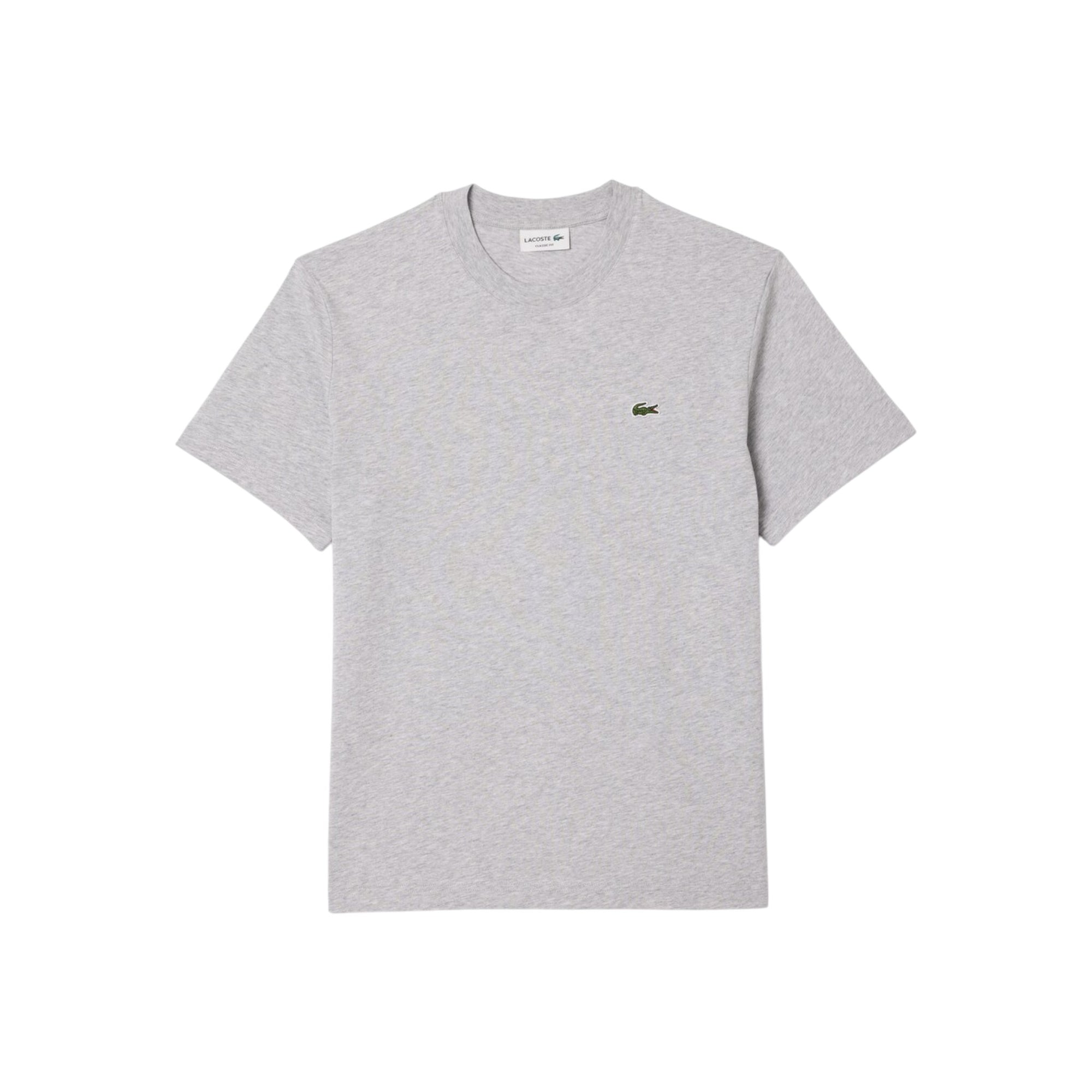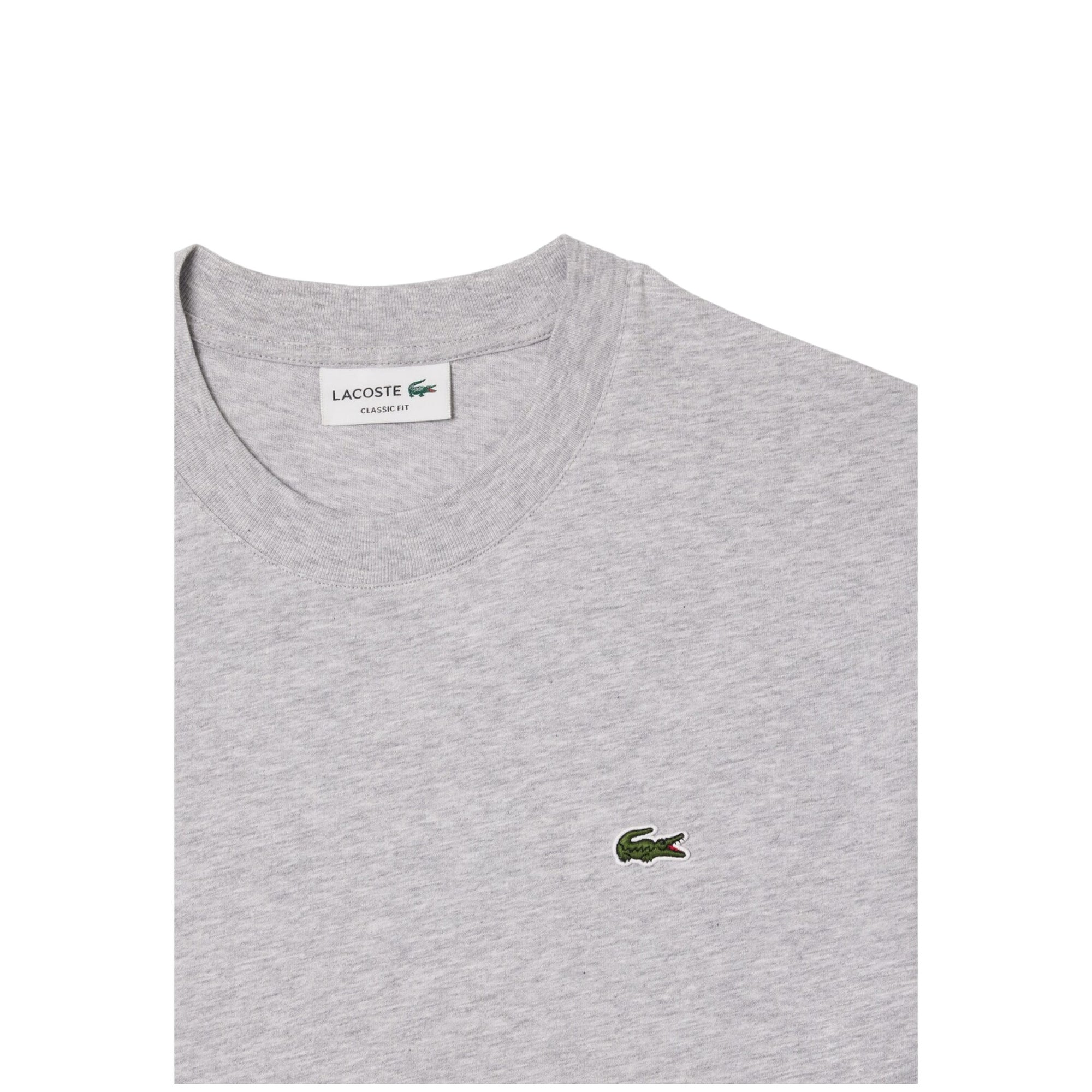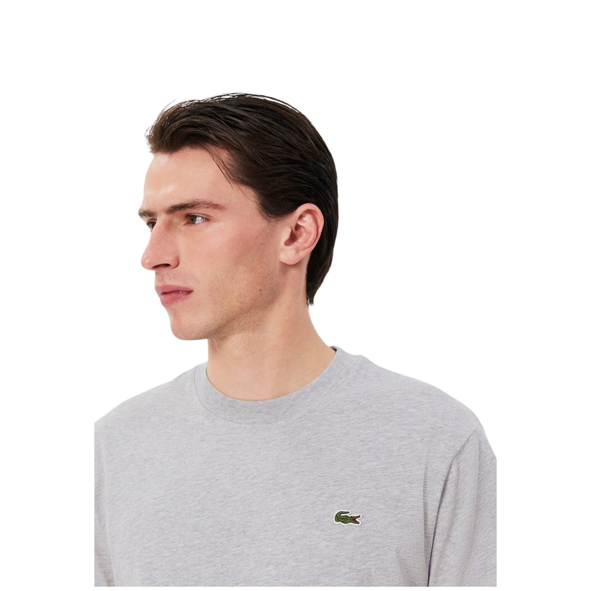 Denne lysegrå Lacoste T-shirt er et alsidigt basisstykke, der nemt kan styles med alt – fra jeans og shorts til en let jakke eller sweatshirt.
