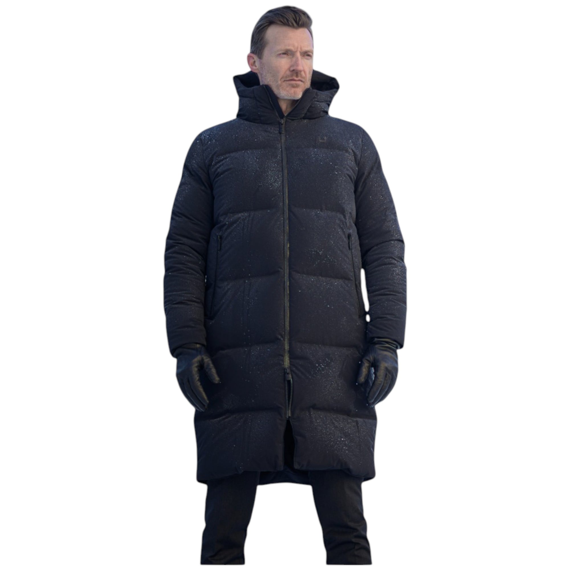 TYCOON™ COAT i sort er en kompromisløs, ultravarme vinterparka til dig, der ikke vil gå på kompromis med hverken stil, komfort eller beskyttelse. Med et dramatisk langt snit, teknisk overlegenhed og generøs fyldning af 800 fill power gåsedun, holder denne frakke dig varm – selv under ekstreme vinterforhold.